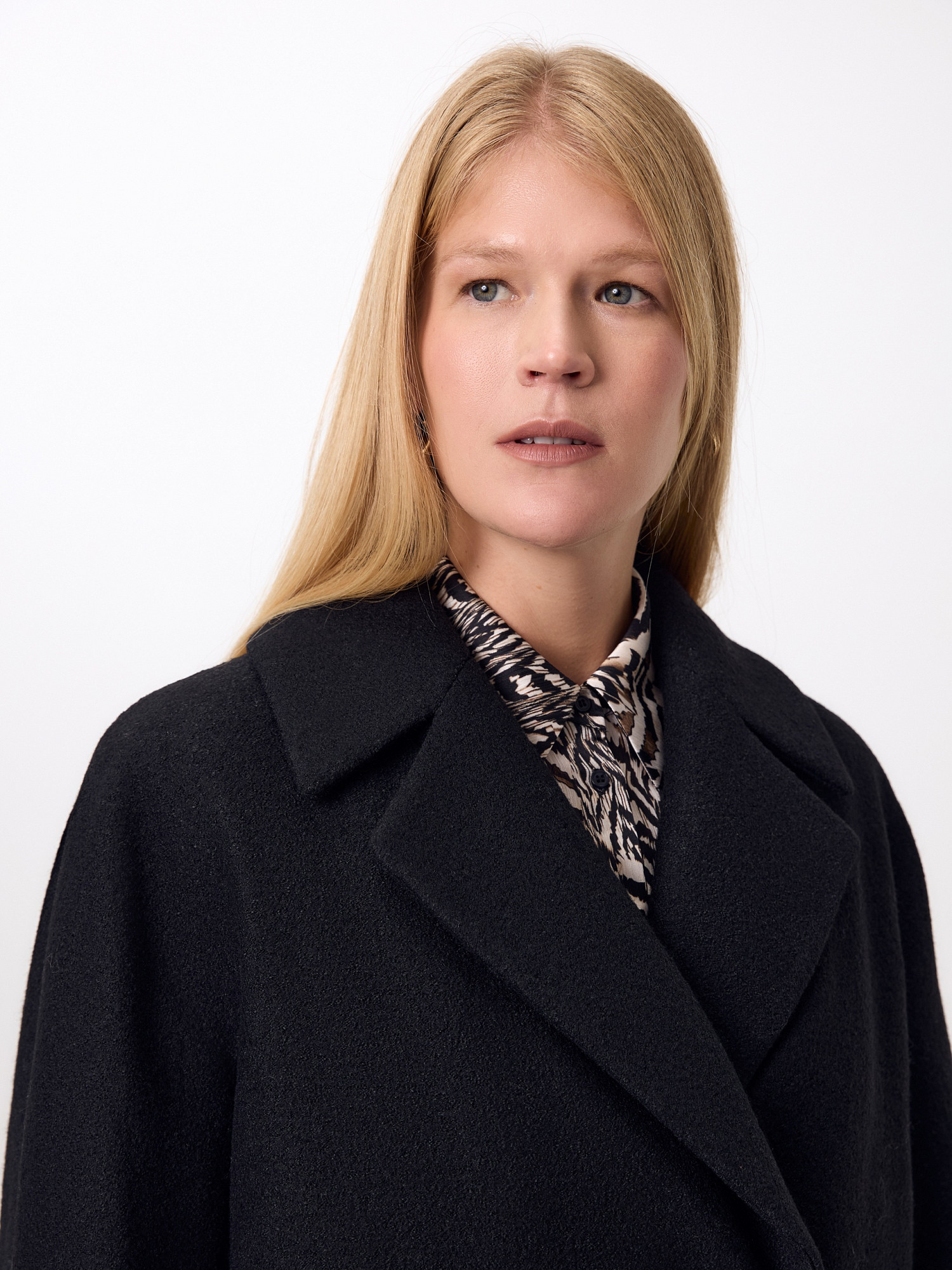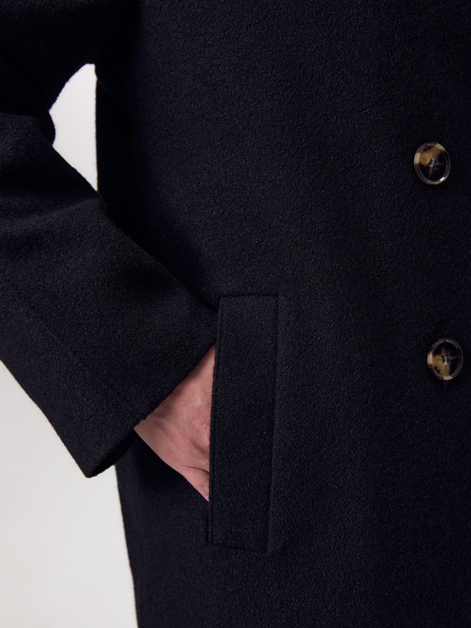 Классическое укороченное пальто из премиальной шерстяной ткани с содержанием натуральной шерсти 95%. Благодаря универсальному чёрному цвету и удачной длине пальто легко впишется в любой гардероб. Пальто имеет английский воротник, комбинированный рукав, два глубоких кармана с листочками. Застёжка на два ряда крупных пуговиц. Завершает образ пояс из основной ткани, который подчеркнёт талию и создаст дополнительное прилегание для наибольшего тепла. А для наилучшей защиты от непогоды изделие выполнено с использованием высокотехнологичной мембраны RaftPro. Произведено в Санкт-Петербурге.