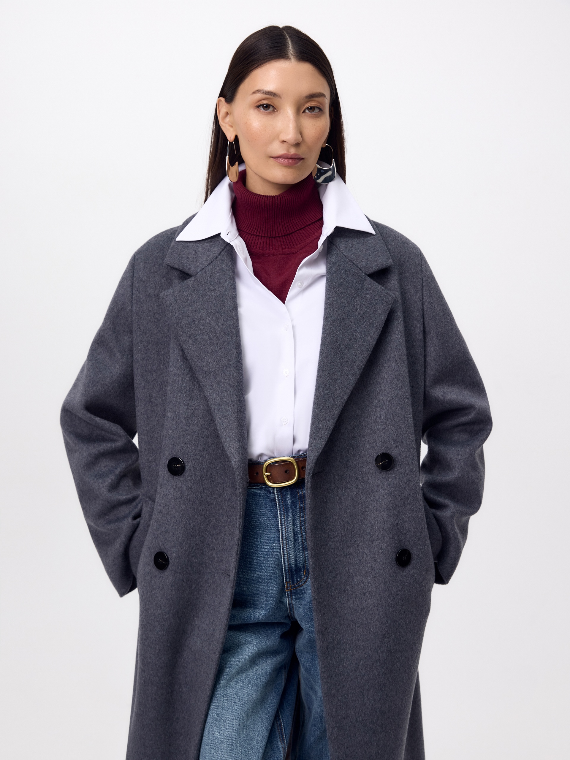 Лаконичное прямое пальто, легкое и элегантное, напоминает удлиненный жакет. Мягкая линия плеча, английский воротник и карманы с листочками. Это пальто можно надеть как с футболкой и джинсами, так и с костюмом, создавая совершенно разные образы. Для этой модели мы выбрали тонкую плотную и пластичную шерстяную ткань, которая хорошо держит форму, при этом не требует дополнительного проклеивания материала, за счёт чего создаётся мягкая форма силуэта. Застежка на два ряда крупных пуговиц. Изделие на подкладке. А для наилучшей защиты от пронизывающего ветра спинка пальто выполнена с использованием высокотехнологичной мембраны RaftPro. Произведено в Санкт-Петербурге.