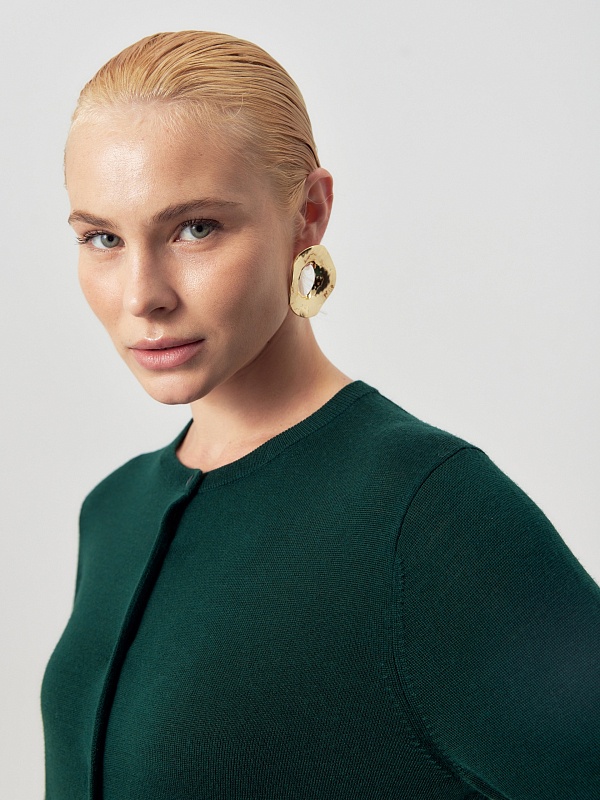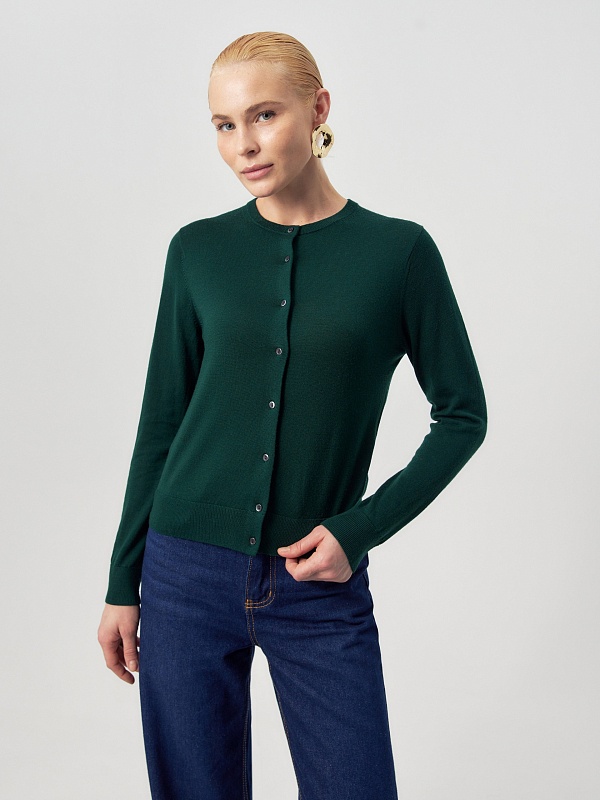 Кофточка классная для прохладных дней. Цвет очень красивый. На мой 46 размер подошла отлично. Рост у меня 152 см, по фигуре всё нормально, только рукава немного длинные, но у меня с этим всегда такая история.