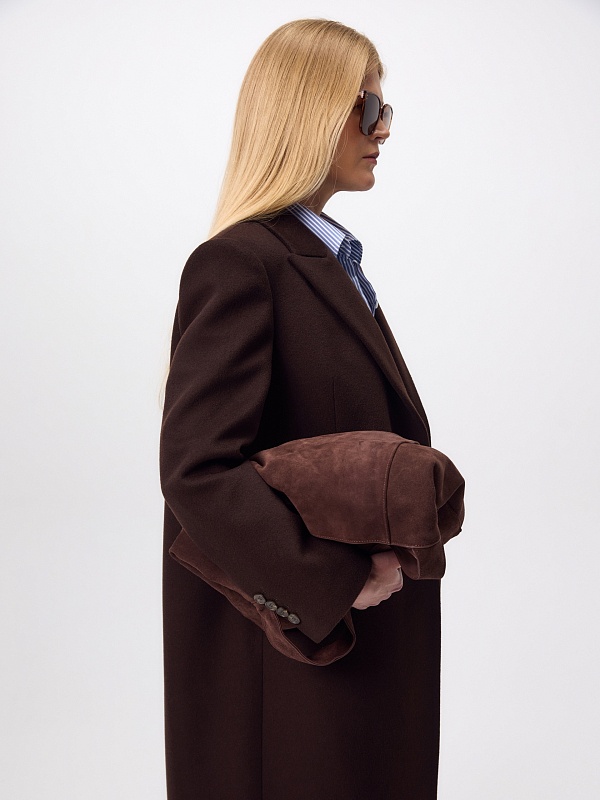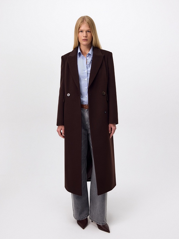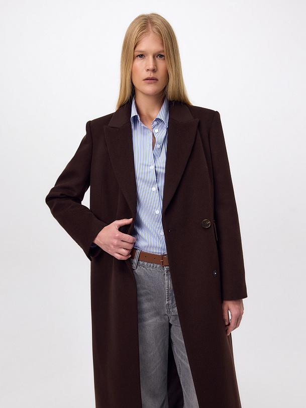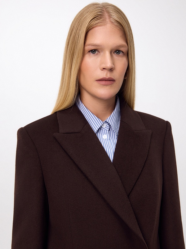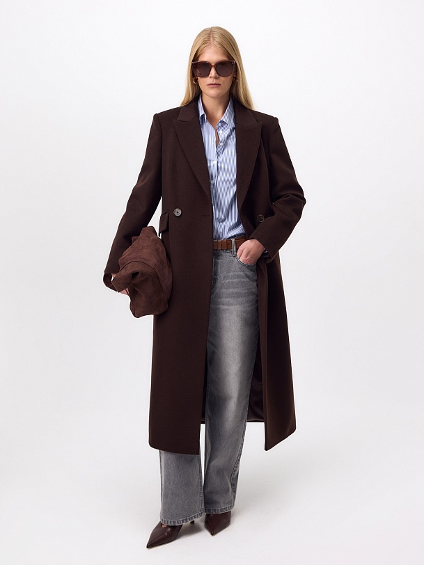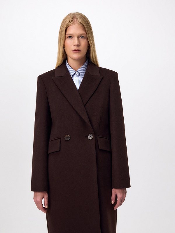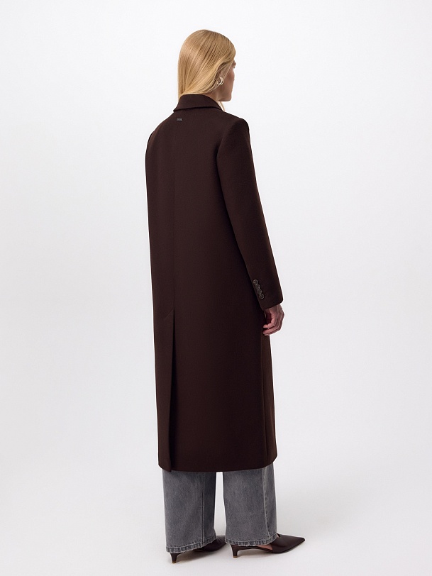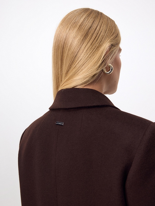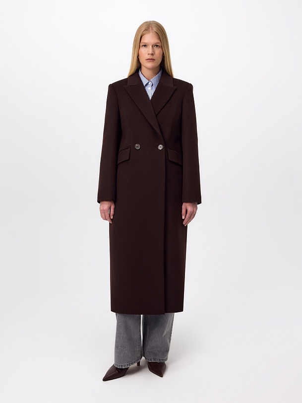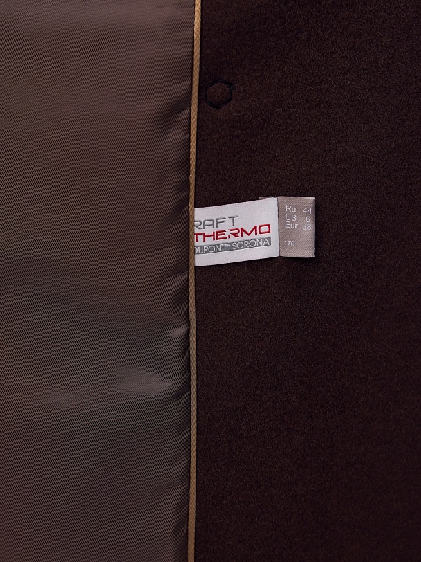 Двубортное пальто из ворсовой ткани с высоким содержанием натуральной шерсти в благородном оттенке "горький шоколад" - must have этого сезона. Пальто прямое, слегка зауженное к низу, обволакивает фигуру, подчёркивая достоинства. Рукав втачной, с застёжкой по низу пиджачного типа. Английский воротник с низкой лаконичной застёжкой на пару пуговиц удлиняет силуэт. По бокам располагаются вместительные карманы с клапанами, а в среднем шве спинки высокая шлица для свободы шага. А для наилучшей защиты от непогоды изделие выполнено с использованием высокотехнологичной мембраны RaftPro, а спинка пальто имеет дополнительное утепление инновационным утеплителем DuPont Sorona. Произведено в Санкт-Петербурге.