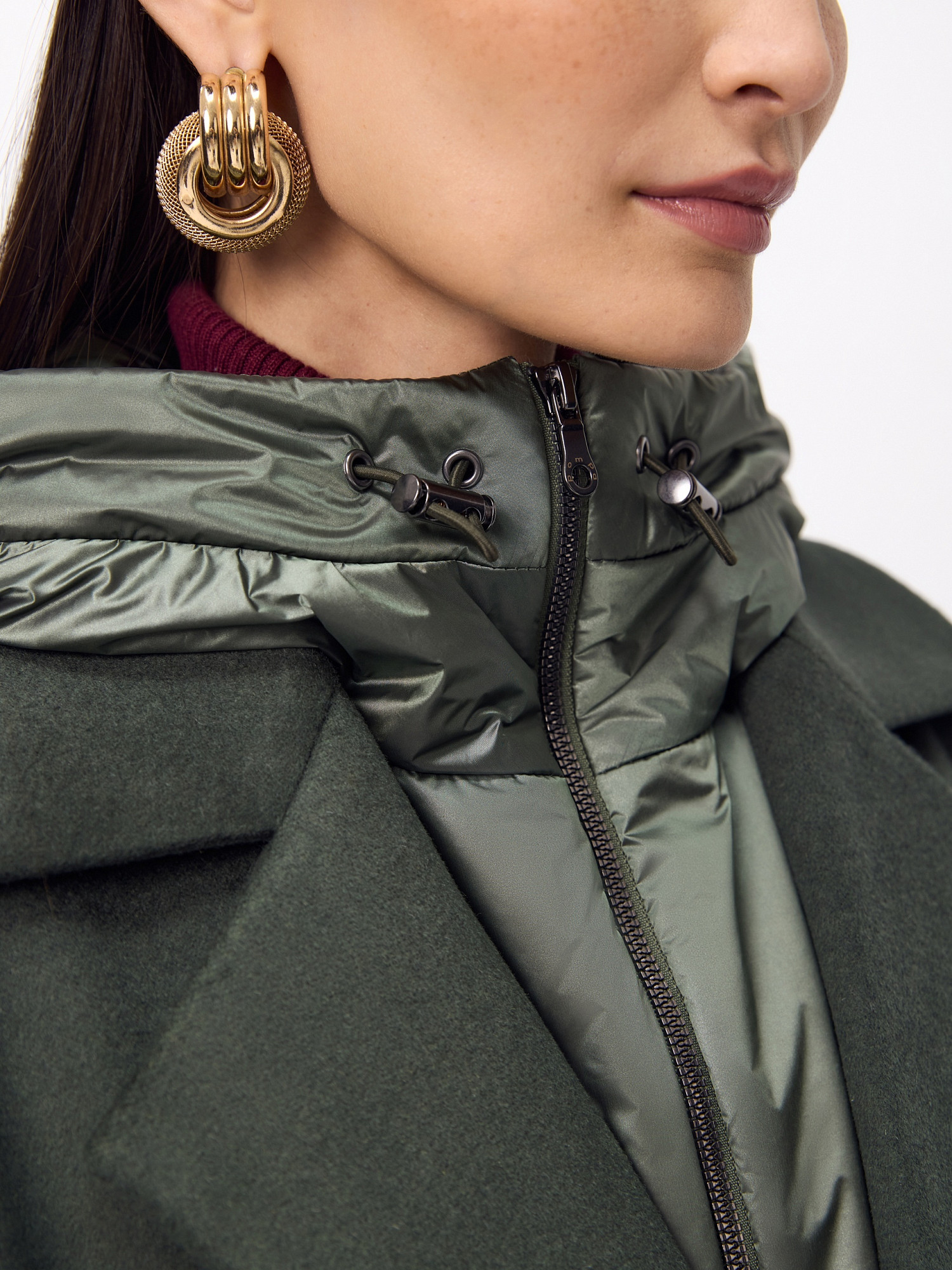 Пальто из шерсти с мембраной, утеплённой спинкой и съёмным капюшоном