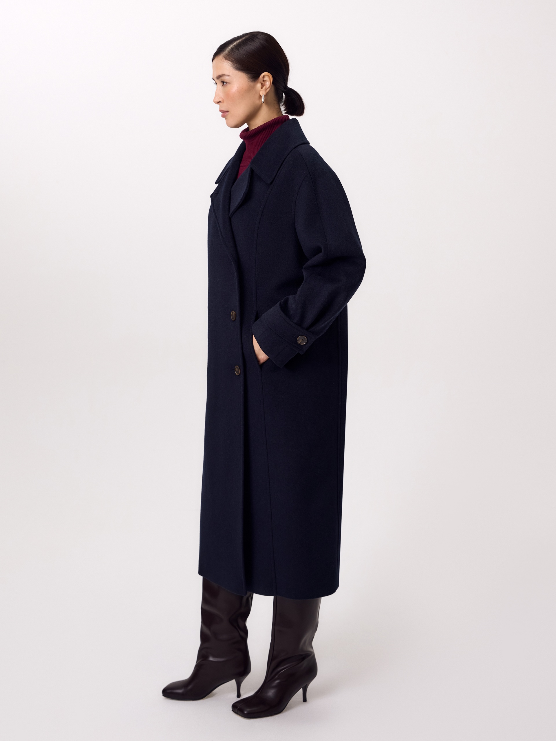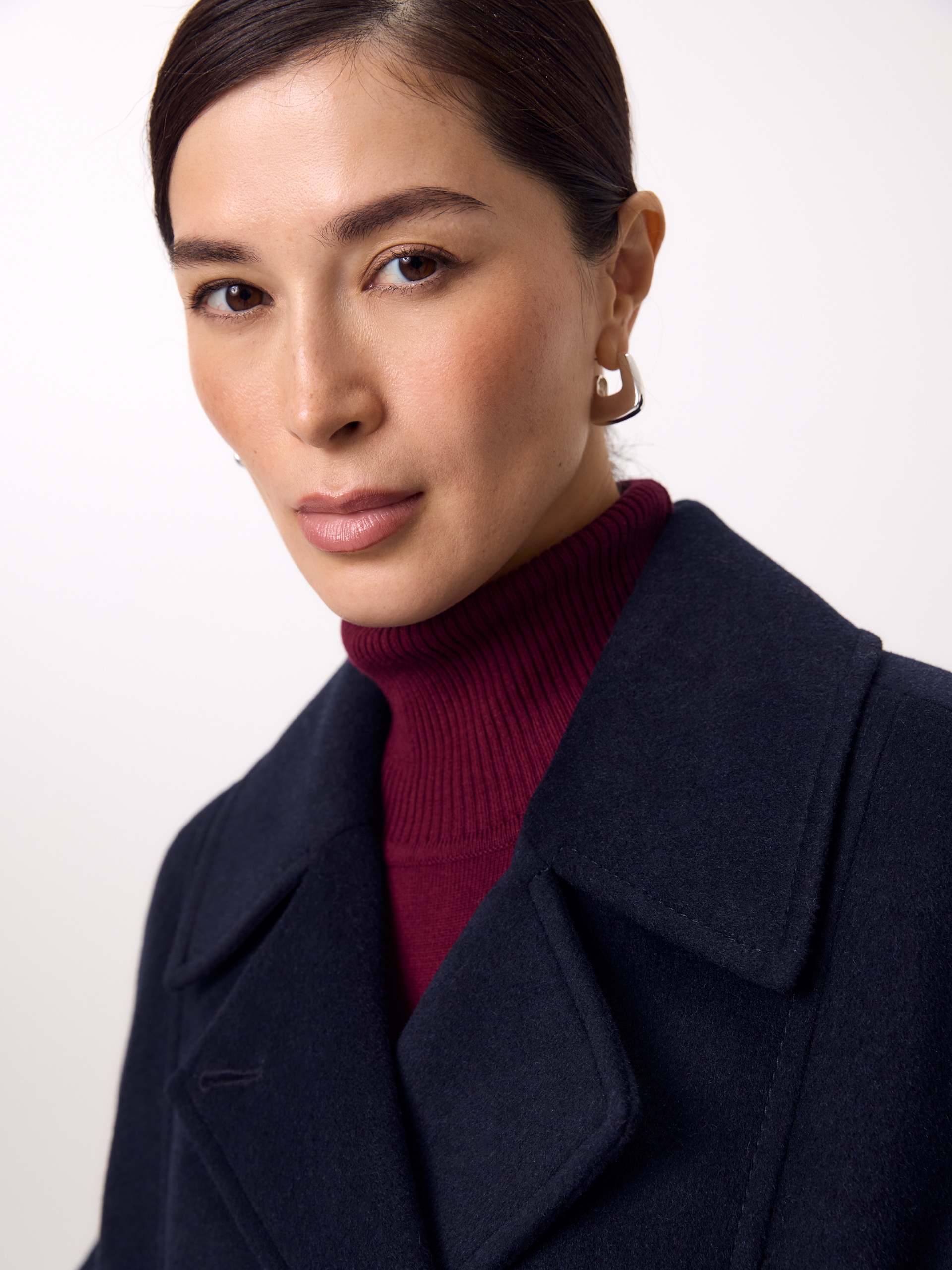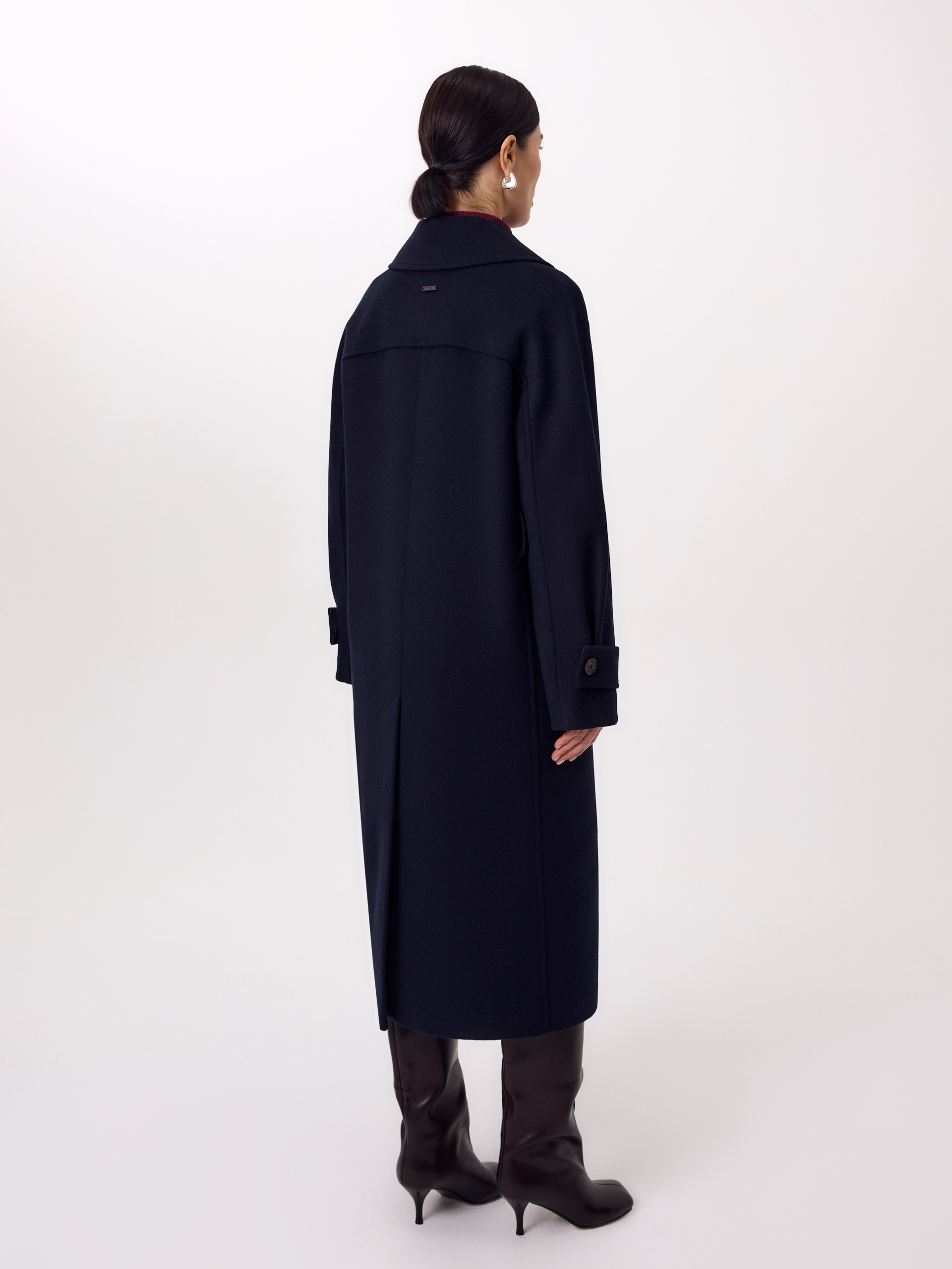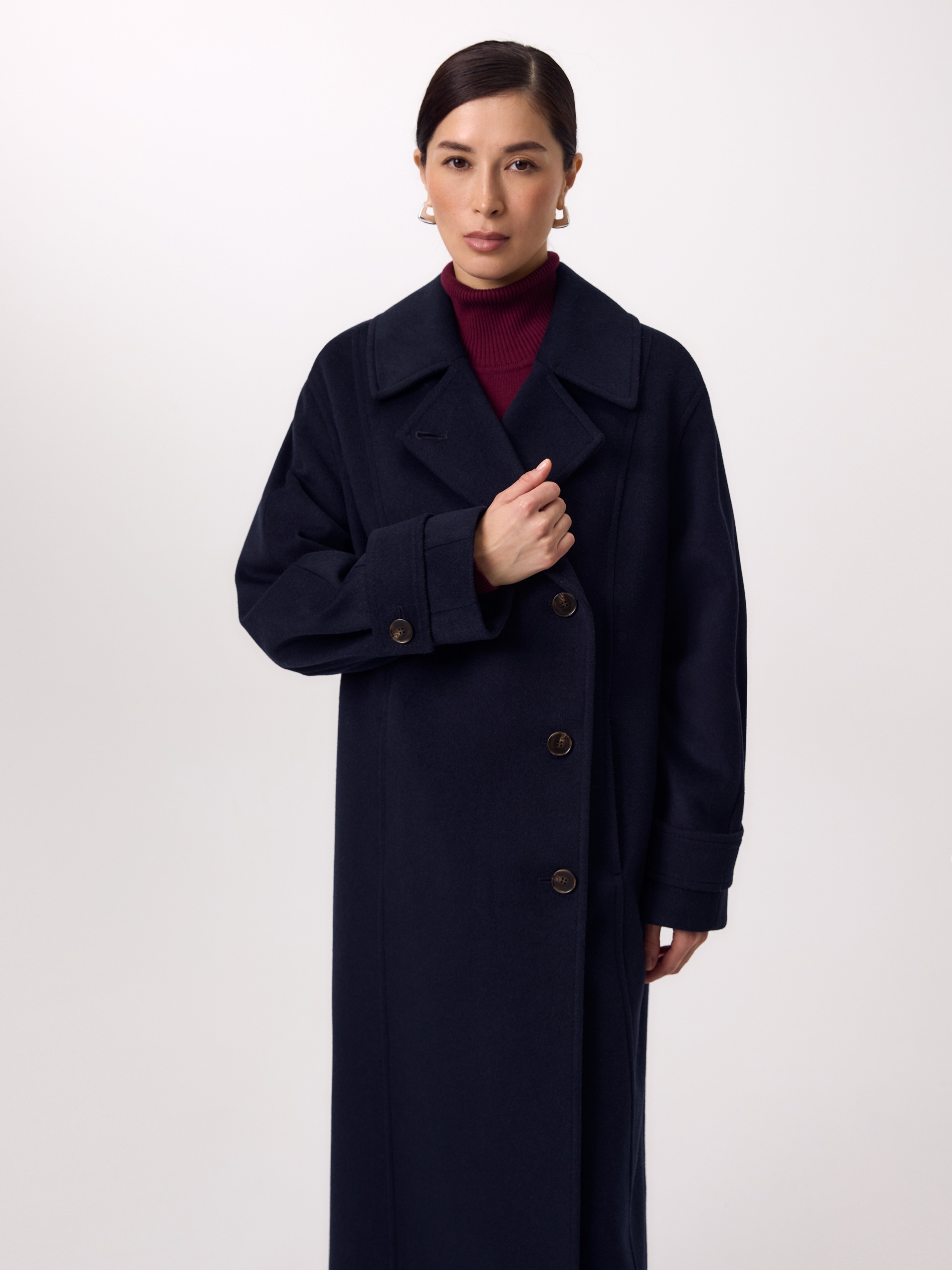 Лаконичный прямой силуэт, английский воротник, один ряд пуговиц, удобные карманы в рельефных швах и неклассическая форма рукава - всё это делает новое пальто коллекции POMPA уникальным. Для данной модели мы выбрали ворсовую ткань с высоким содержанием натуральной шерсти в классическом оттенке dark navy. Для наилучшей защиты от непогоды пальто выполнено с использованием высокотехнологичной мембраны RaftPro и инновационного утеплителя DuPont Sorona. Произведено в Санкт-Петербурге.