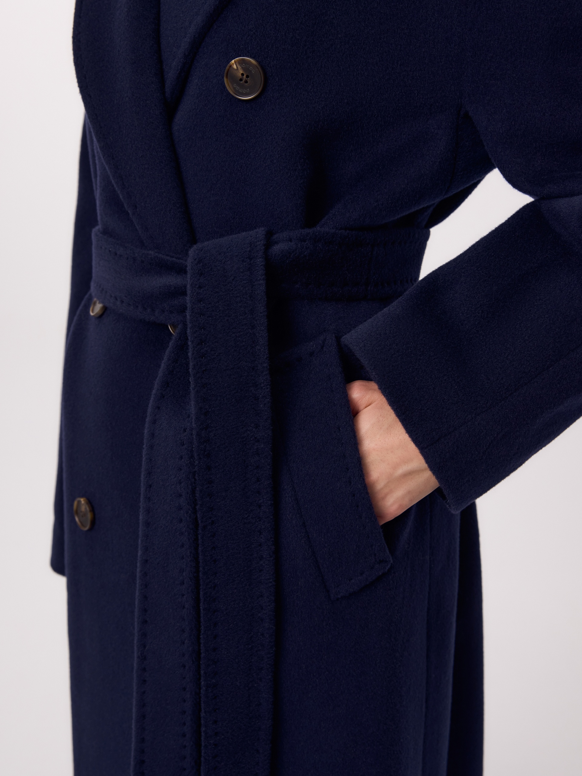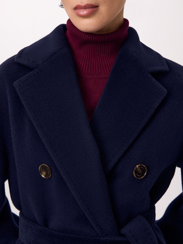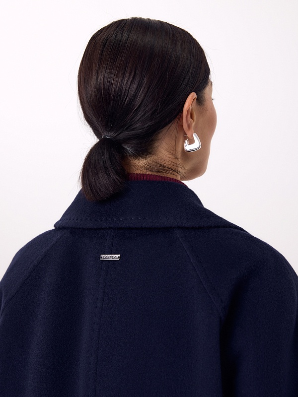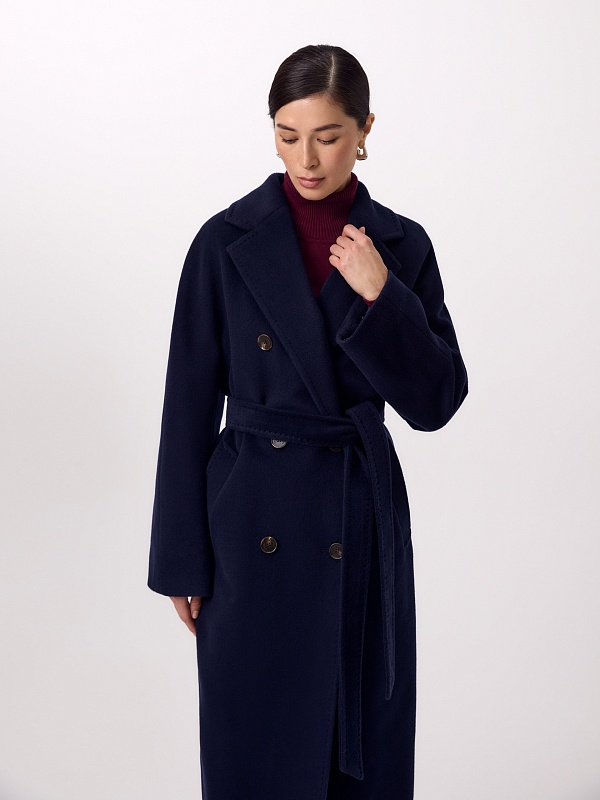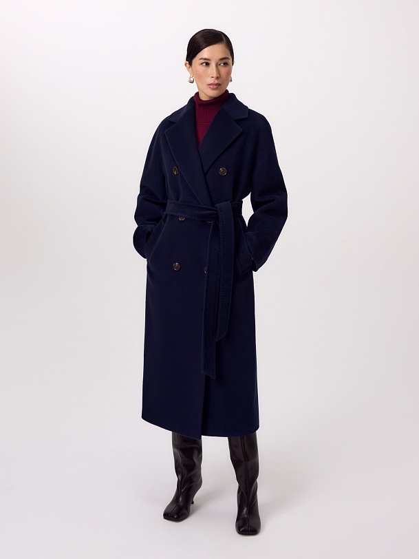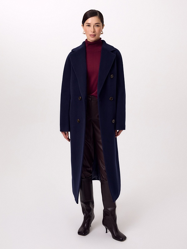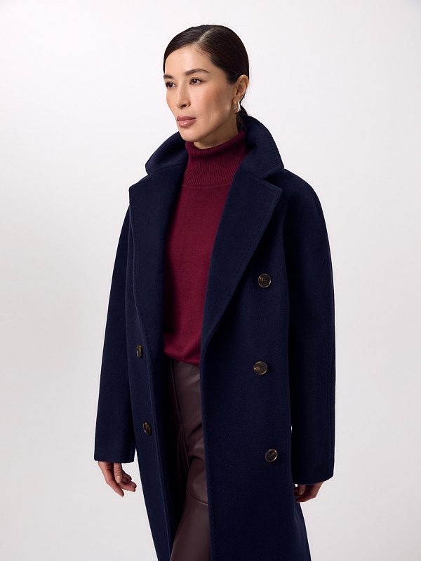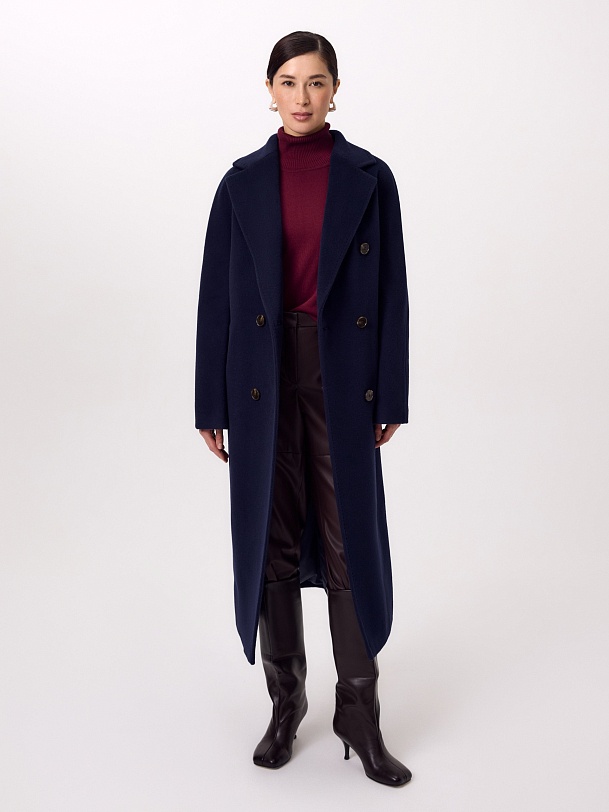 Двубортное пальто силуэта удлиненный кокон - это всем полюбившаяся классика пальто, представленная в новом видении и в современных оттенках. Для данного изделия мы подобрали премиальную ворсовую шерстяную ткань с содержанием нежных волокон шёлка. Пальто модного тёмно-синего цвета и комфортной длины ниже колена, что расширяет возможности для формирования образов. Уникальный цельнокроеный рукав спереди и реглан на спинке создает уютный и расслабленный образ и не стесняет движений. Горловину пальто обрамляет классический широкий английский воротник. Пальто имеет два глубоких кармана с листочками. Застегивается на два ряда стильных крупных пуговиц. Дополняет образ съемный пояс, благодаря которому можно подчеркнуть талию. А для наилучшей защиты от непогоды пальто выполнено с использованием высокотехнологичной мембраны RaftPro и инновационного утеплителя DuPont Sorona. Произведено в Санкт-Петербурге.