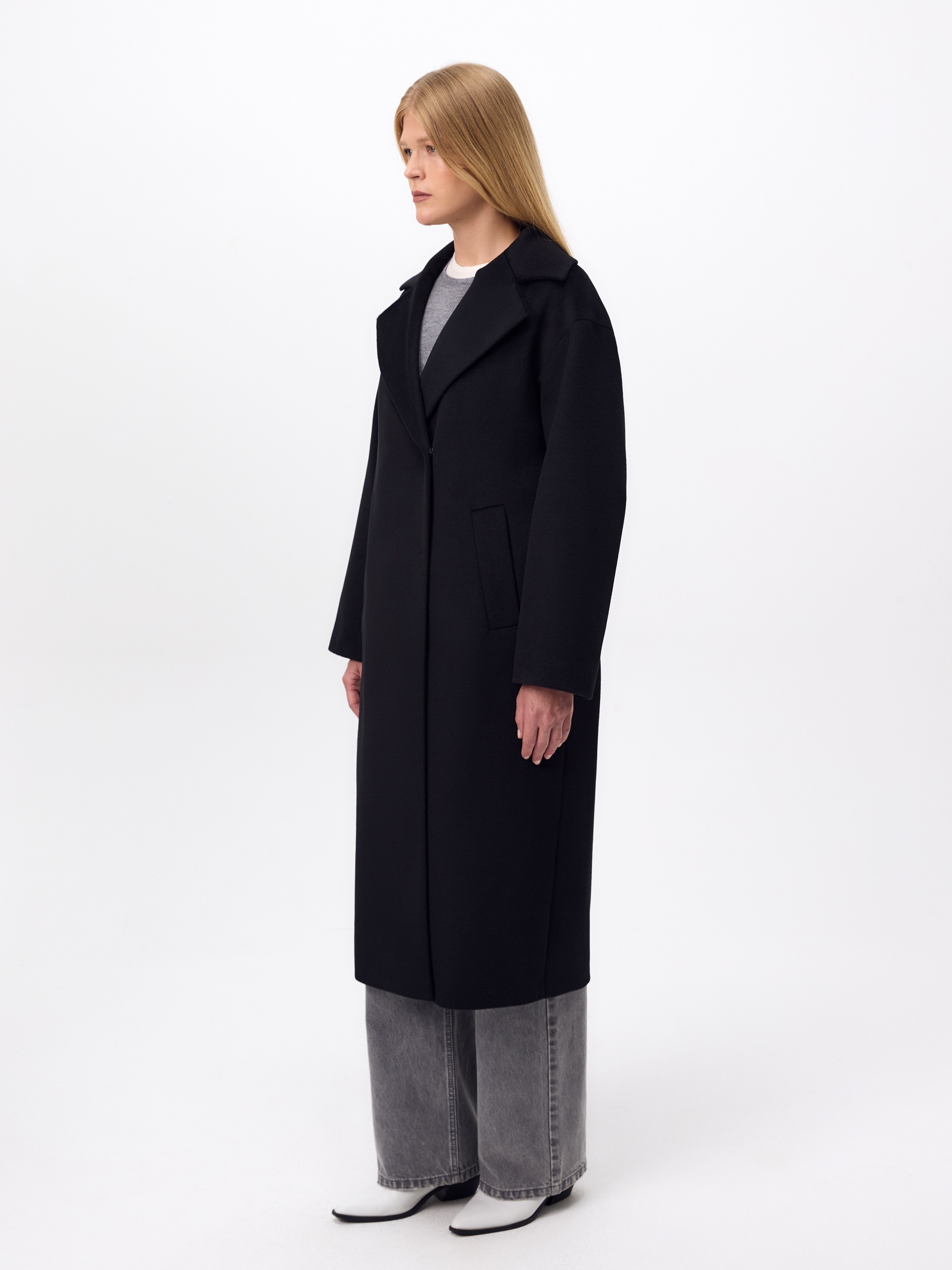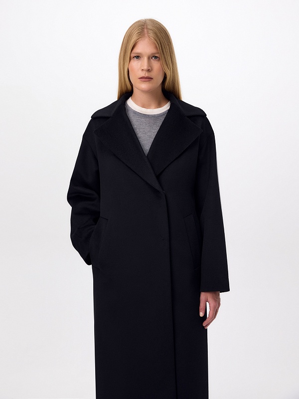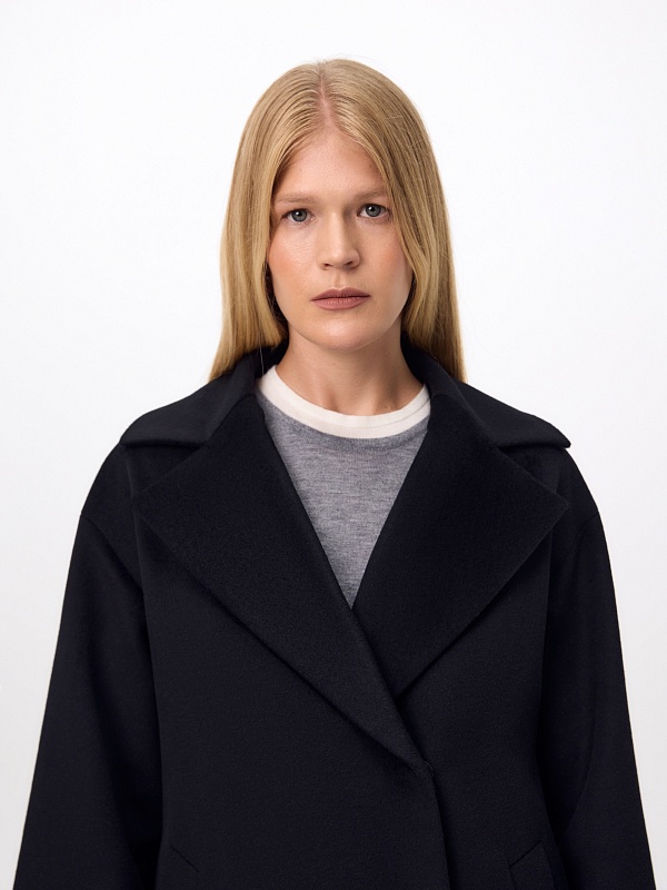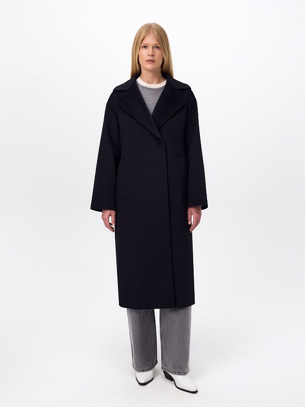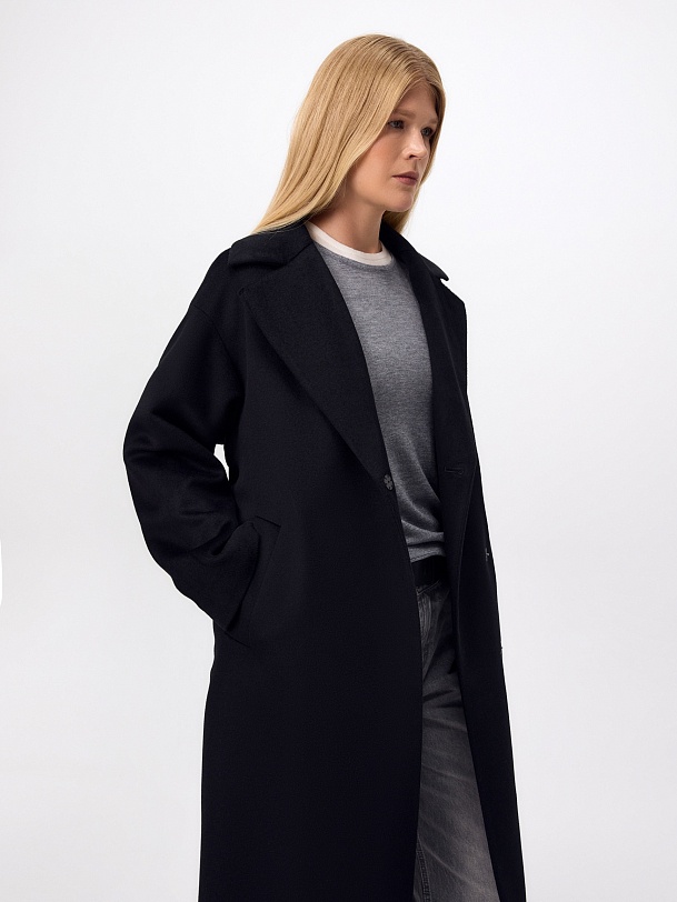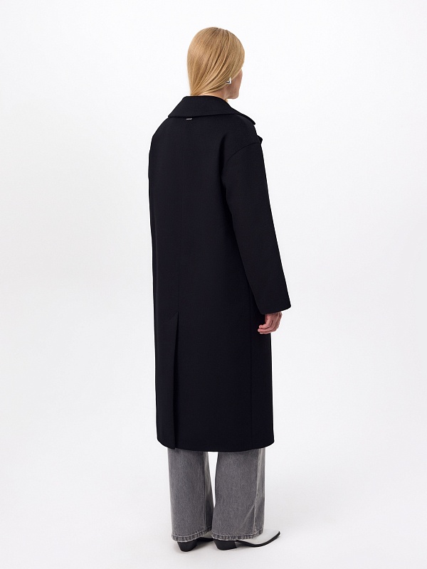 Полюбившаяся классика - двубортное пальто силуэта "удлинённый кокон", в этом сезоне представлена в обновлённом варианте. Пальто сшито из премиальной ворсовой ткани с высоким содержанием шерсти. Глубокий чёрный цвет, свободный рубашечный рукав и классический английский воротник делают его стильным и удобным. Застёжка на ряд надёжных пришивных кнопок, по бокам располагаются вместительные карманы с листочками. Спинка имеет дополнительное утепление. В комплекте с пальто предлагается тёплый капюшон из плащевой ткани с водоотталкивающим покрытием, надёжно защищающий от осадков. А для наилучшей защиты от ветра и непогоды пальто выполнено с использованием высокотехнологичной мембраны RaftPro. Произведено в Санкт-Петербурге.
