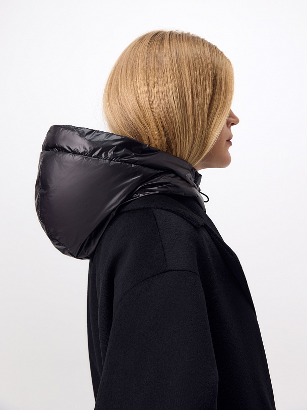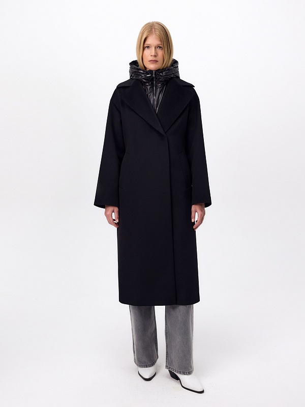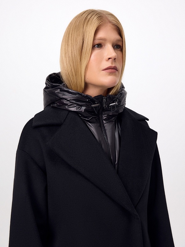 Пальто из 100% шерсти с мембраной, утеплённой спинкой и съёмным капюшоном