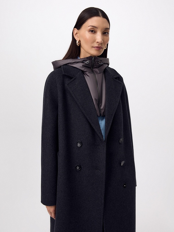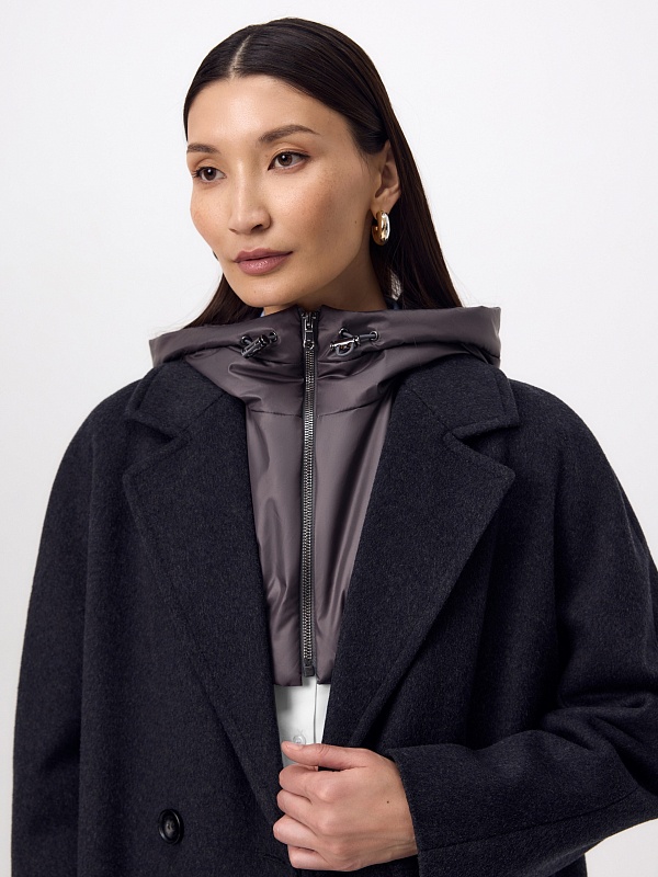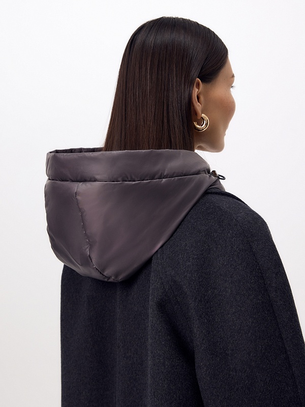 Пальто из шерсти с мембраной, утеплённой спинкой и съёмным капюшоном