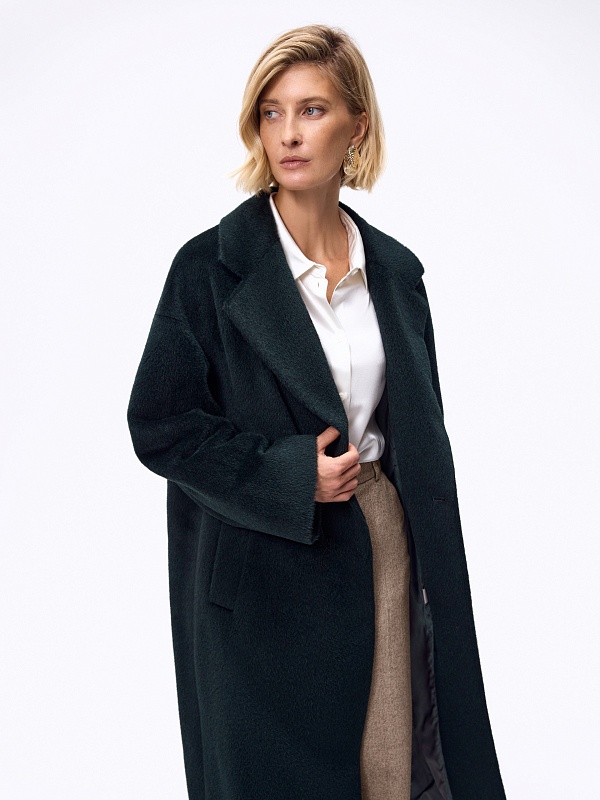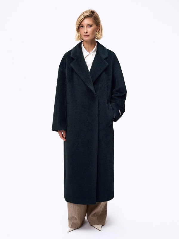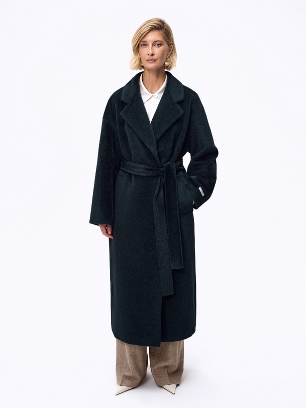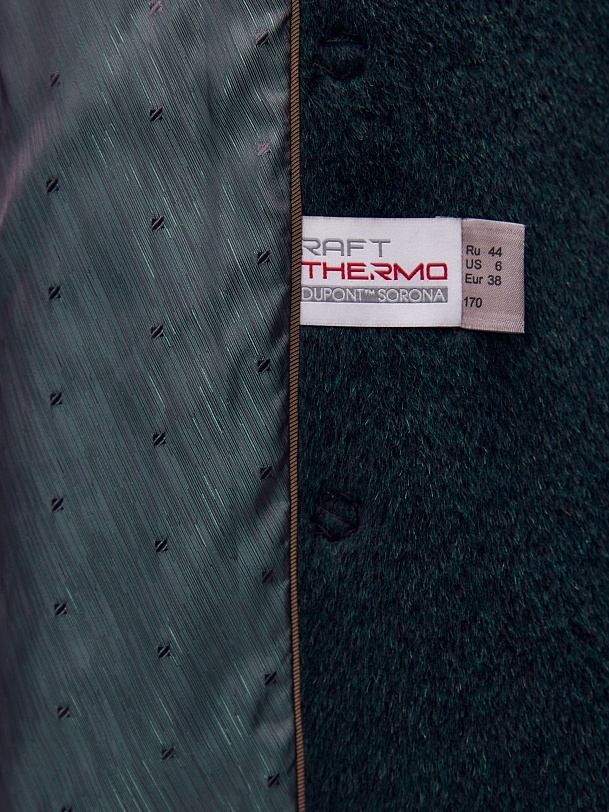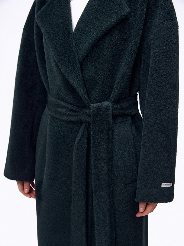 Роскошное двубортное пальто линейки Pompa Premium свободного кроя из премиальной ткани альпака бэби сури в мягком малахитовом оттенке. Благодаря уникальным свойствам ткани сохранять тепло такое пальто станет прекрасной альтернативой шубе. Модель имеет дополнительное утепление в верхней части спинки, что позволяет сохранять комфортную температуру. Пальто со спущеной линией плеча, по бокам располагаются вместительные карманы с листочками. В комплекте предлагается пояс из основной ткани. Пальто изготовлено с использованием запатентованных технологий: высокотехнологичная мембрана RaftPro и утеплитель DuPont Sorona надежно защищают от ветра, холода и перепада температур. Произведено в Санкт-Петербурге.