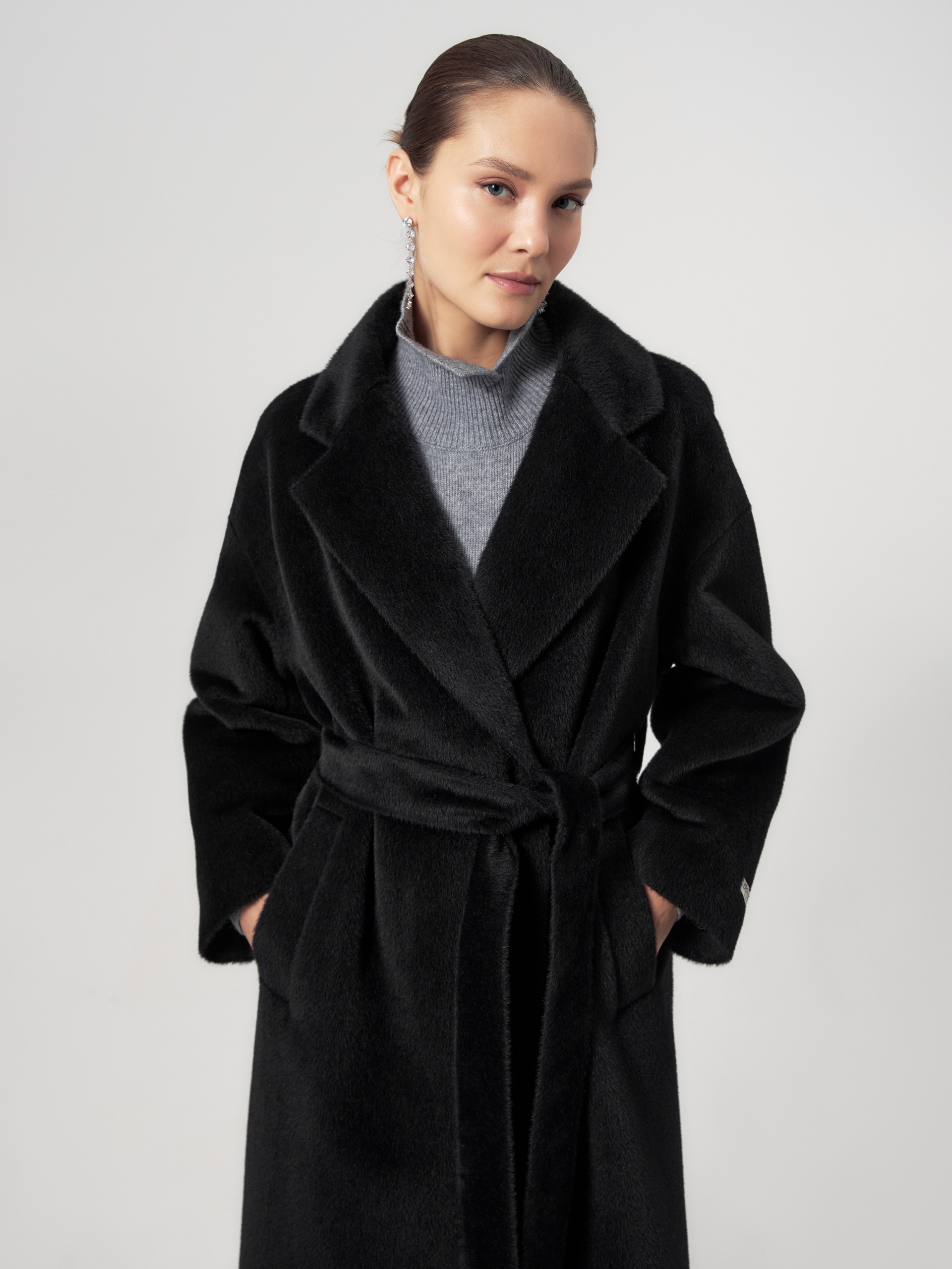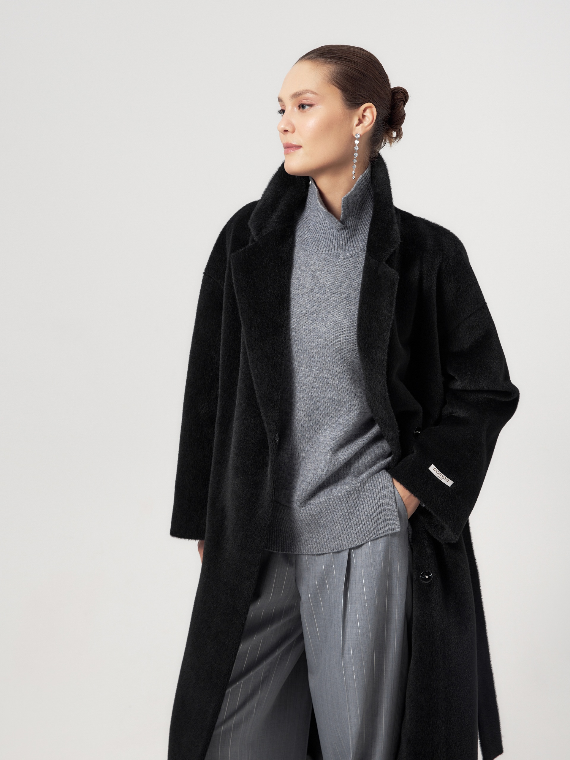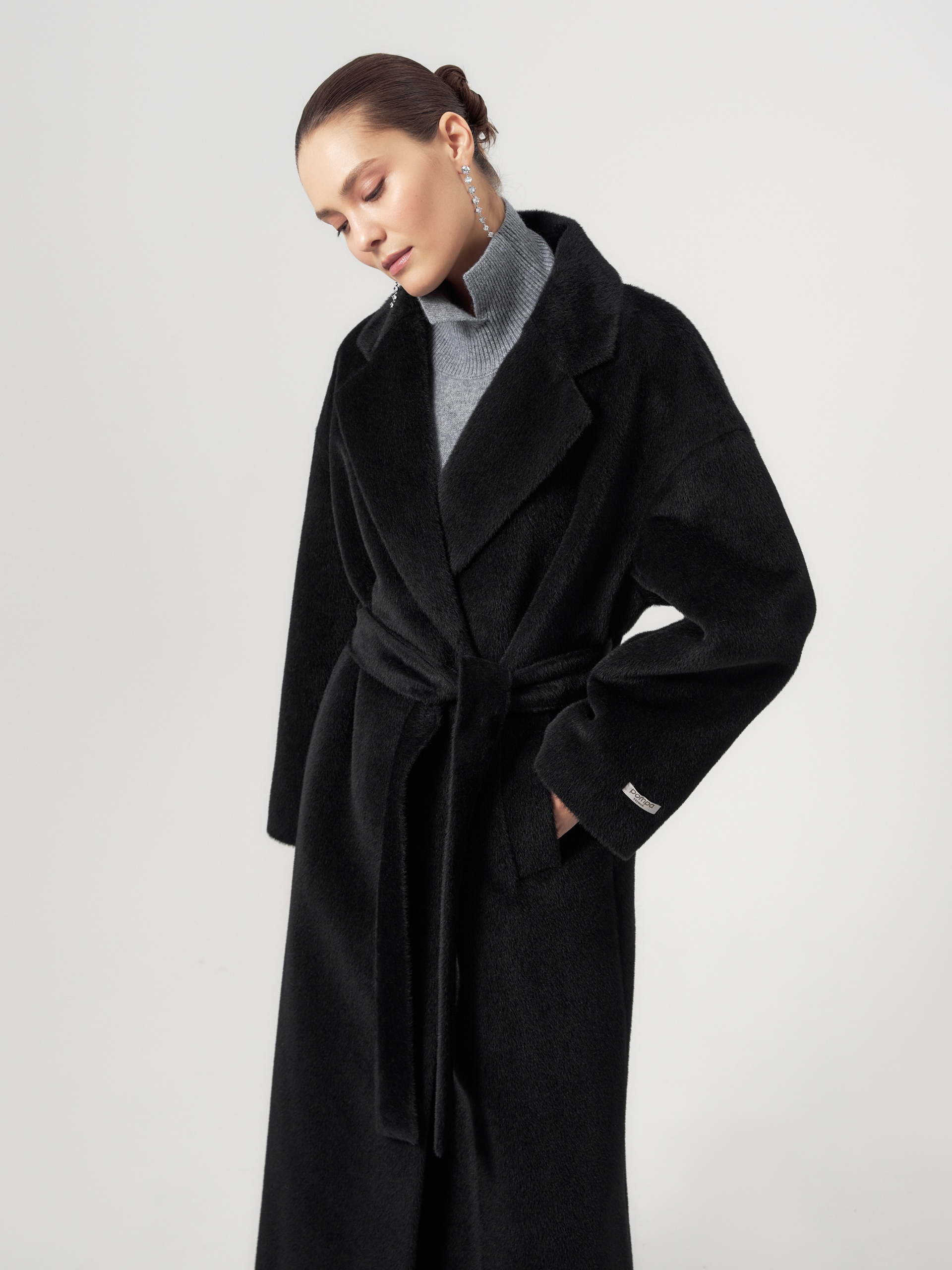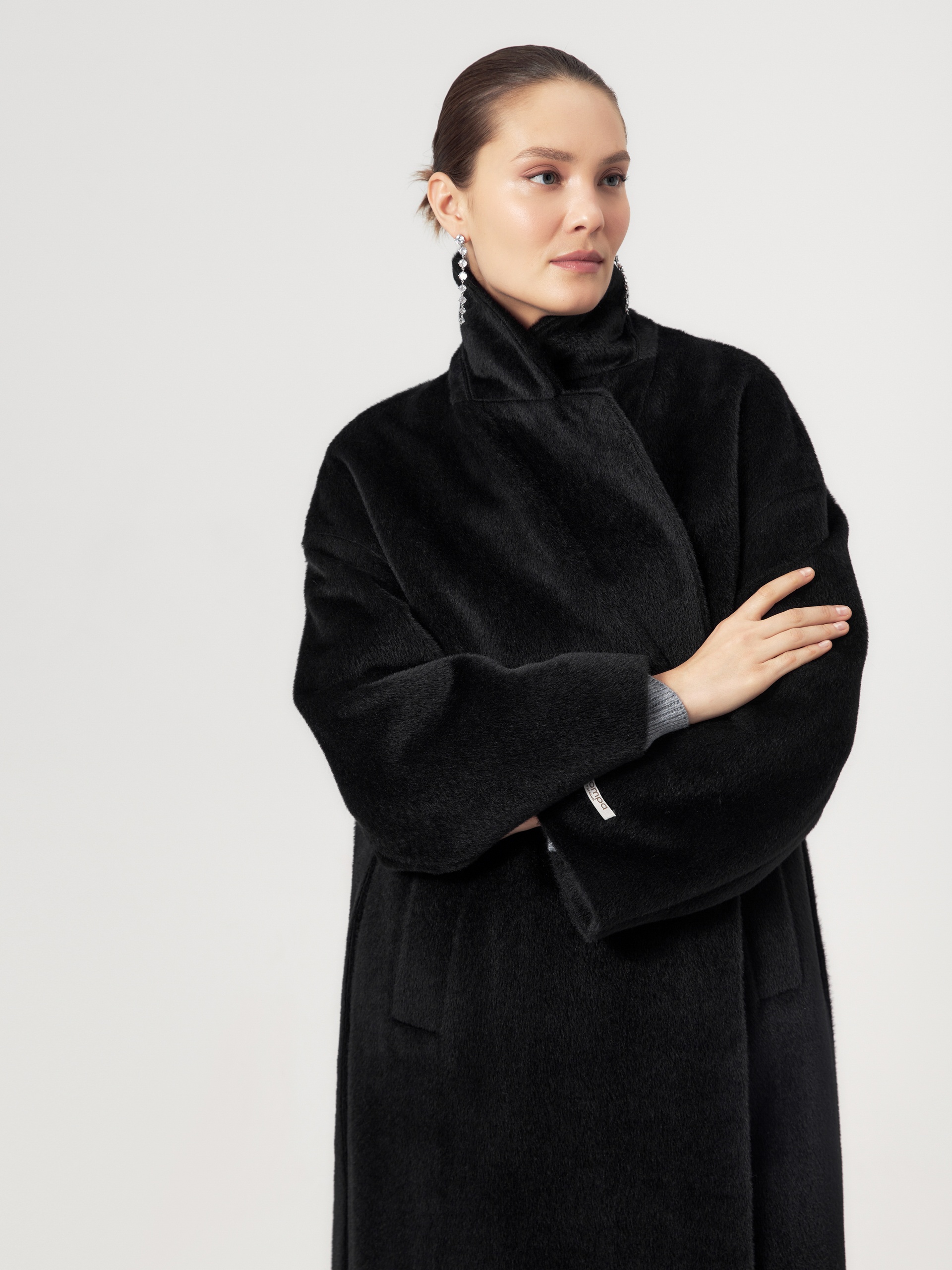 Роскошное двубортное пальто линейки Pompa Premium свободного кроя из премиальной ткани альпака бэби сури в глубоком черном цвете. Благодаря уникальным свойствам ткани сохранять тепло такое пальто станет прекрасной альтернативой шубе.Модель имеет дополнительное утепление в верхней части спинки, что позволяет сохранять комфортную температуру. Пальто со спущеной линией плеча, по бокам располагаются вместительные карманы с листочками. В комплекте предлагается пояс из основной ткани. Пальто изготовлено с использованием запатентованных технологий: высокотехнологичная мембрана RaftPro и утеплитель DuPont Sorona надежно защищают от ветра, холода и перепада температур. Произведено в Санкт-Петербурге.