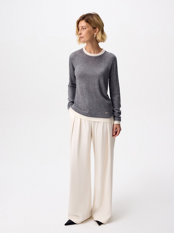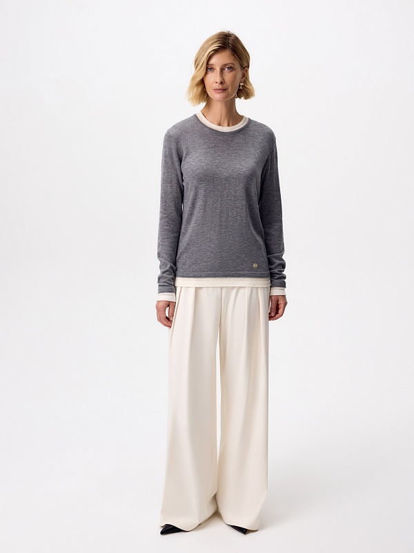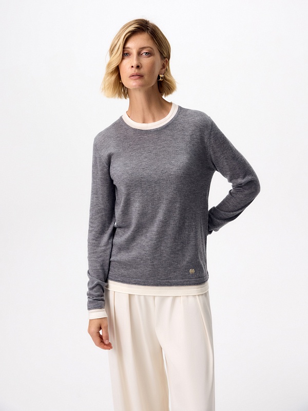Тонкий и мягкий вязаный джемпер прямого силуэта станет отличной базой для гардероба. У джемпера круглая горловина и втачной рукав полной длины.
