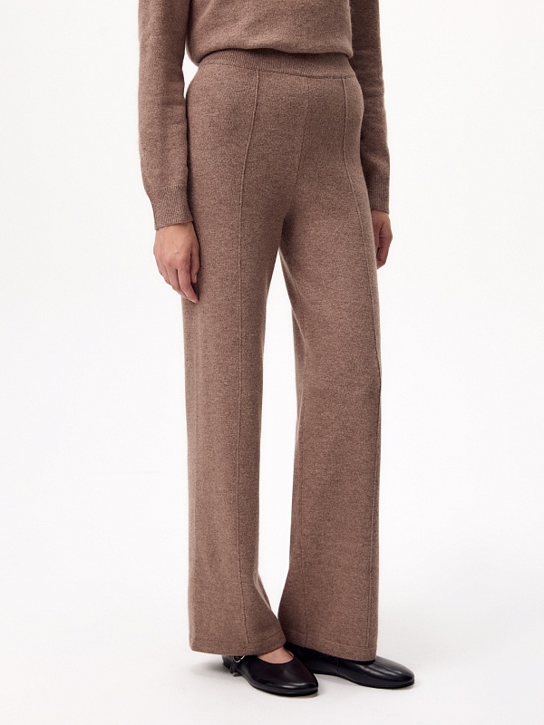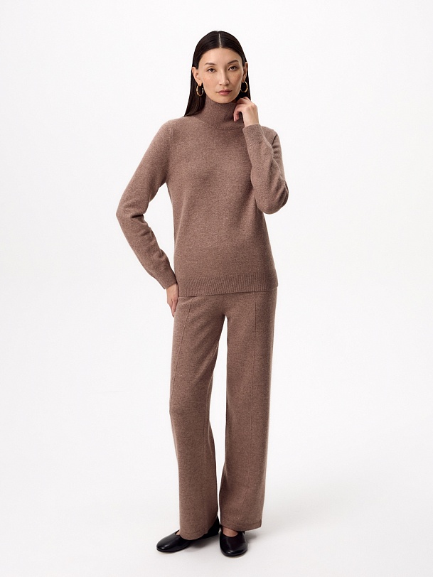 Уютный костюм состоящий из прямого свитера и брюк с рельефами на резинке.