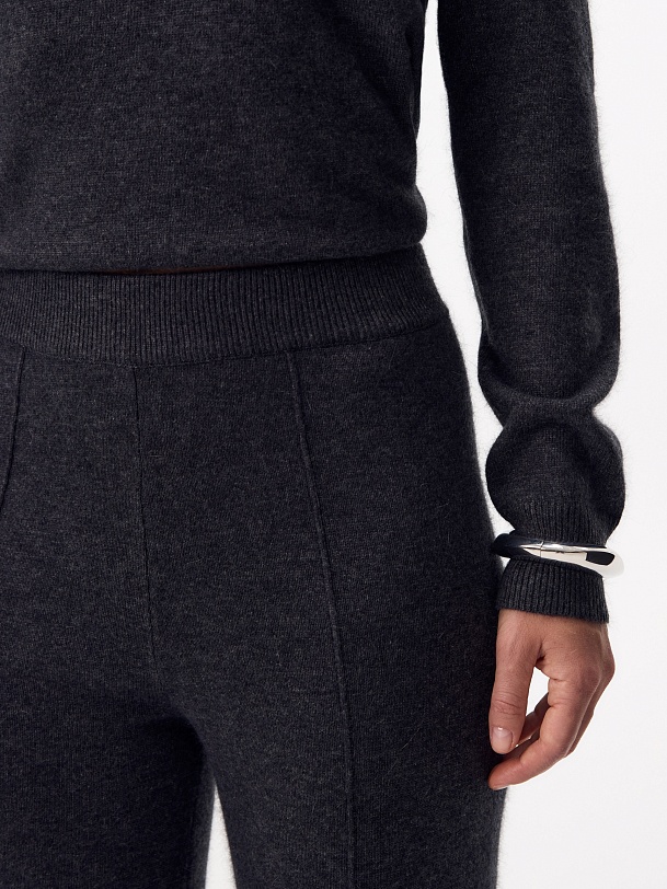 Уютный костюм состоящий из прямого свитера и брюк с рельефами на резинке.