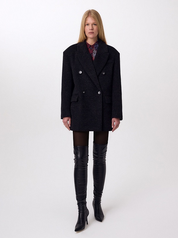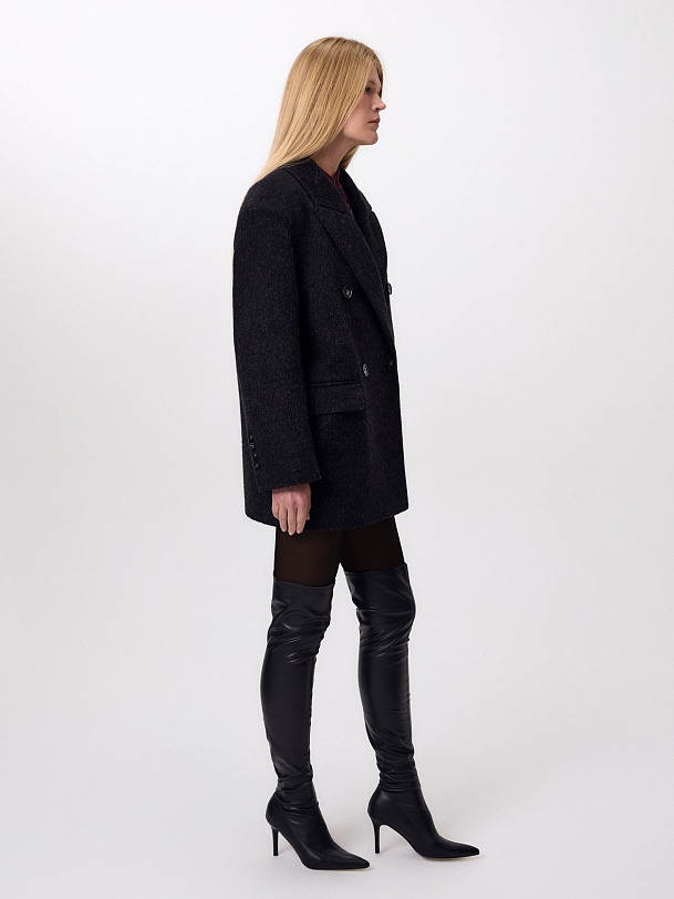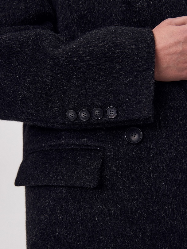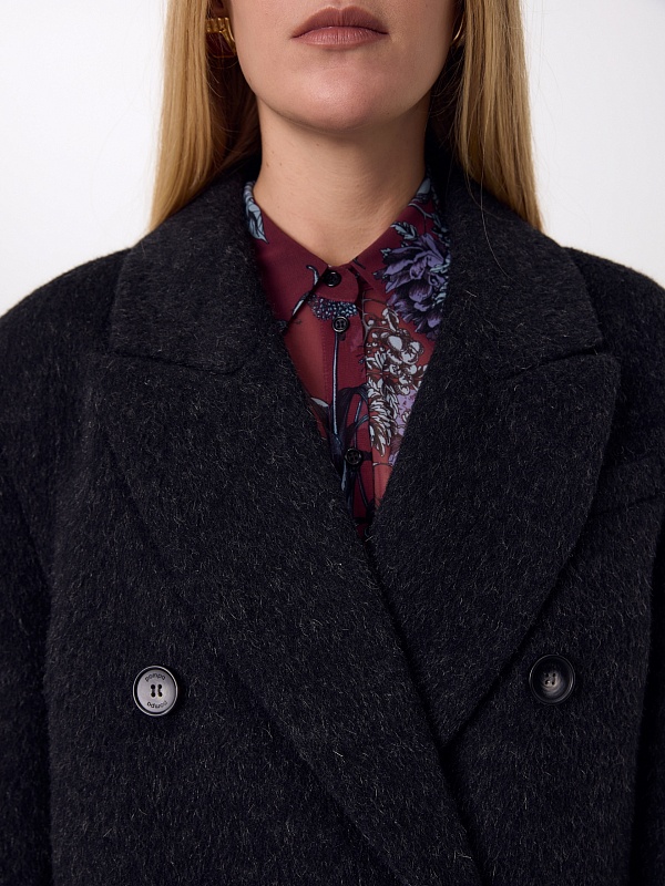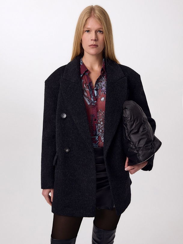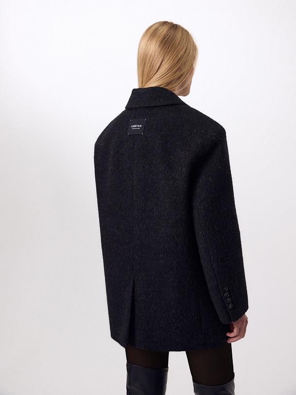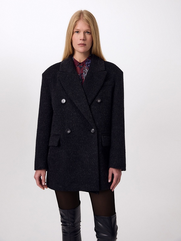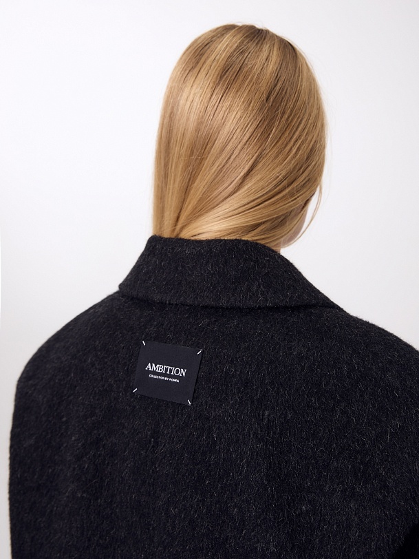 Двубортное трендовое пальто-пиджак прямого силуэта в мужском стиле из линейки Ambition, с расширенной линией плеча. Выполнено из теплой шерстяной ткани с высоким содержанием мохера в цвете графит. Пальто имеет английский воротник и мягкий втачной рукав с застежкой по низу на ряд пуговиц. Карманы в рамку с клапаном. Застегивается на пуговицы. Для наилучшей защиты от непогоды изделие выполнено с использованием высокотехнологичной мембраны RaftPro, а спинка пальто имеет дополнительное утепление высокотехнологичным утеплителем DUPONT SORONA. Произведено в Санкт-Петербурге.