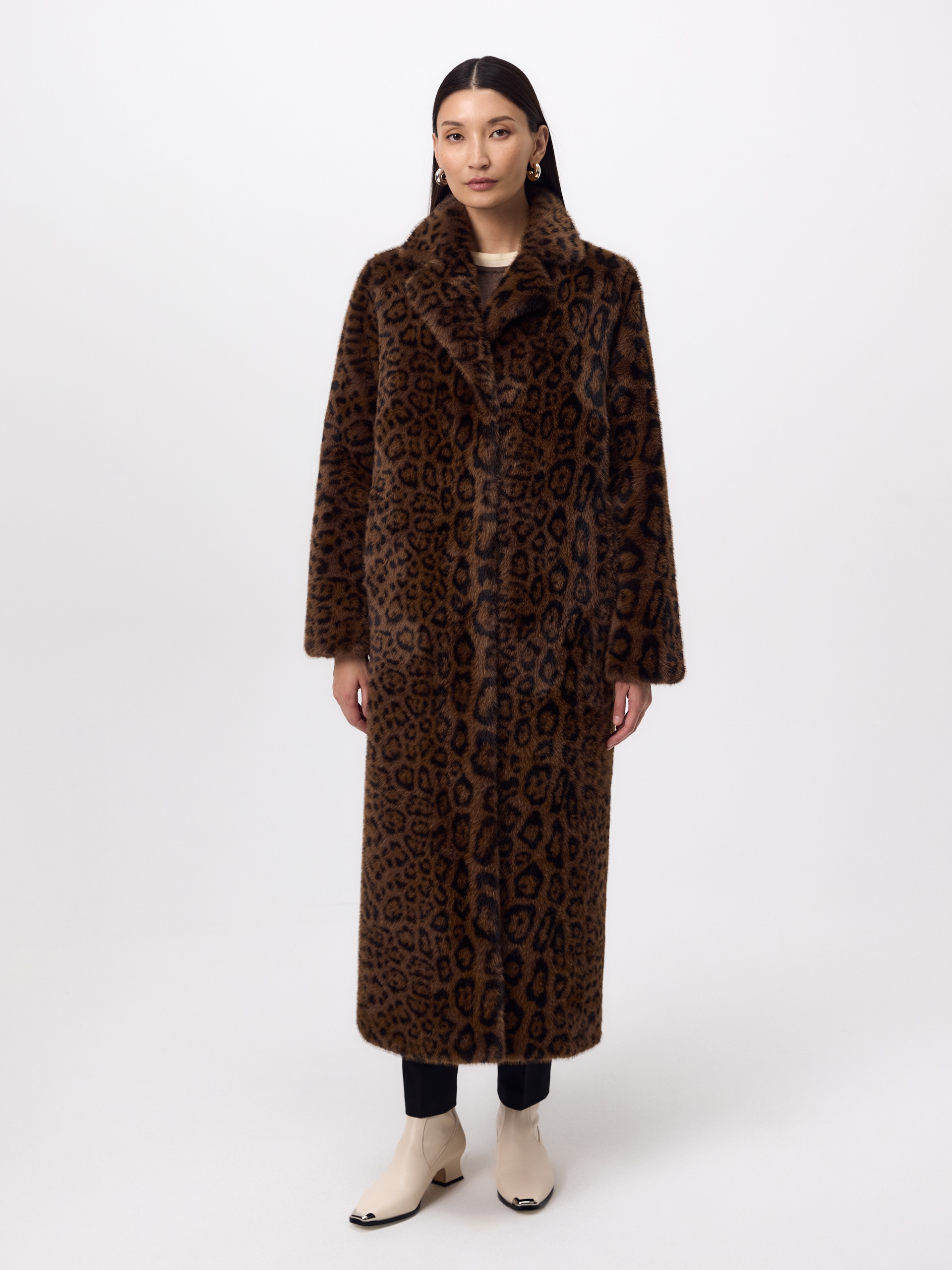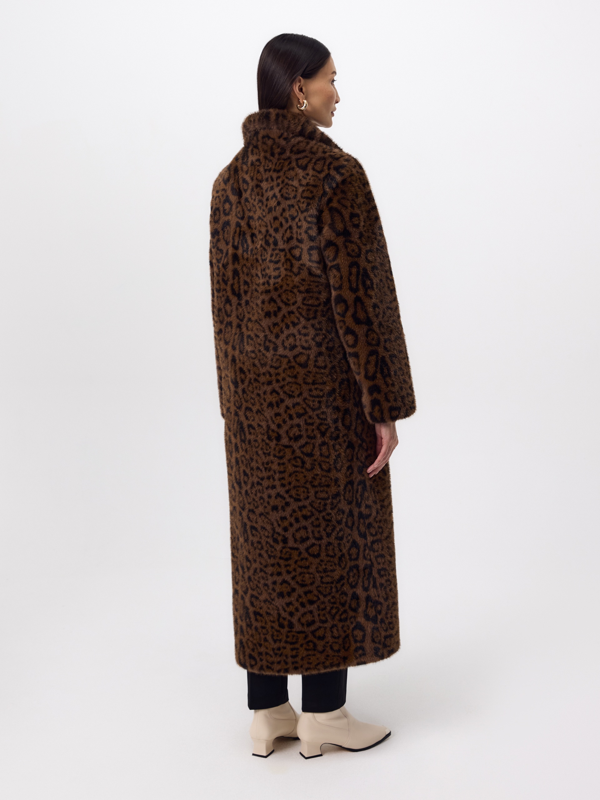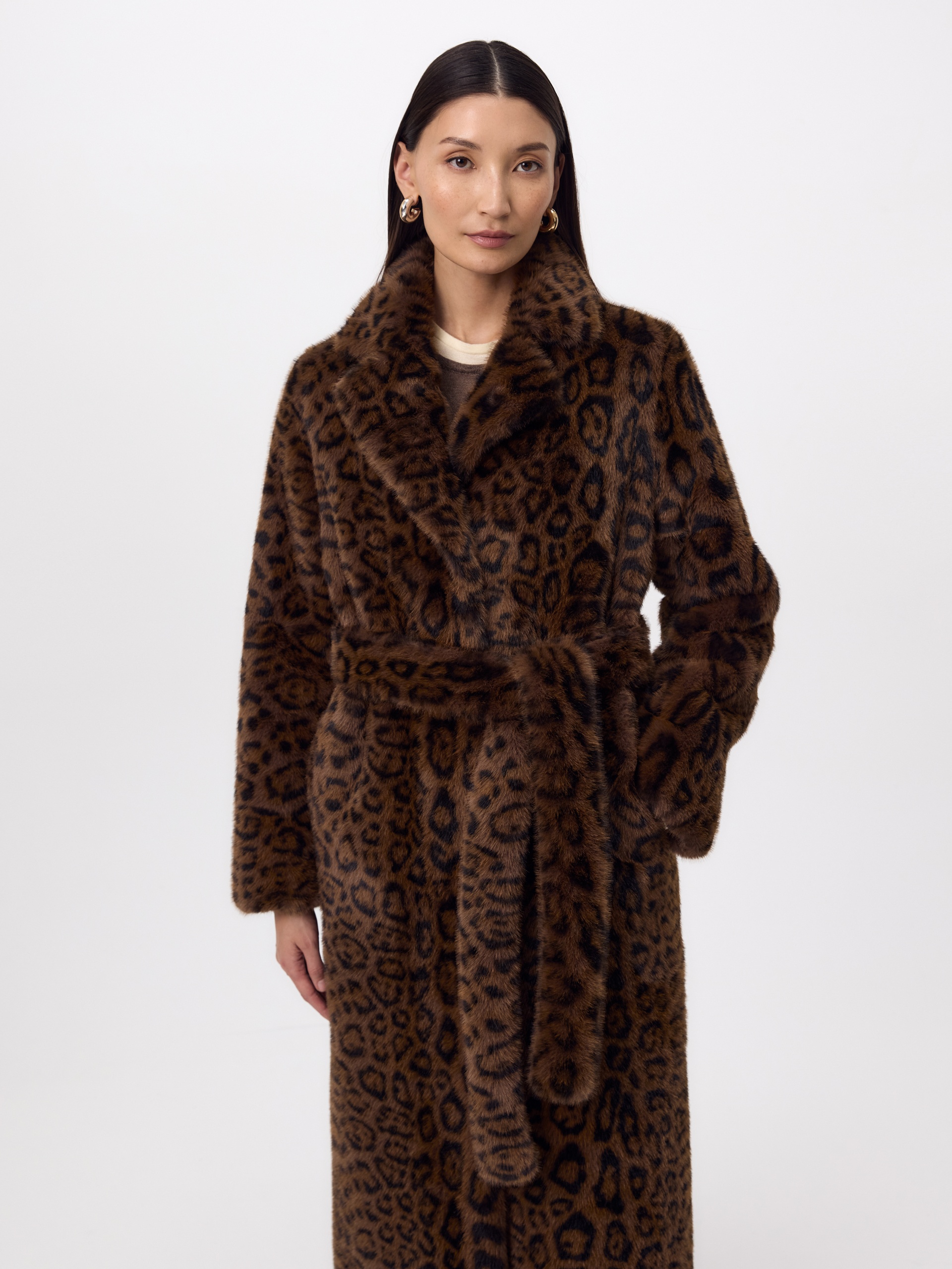 Пальто прямого силуэта, выполненное из мягкого искусственного меха в трендовой анималистичной расцветке "леопард". Пальто с лаконичным втачным рукавом и широким английским воротником, закрывающим от ветра. Карманы-щели, для дополнительного комфорта внутри обработаны искусственной замшей. Образ завершает пояс из той же ткани. А для наилучшей защиты от непогоды спинка пальто имеет дополнительное утепление инновационным утеплителем DuPont Sorona.