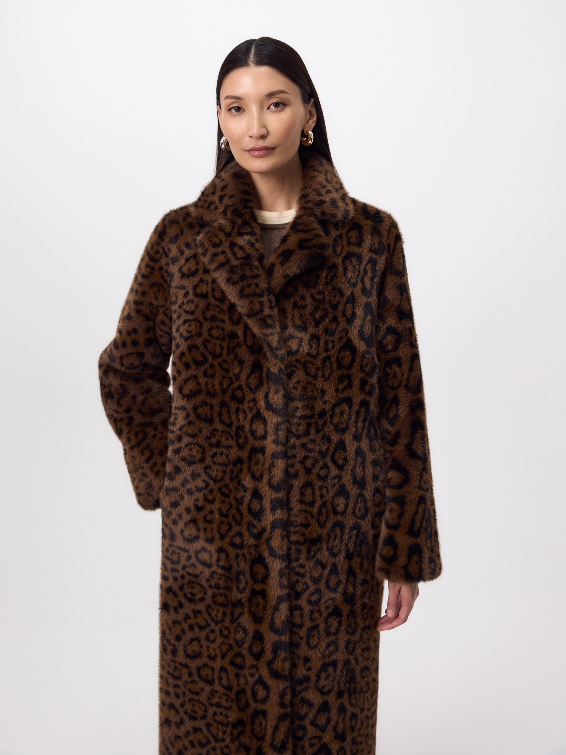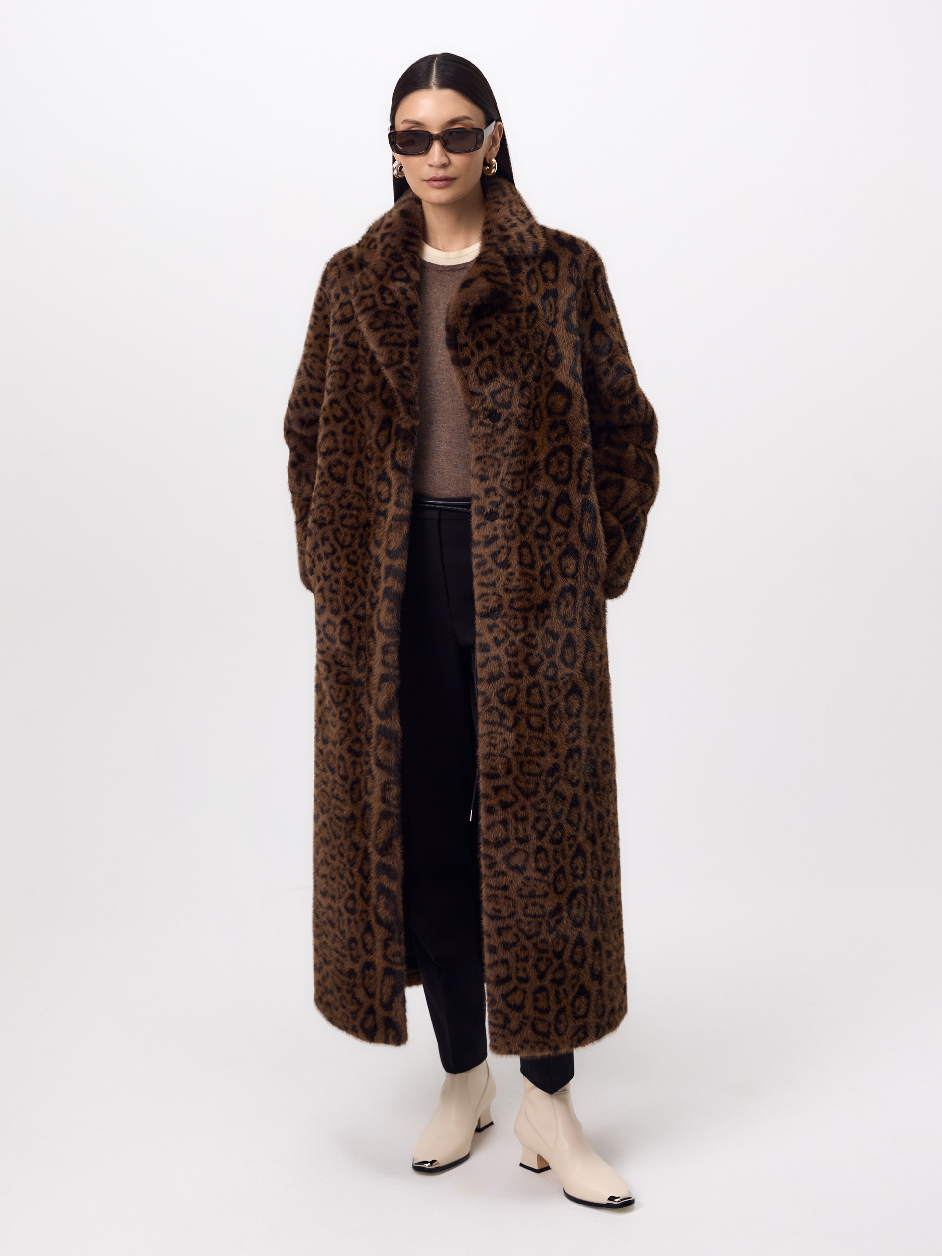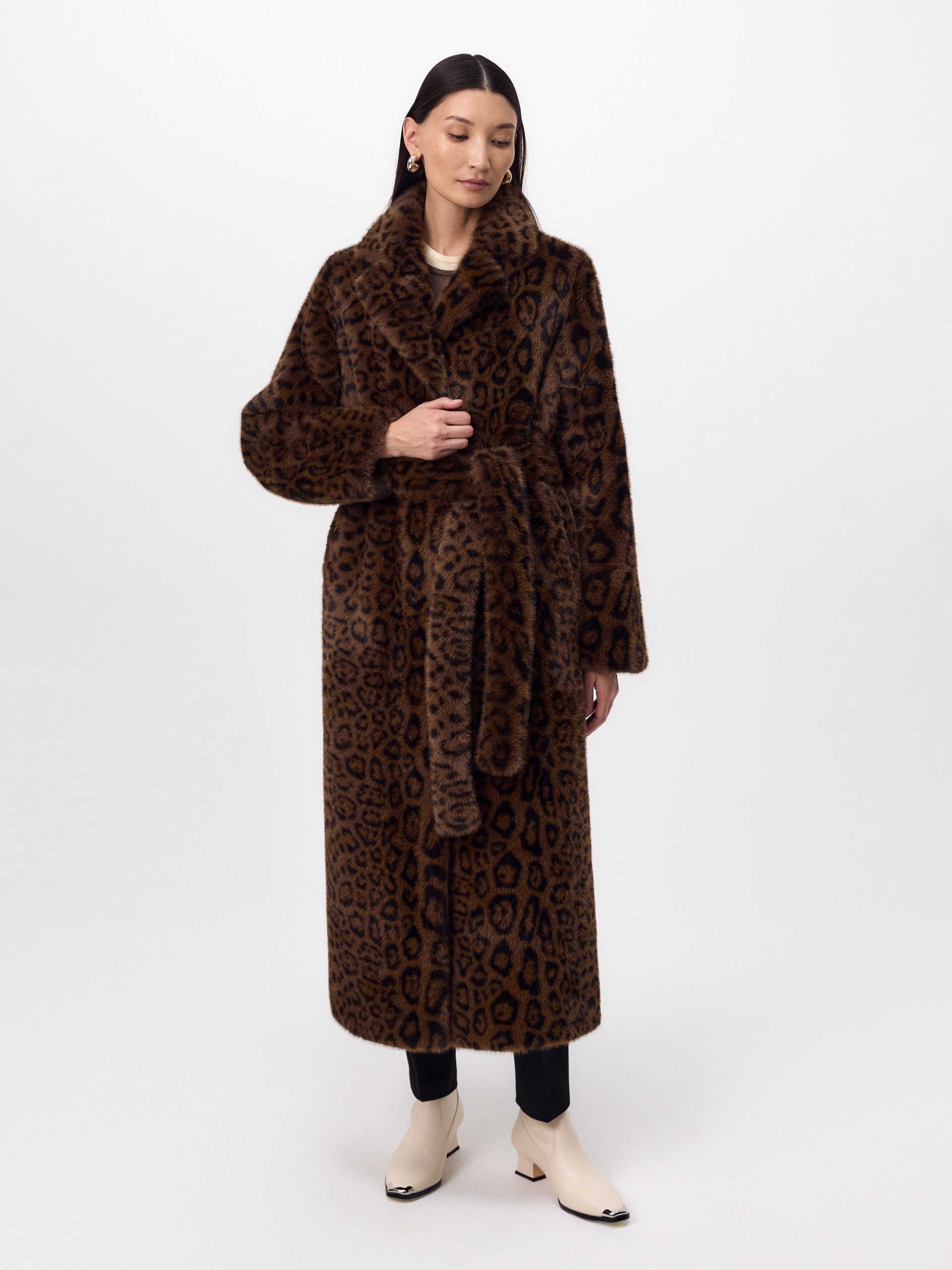 Пальто прямого силуэта, выполненное из мягкого искусственного меха в трендовой анималистичной расцветке "леопард". Пальто с лаконичным втачным рукавом и широким английским воротником, закрывающим от ветра. Карманы-щели, для дополнительного комфорта внутри обработаны искусственной замшей. Образ завершает пояс из той же ткани. А для наилучшей защиты от непогоды спинка пальто имеет дополнительное утепление инновационным утеплителем DuPont Sorona.