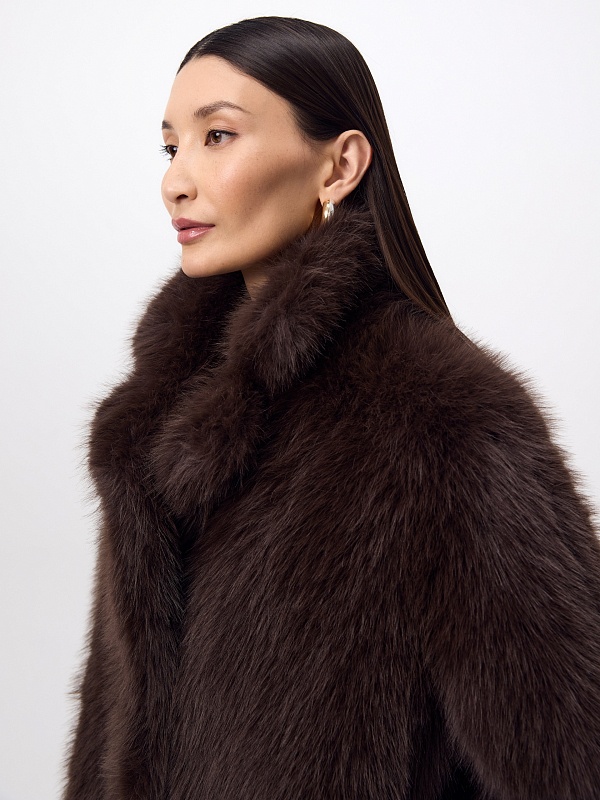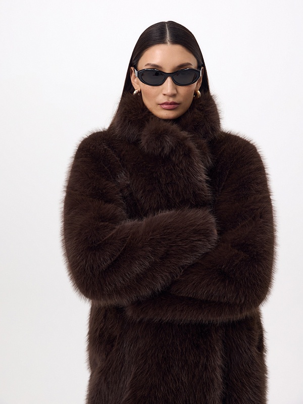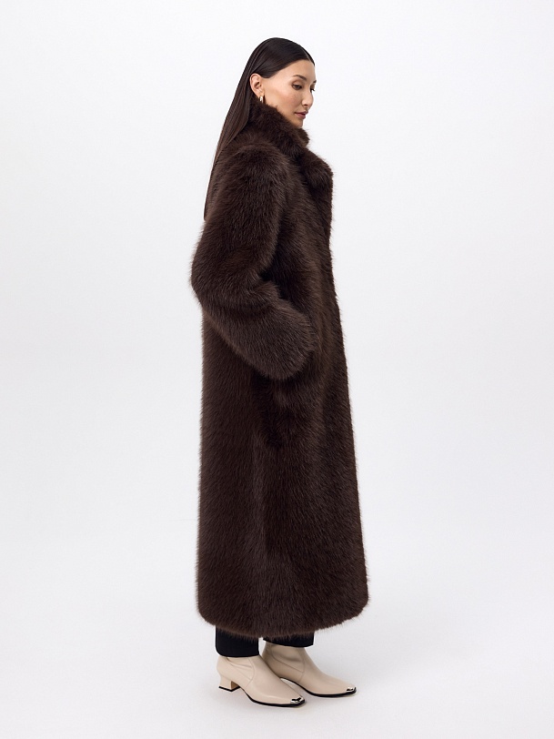 Уютное пальто, выполненное из мягкого длинноворсового искусственного меха в актуальном каштановом оттенке. Пальто с лаконичным втачным рукавом и широким английским воротником, закрывающим от ветра. Карманы-щели для дополнительного комфорта внутри обработаны искусственной замшей. А для наилучшей защиты от непогоды спинка пальто имеет дополнительное утепление инновационным утеплителем DuPont Sorona.