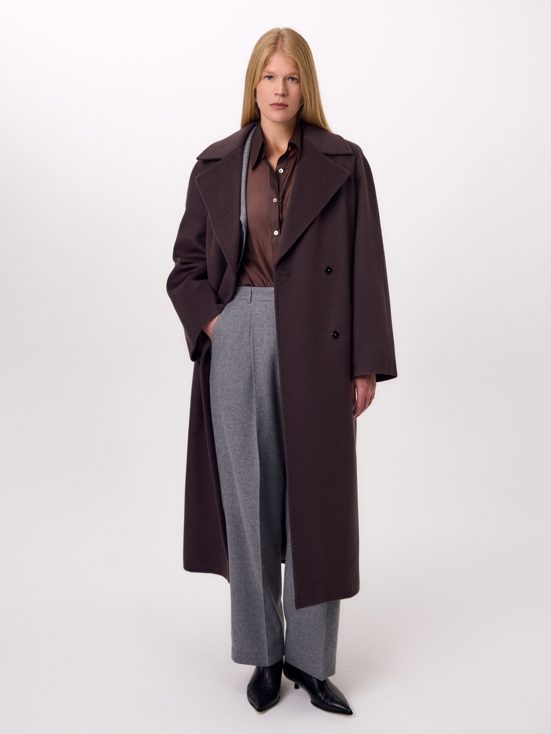 Роскошное двубортное пальто-халат из линейки Pompa Premium из премиальной шерстяной ткани с добавлением кашемира, выполненное в трендовом оттенке антрацит. Для этой модели была использована ткань высочайшего качества , мягкая, гладкая, пластичная, струящаяся, с благородным блеском на поверхности, ворс уложен в одном направлении и ему придан эффект Зибеллинато (волна). Ткань при движении красиво бликует и переливается. Модель имеет дополнительное утепление в верхней части спинки, что позволяет сохранять комфортную температуру. Пальто с широким английским воротником, рукавом реглан и карманами - врезные листочки. В комплекте предлагается пояс из основной ткани. Пальто изготовлено с использованием запатентованных технологий: высокотехнологичная мембрана RaftPro и утеплитель DuPont Sorona надежно защищают от ветра, холода и перепада температур. Произведено в Санкт-Петербурге.