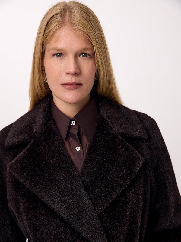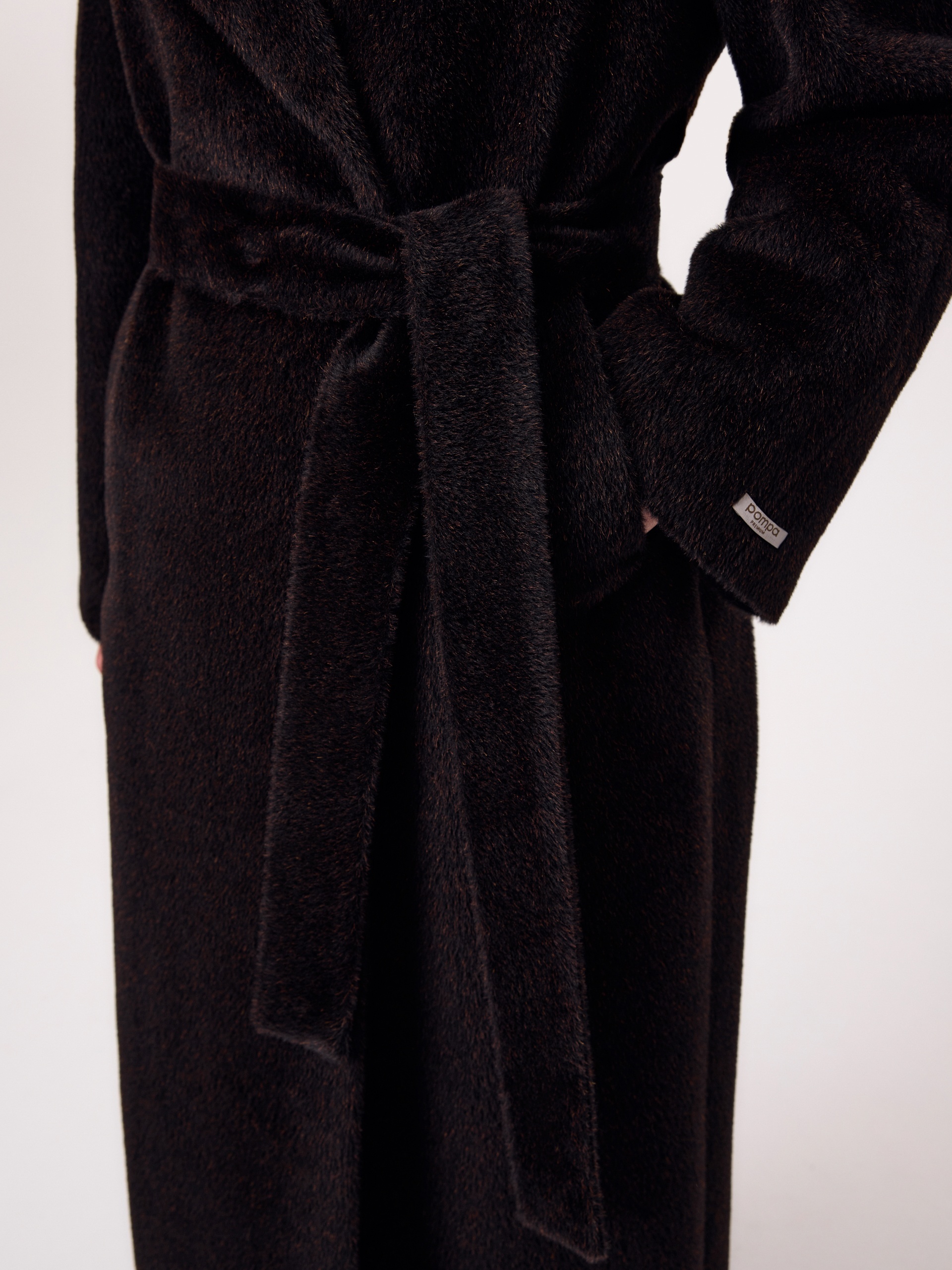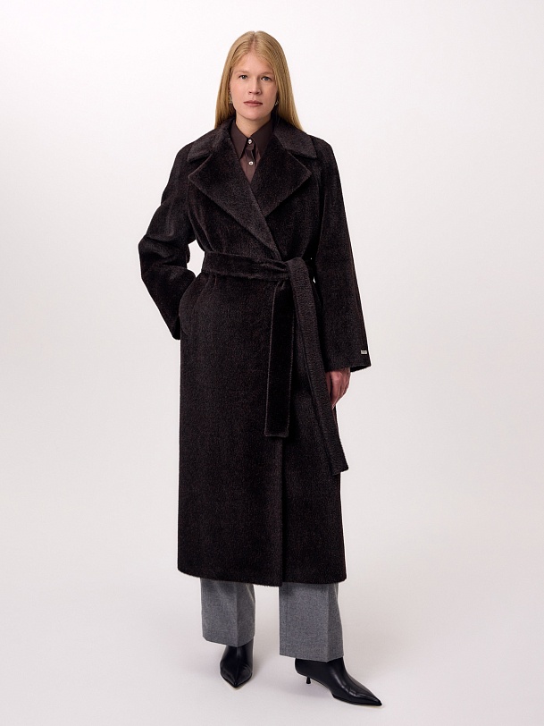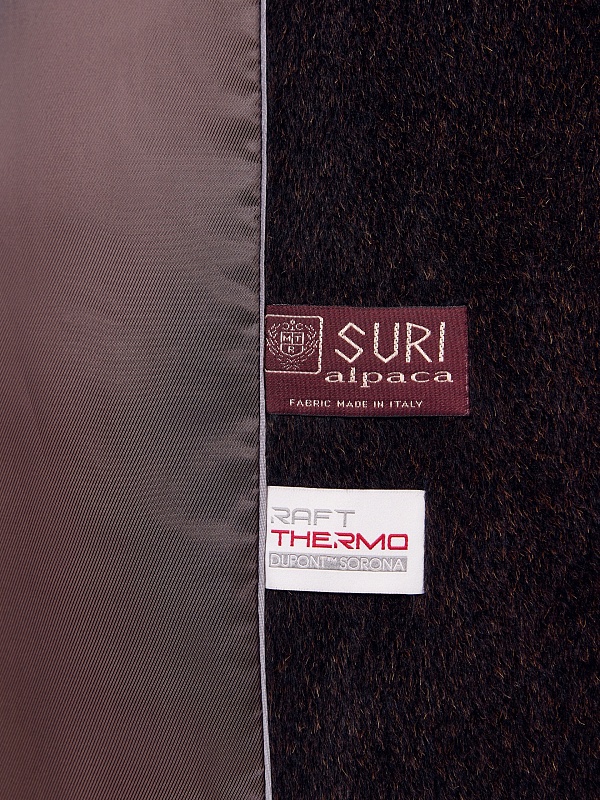 Роскошное двубортное пальто-халат из линейки Pompa Premium из премиальной шерстяной ткани Альпака Бэби Сури, выполненное в трендовом оттенке горький шоколад. Для этой модели была использована ткань высочайшего качества, сотканная из ценных волокон молодой альпаки Сури. Благодаря уникальным свойствам этой ткани сохранять тепло, такое пальто станет прекрасной альтернативой шубе. Модель имеет дополнительное утепление в верхней части спинки, что позволяет сохранять комфортную температуру. Пальто с широким английским воротником, рукавом реглан и карманами - врезные листочки. В комплекте предлагается пояс из основной ткани. Пальто изготовлено с использованием запатентованных технологий: высокотехнологичная мембрана RaftPro и утеплитель DuPont Sorona надежно защищают от ветра, холода и перепада температур. Произведено в Санкт-Петербурге.