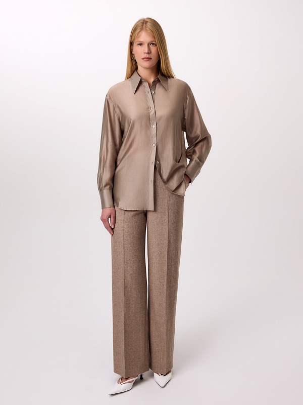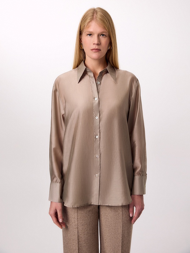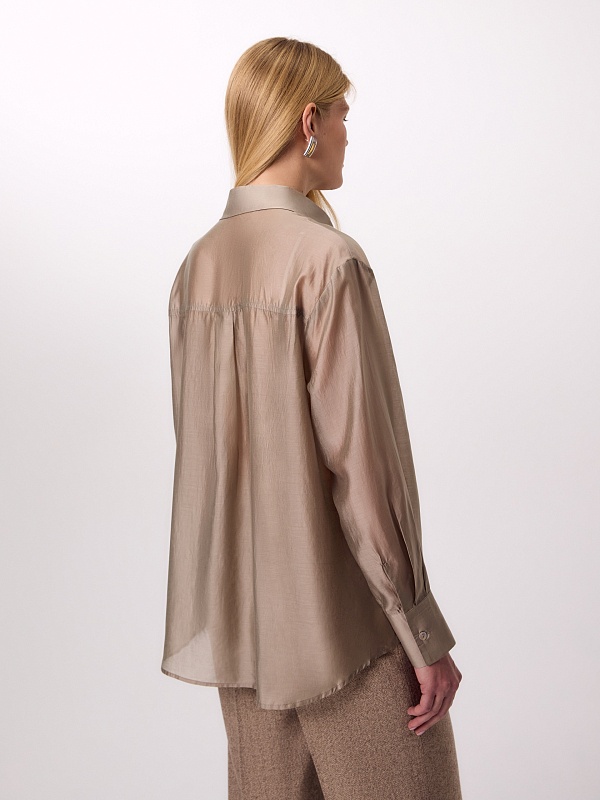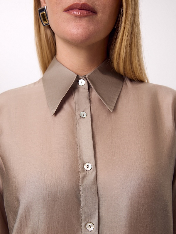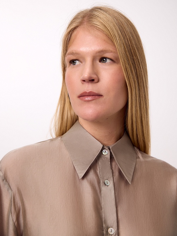 Свободная блуза из лиоцела с легким блеском и трендовым отложным воротником.