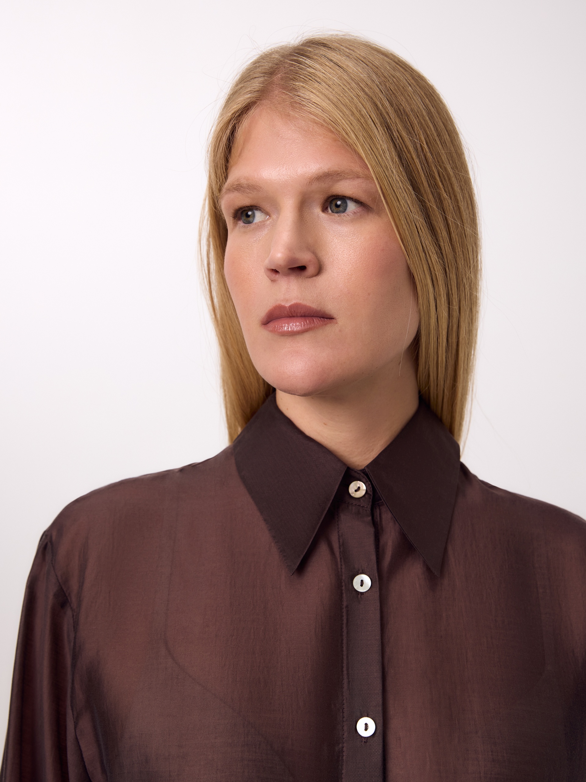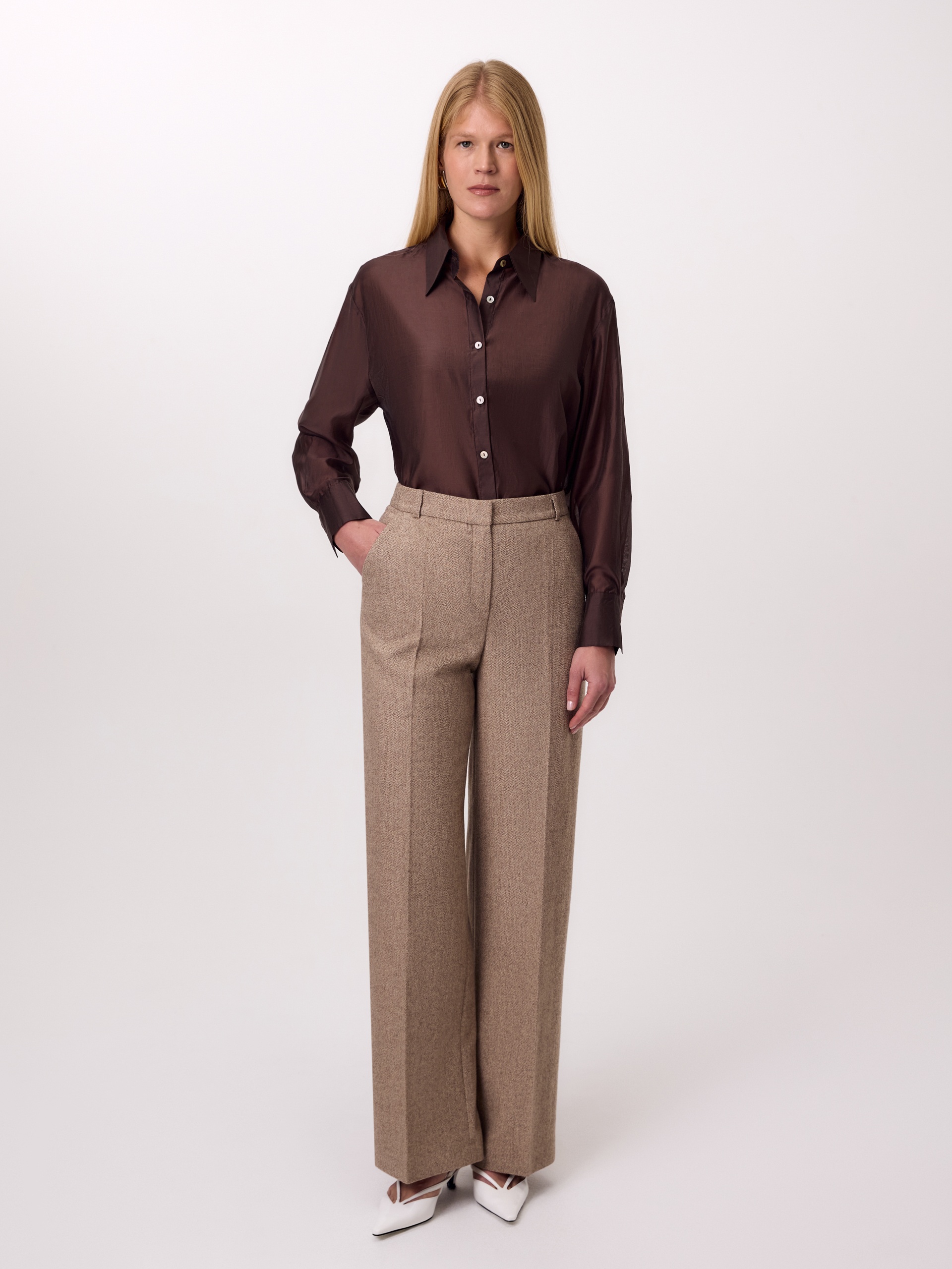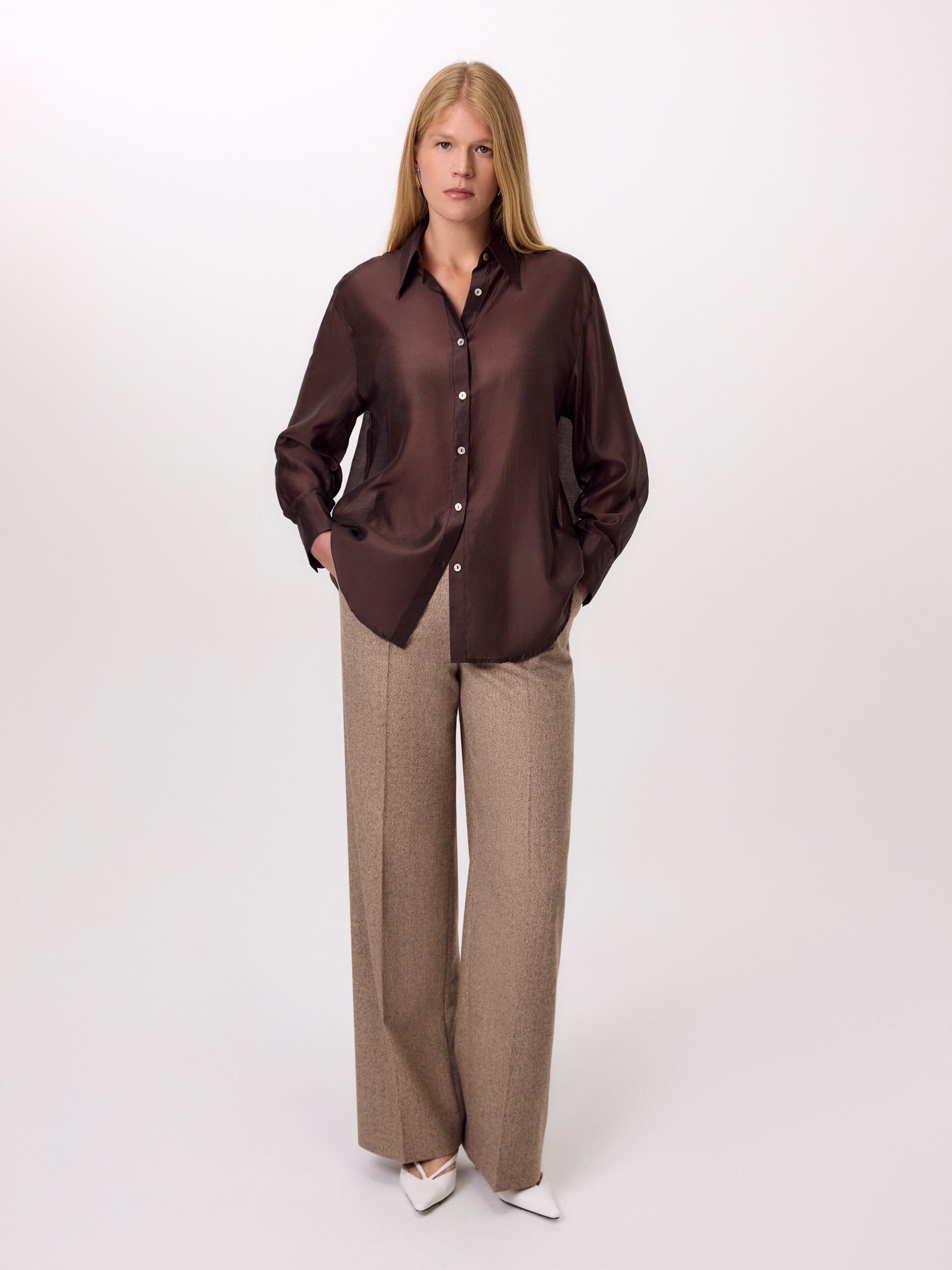 Свободная блуза из лиоцела с легким блеском и трендовым отложным воротником....