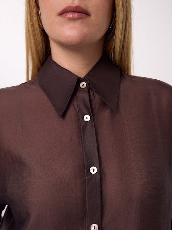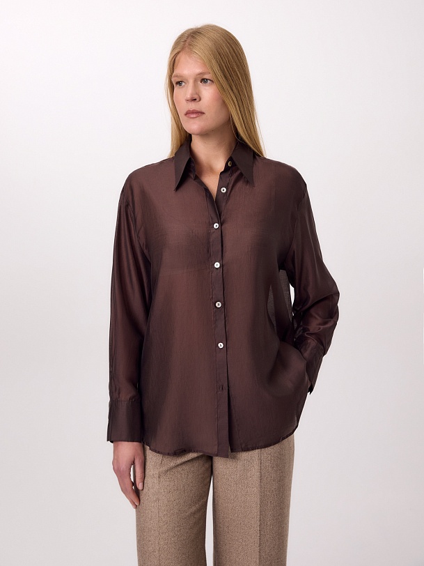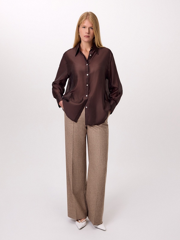 Свободная блуза из лиоцела с легким блеском и трендовым отложным воротником.