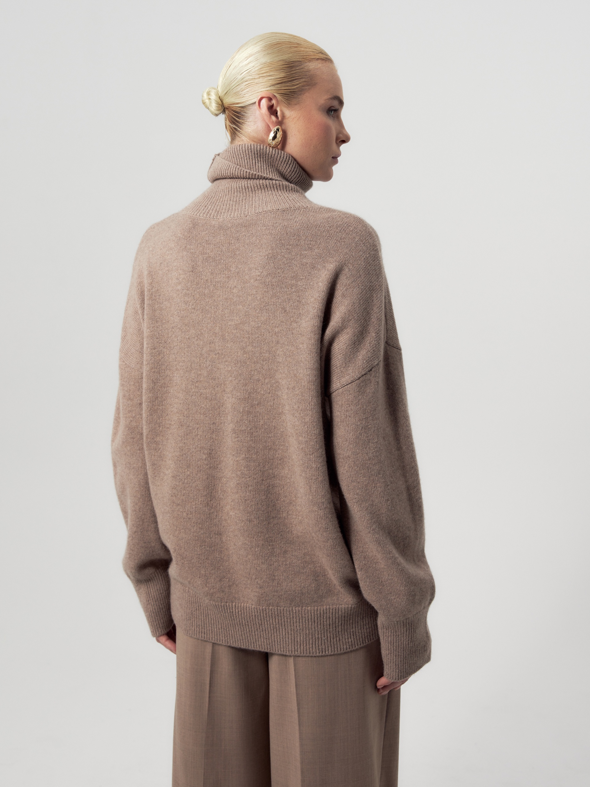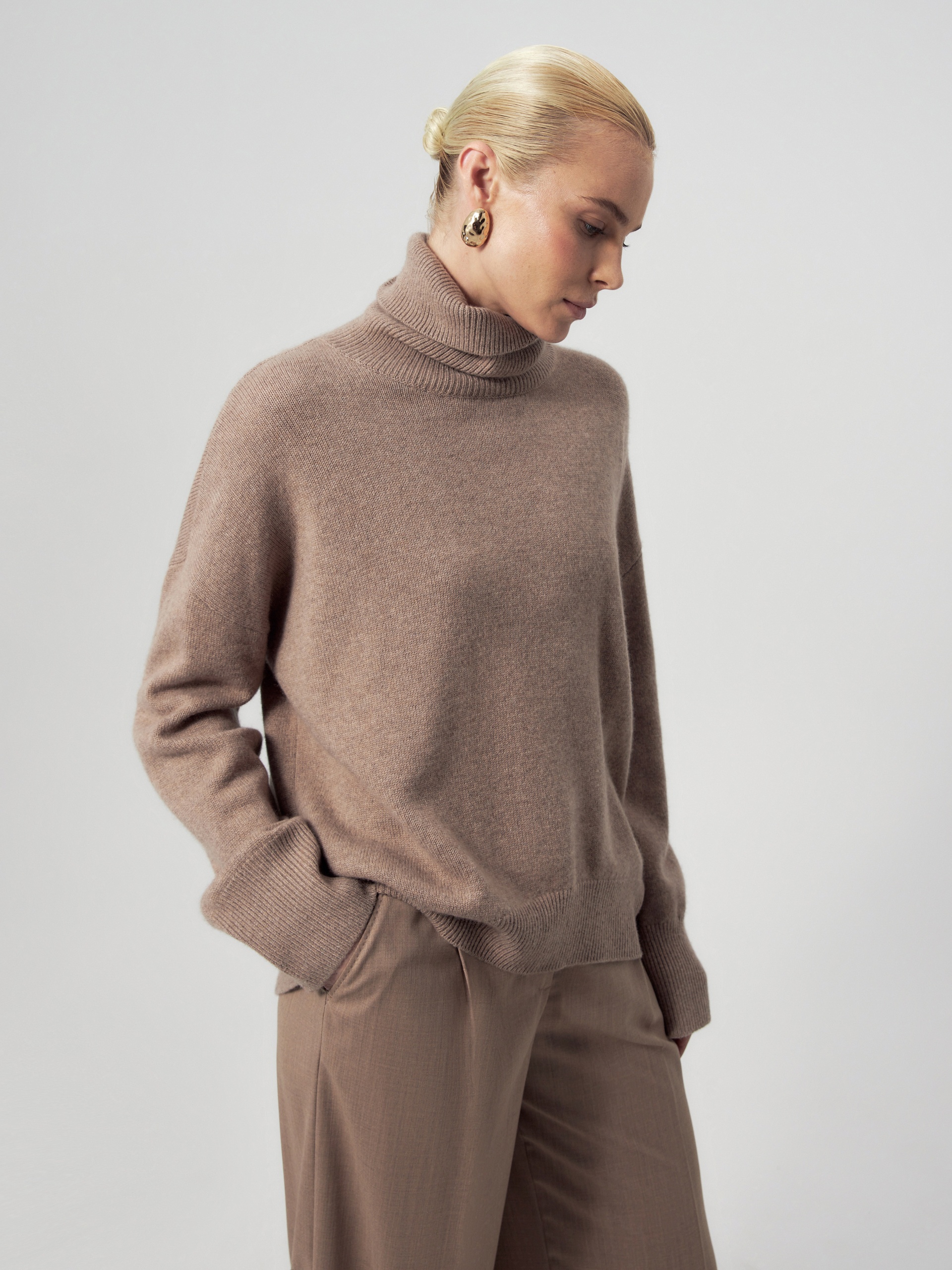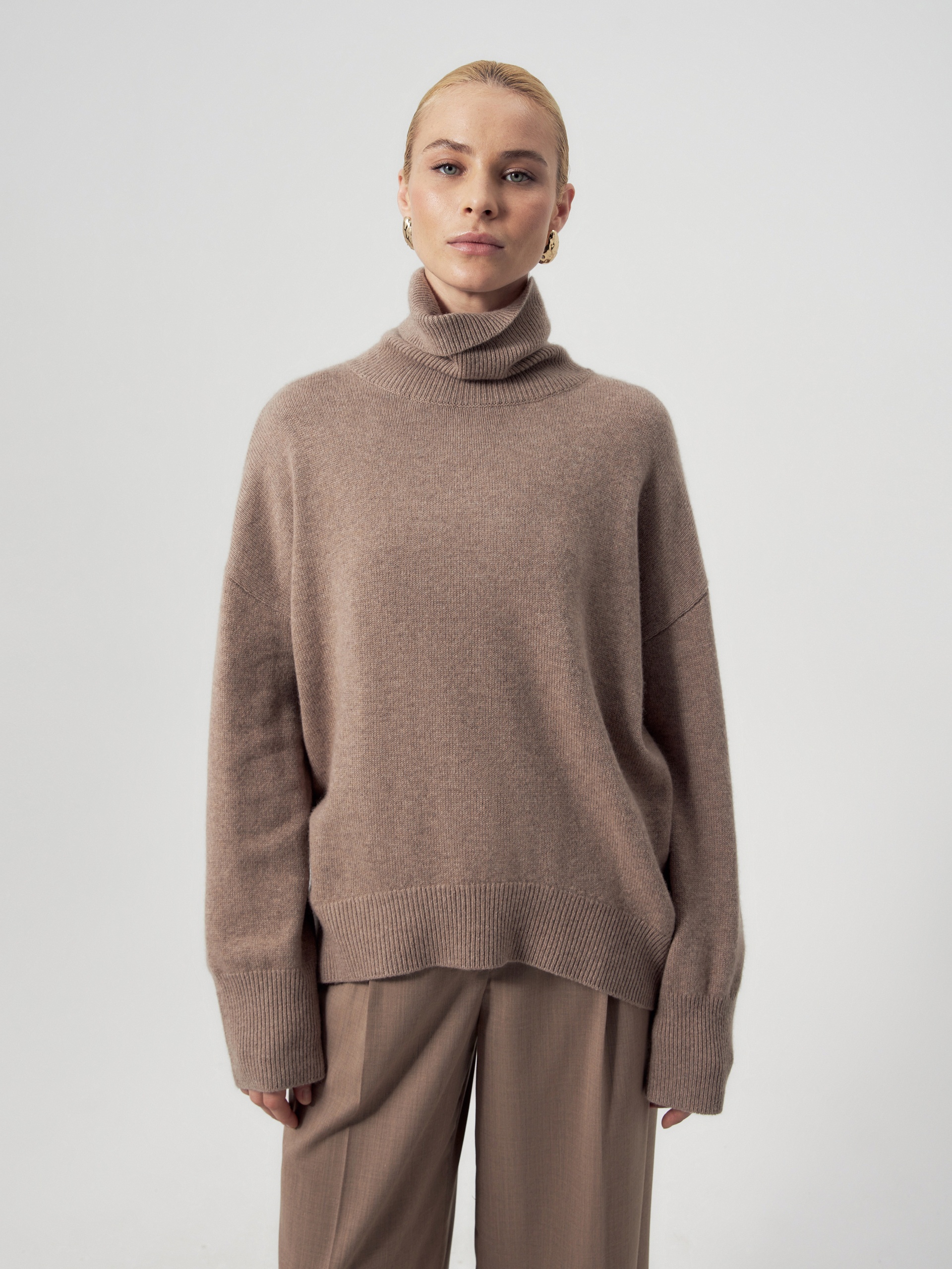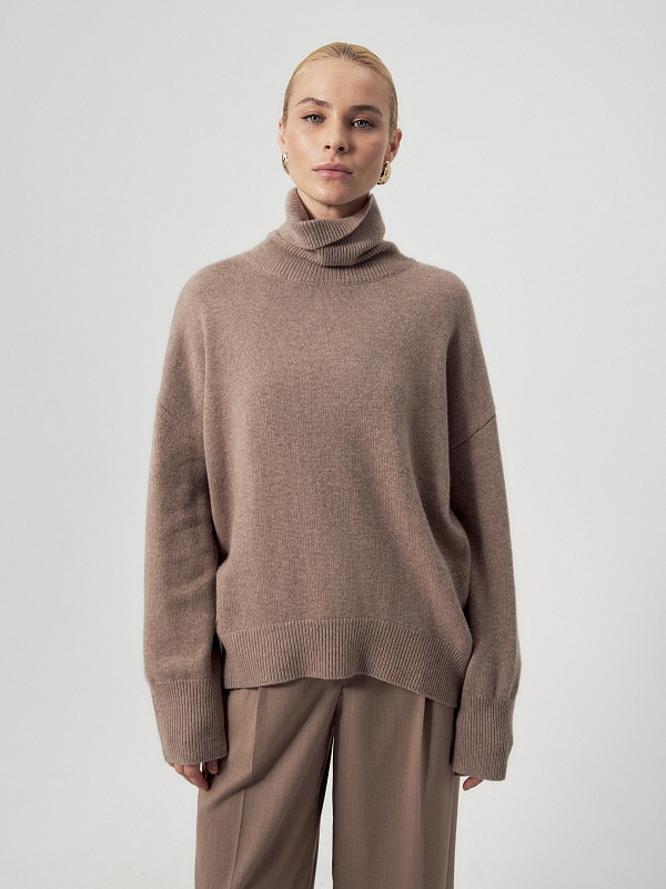 Объемный свитер прямого силуэта из лимитированной линейки POMPA Premium, выполнен из 100% нежнейшего кашемира. Свитер связан гладью, имеет воротник-стойку, спущенный втачной рукав на резинке-манжете и удлиненную сзади линию низа изделия, что особенно важно в холода. Благодаря объемному крою, свитер идеально садится по фигуре и станет незаменимым элементом гардероба, позволяя создавать стильные и уютные образы на каждый день