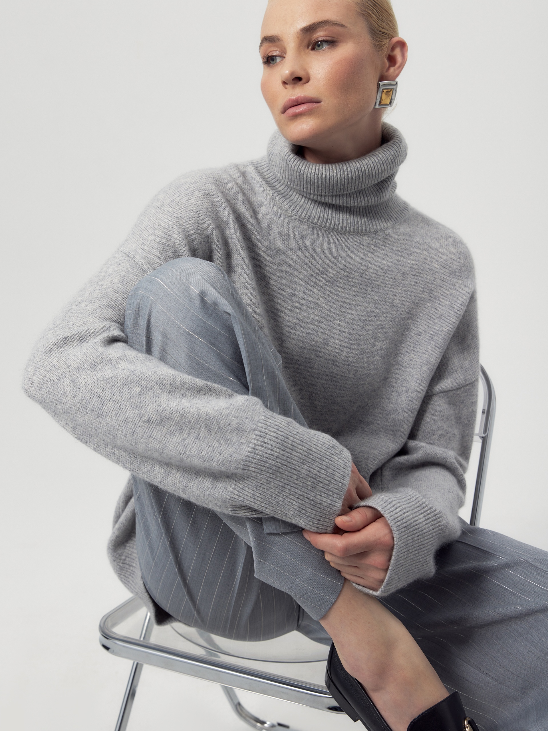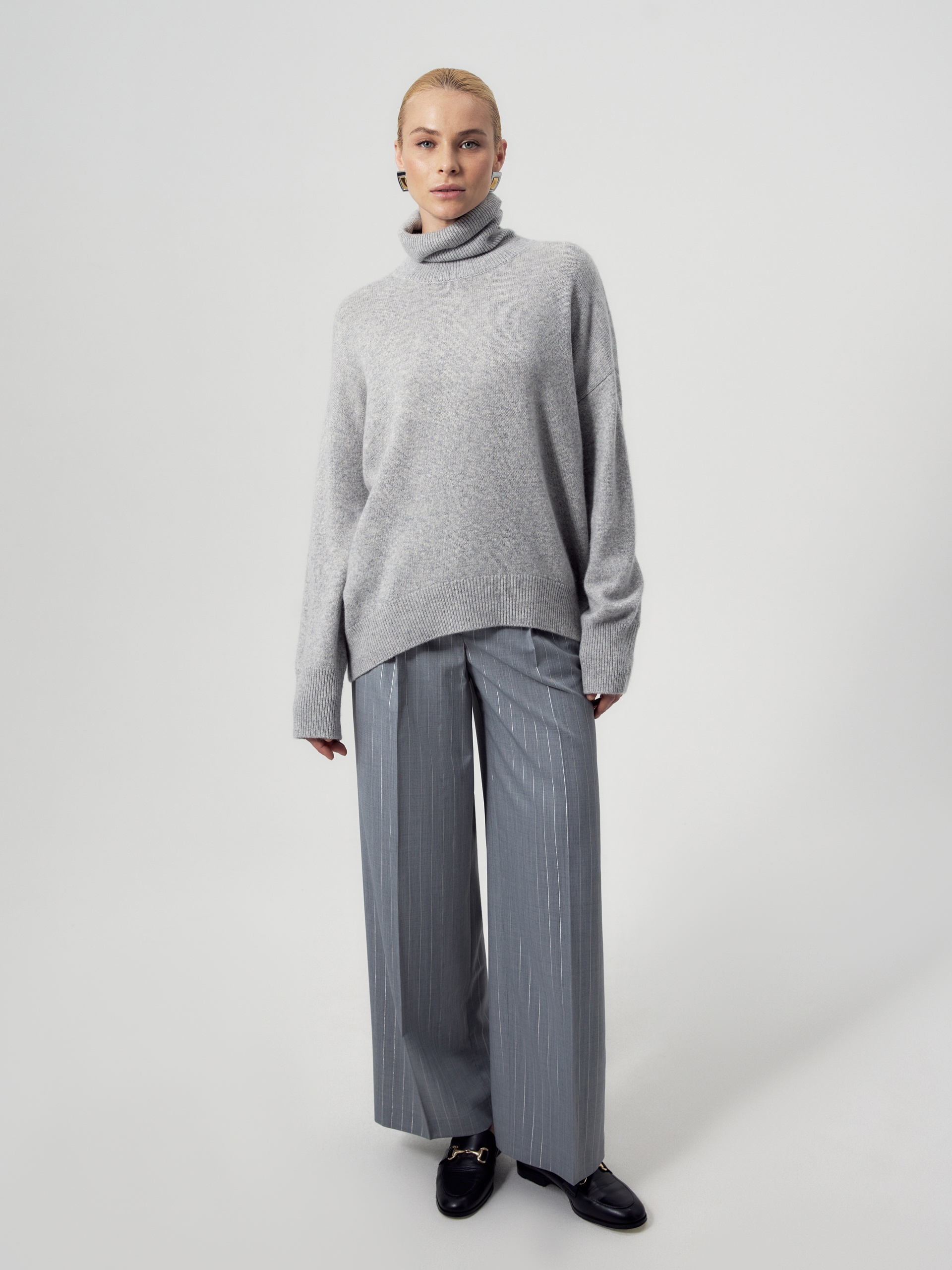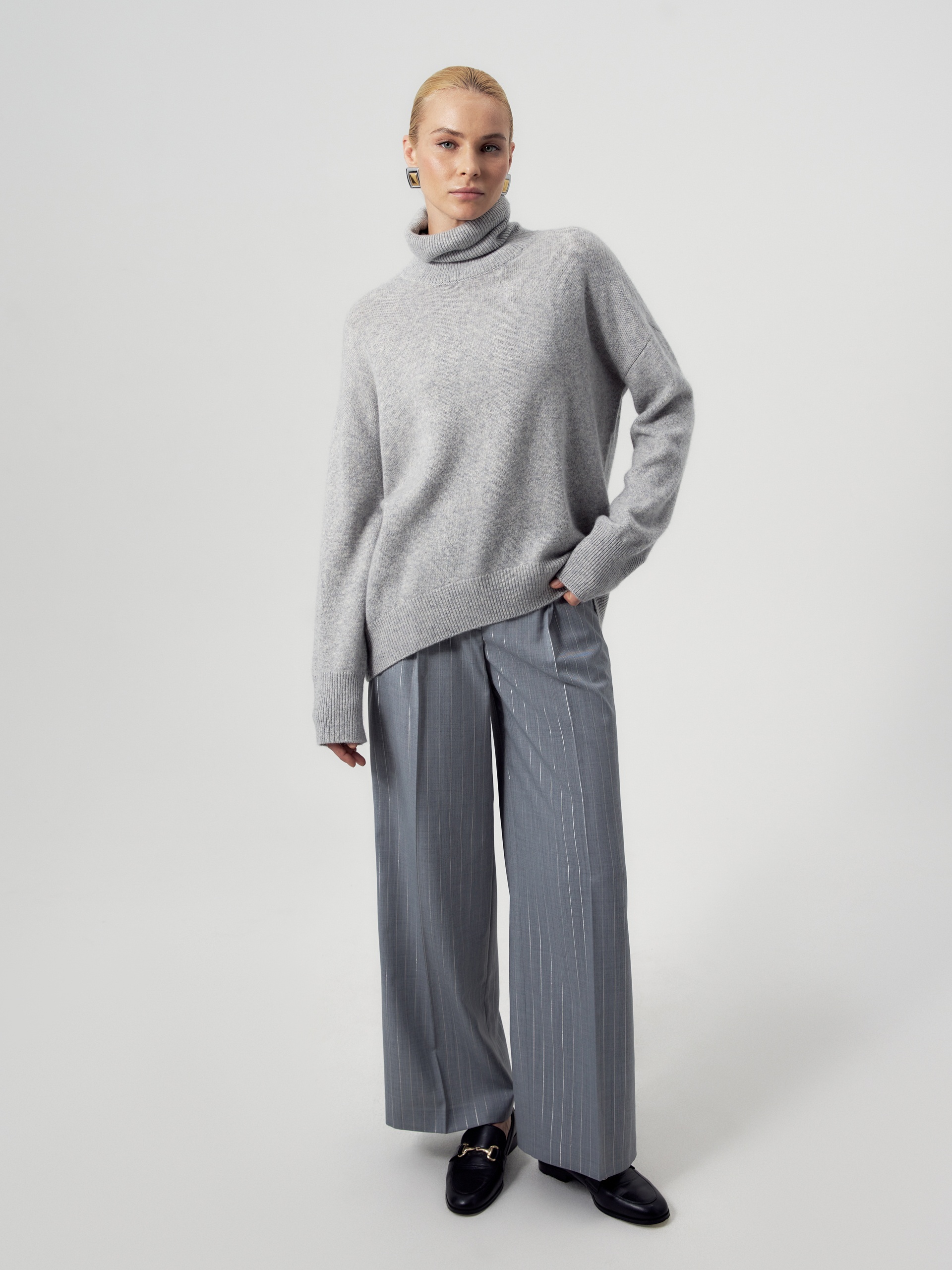 Объемный свитер прямого силуэта из лимитированной линейки POMPA Premium, выполнен из 100% нежнейшего кашемира. Свитер связан гладью, имеет воротник-стойку, спущенный втачной рукав на резинке-манжете и удлиненную сзади линию низа изделия, что особенно важно в холода. Благодаря объемному крою, свитер идеально садится по фигуре и станет незаменимым элементом гардероба, позволяя создавать стильные и уютные образы на каждый день...