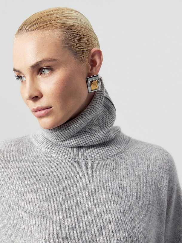 Объемный свитер прямого силуэта из лимитированной линейки POMPA Premium, выполнен из 100% нежнейшего кашемира. Свитер связан гладью, имеет воротник-стойку, спущенный втачной рукав на резинке-манжете и удлиненную сзади линию низа изделия, что особенно важно в холода. Благодаря объемному крою, свитер идеально садится по фигуре и станет незаменимым элементом гардероба, позволяя создавать стильные и уютные образы на каждый день