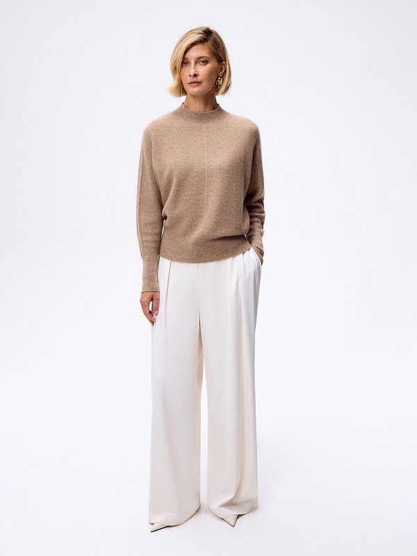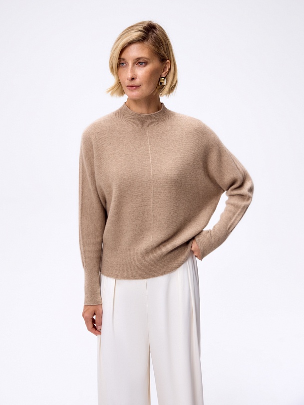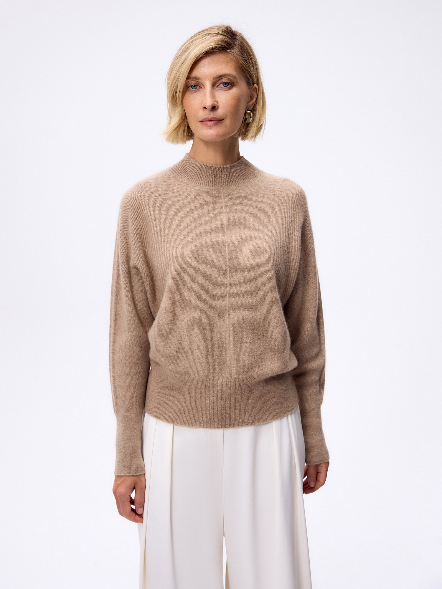 Женственный джемпер с цельнокроенным рукавом и широкой резинкой по талии, из лимитированной линейки POMPA Premium, выполнен из 100% нежнейшего кашемира. Пряжу произвели из густого подшерстка горных коз, поэтому модель почти не ощущается на теле, сохраняет тепло, но при этом в джемпере не будет жарко. На полочке у модели вертикальный подрез, визуально вытягивающий фигуру, а объемные рукава завершены широкими манжетами. Утонченный бежевый цвет и универсальность этого джемпера позволят Вам создать галерею образов.