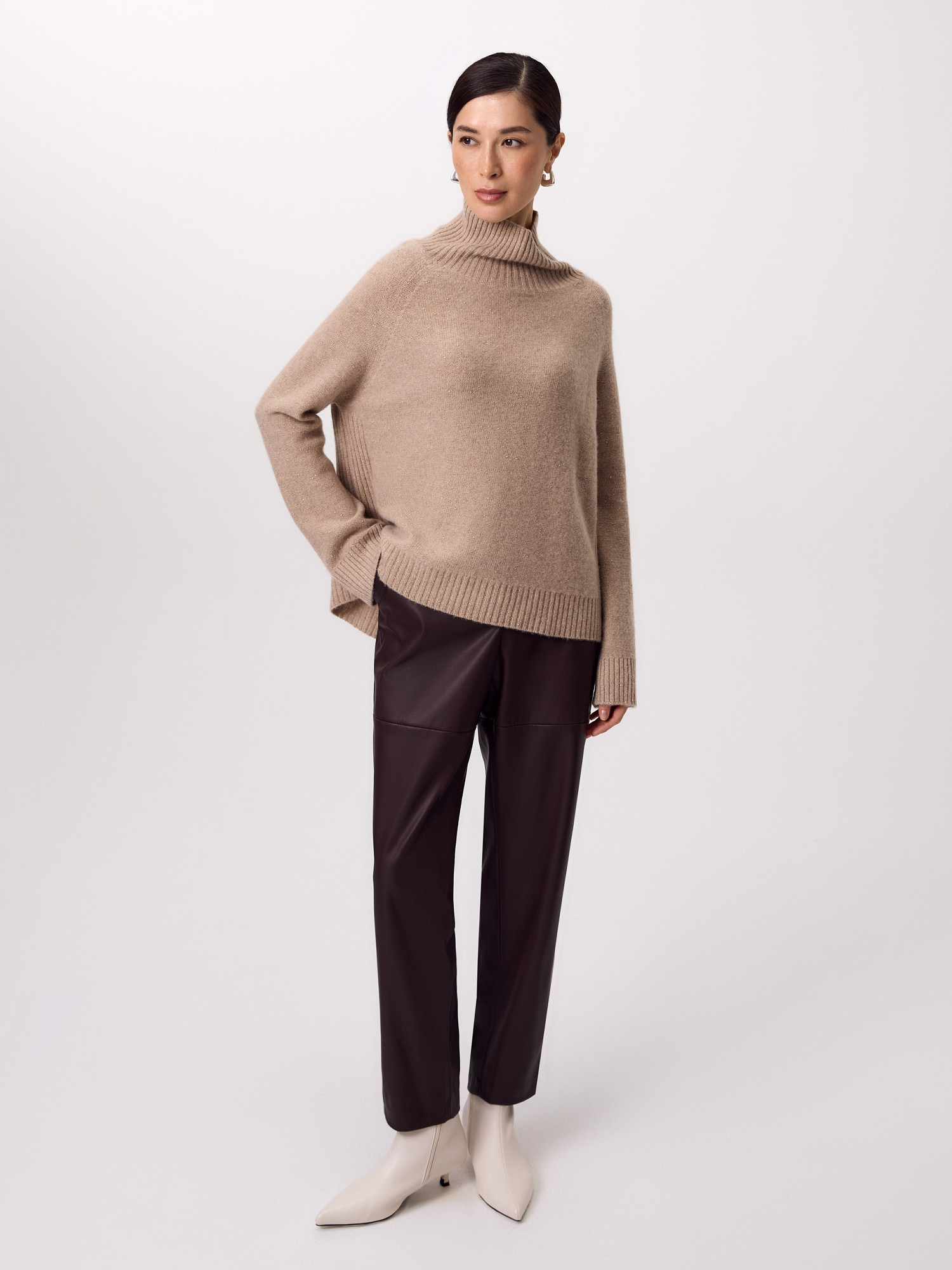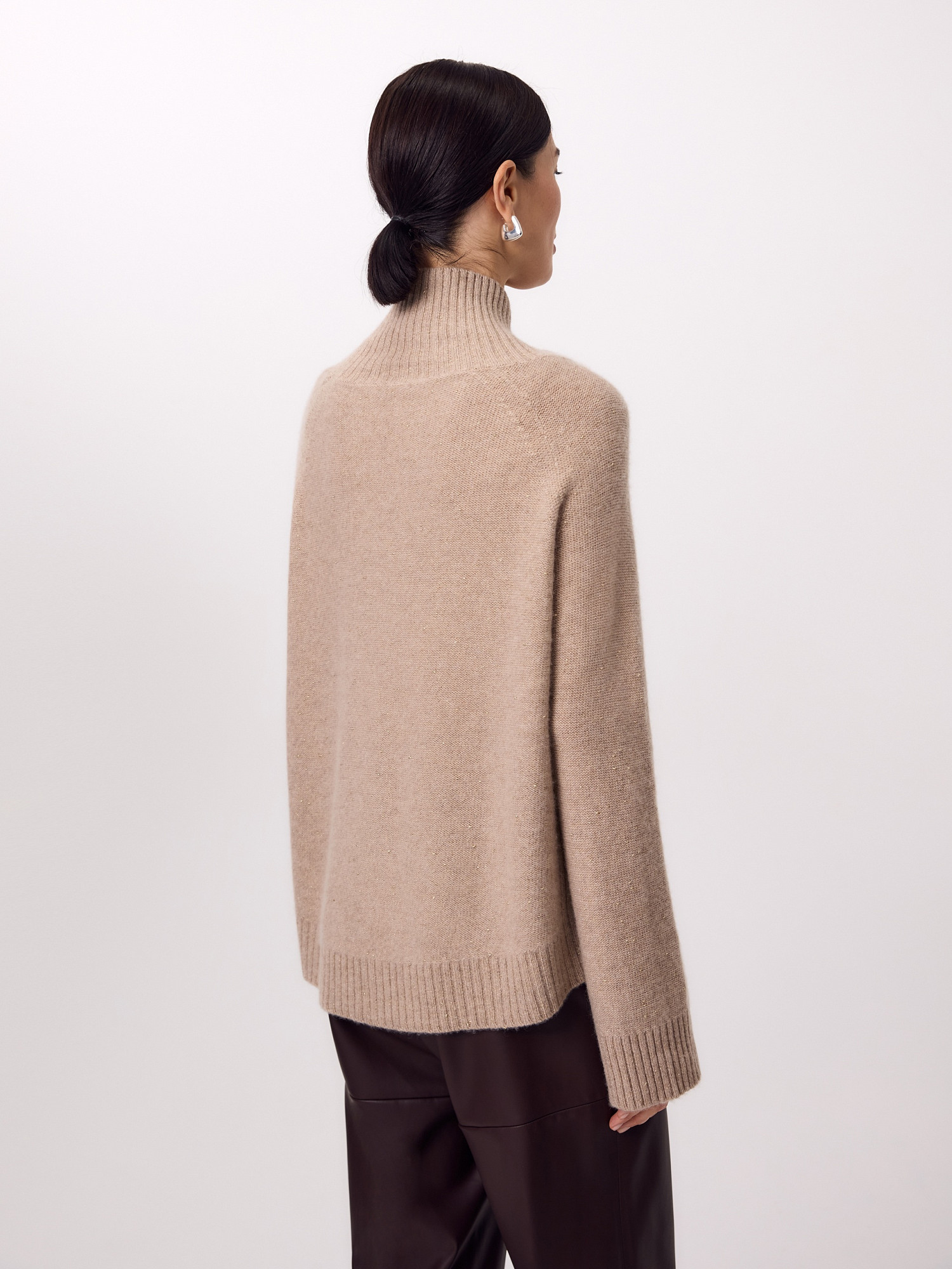 Объемный свитер прямого силуэта из лимитированной линейки POMPA Premium, выполнен из уникальной пряжи 100% нежнейшего кашемира с золотыми вкраплениями люрекса . Свитер имеет воротник-стойку и рукав реглан на манжете. Благодаря объемному крою свитер идеально садится по фигуре и станет незаменимым элементом гардероба, позволяя создавать стильные и уютные образы на каждый день