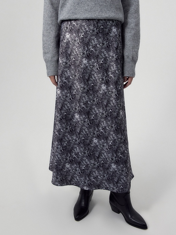 Юбка макси из принтованной ткани на резинке, юбка раскроена по косой для формирования мягких складок по низу. Незаменимая вещь в гардеробе любой женщины.