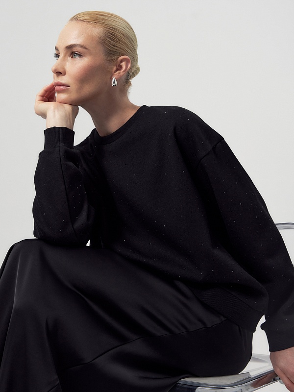Свитшот из вискозы со стразами
