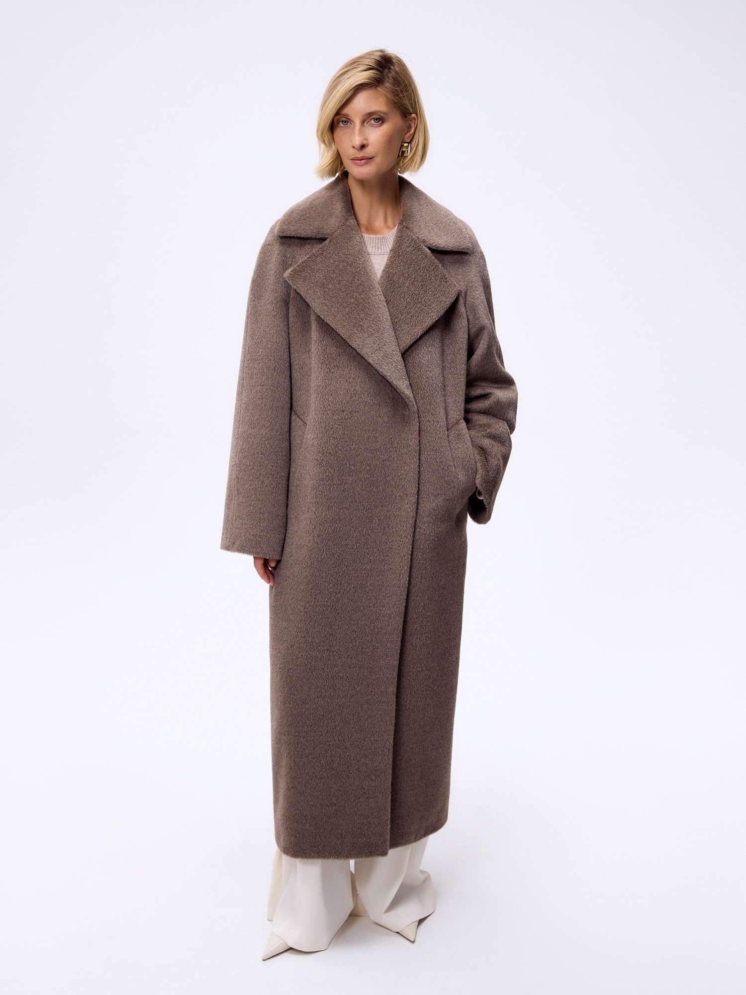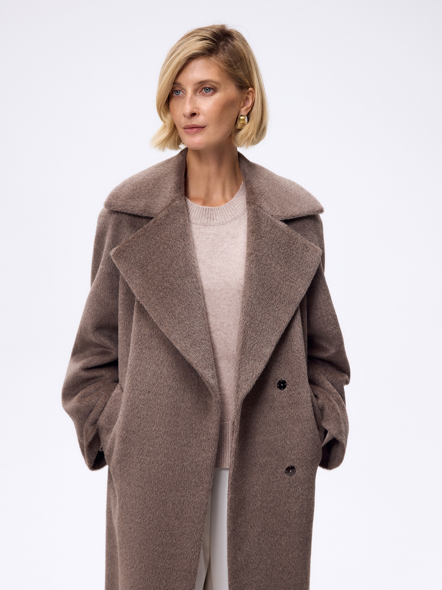 Роскошное двубортное пальто-халат из линейки Pompa Premium из премиальной шерстяной ткани Альпака Бэби Сури, выполненное в трендовом оттенке горький шоколад. Для этой модели была использована ткань высочайшего качества, сотканная из ценных волокон молодой Альпаки Сури. Благодаря уникальным свойствам этой ткани сохранять тепло, такое пальто станет прекрасной альтернативой шубе. Модель имеет дополнительное утепление в верхней части спинки, что позволяет сохранять комфортную температуру. Пальто с широким английским воротником, рукавом реглан и карманами - врезные листочки. В комплекте предлагается пояс из основной ткани. Пальто изготовлено с использованием запатентованных технологий: высокотехнологичная мембрана RaftPro и утеплитель DuPont Sorona надежно защищают от ветра, холода и перепада температур. Произведено в Санкт-Петербурге.