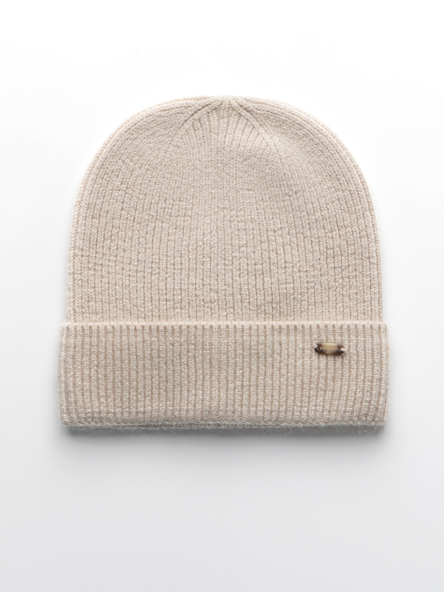 Шапка фактурной вязки из теплой и мягкой пряжи. Шапка имеет модную форму «бини» и отворот для дополнительного тепла. Изделие подойдет на любой размер. Шапка выполнена в цвете молочный меланж.