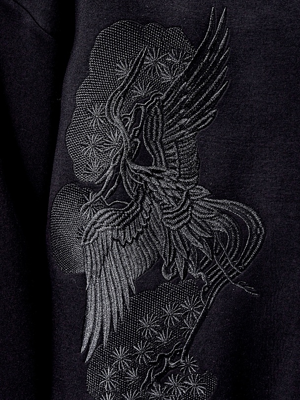 Эффектный и мягкий трикотажный джемпер свободного кроя с круглой горловиной и приспущенной линией рукава. Украшен вышивкой в китайском стиле, подобранной в тон ткани.