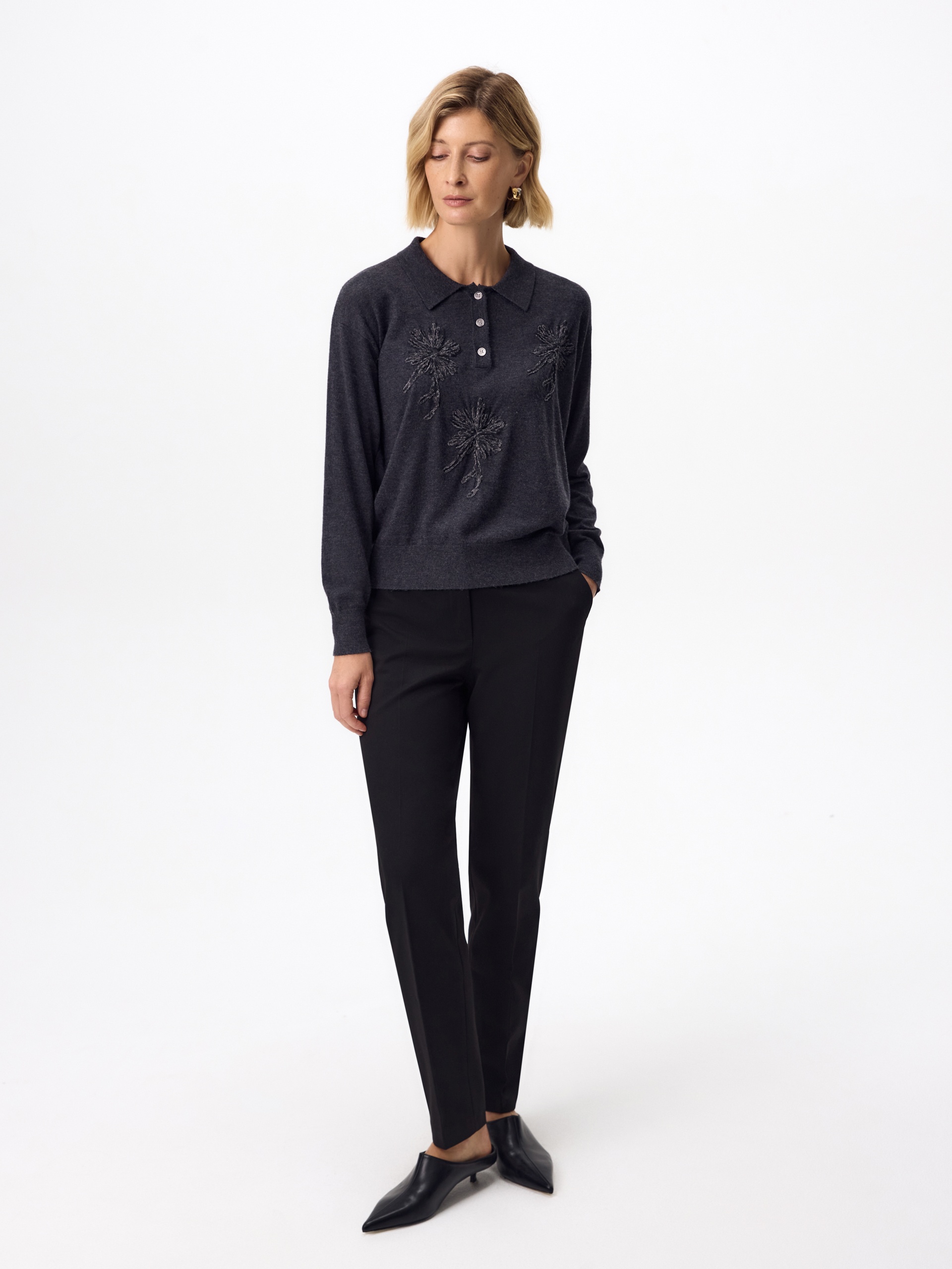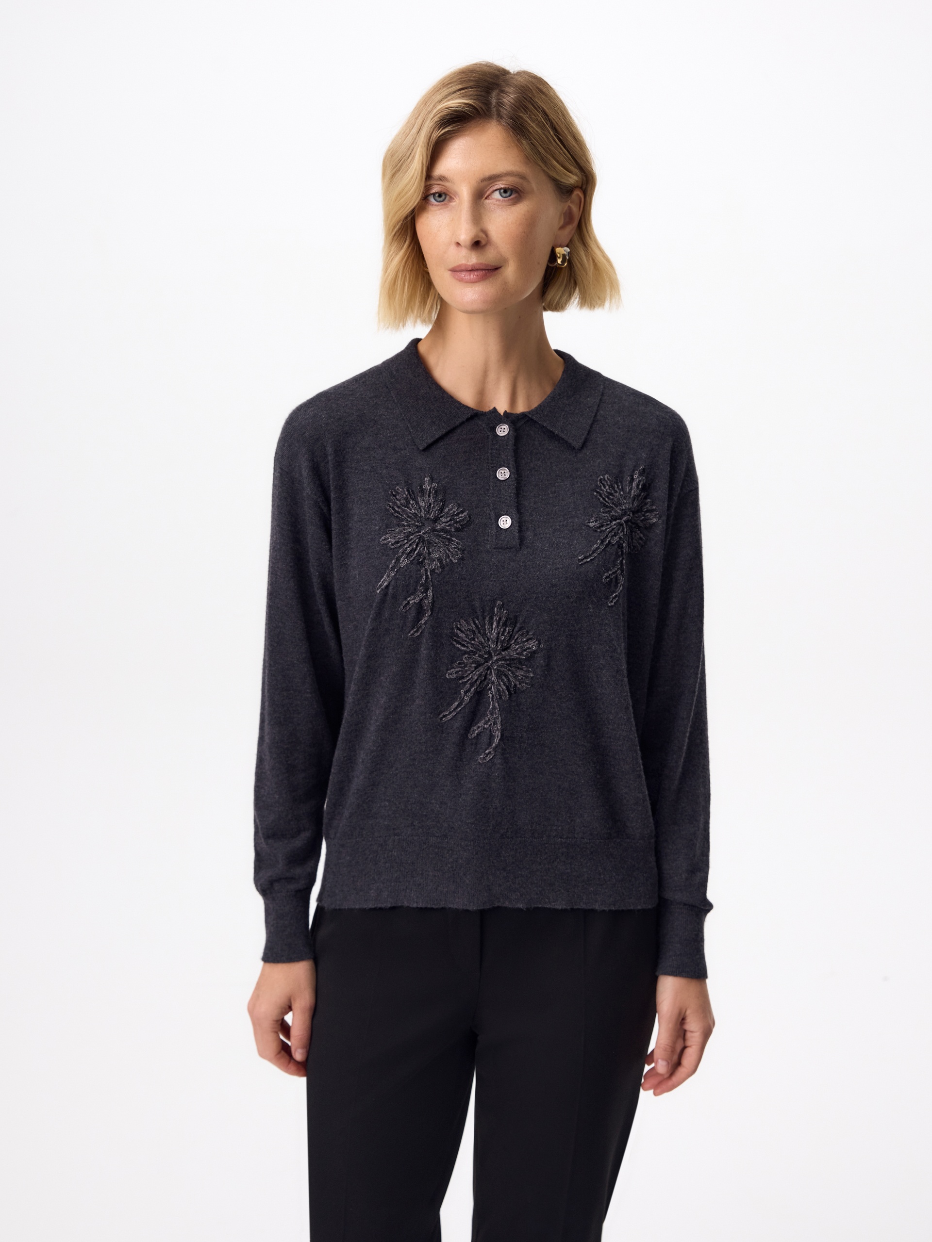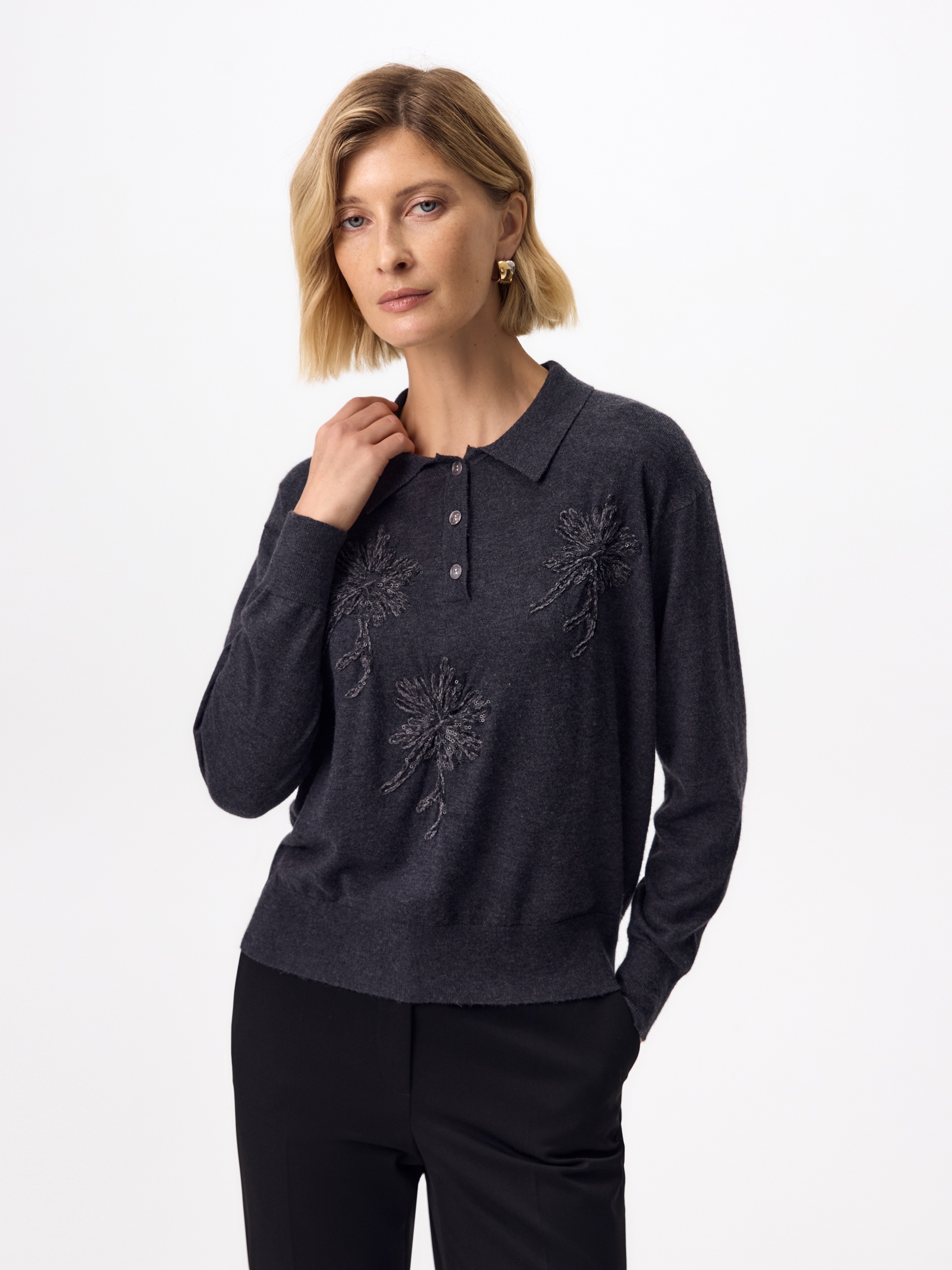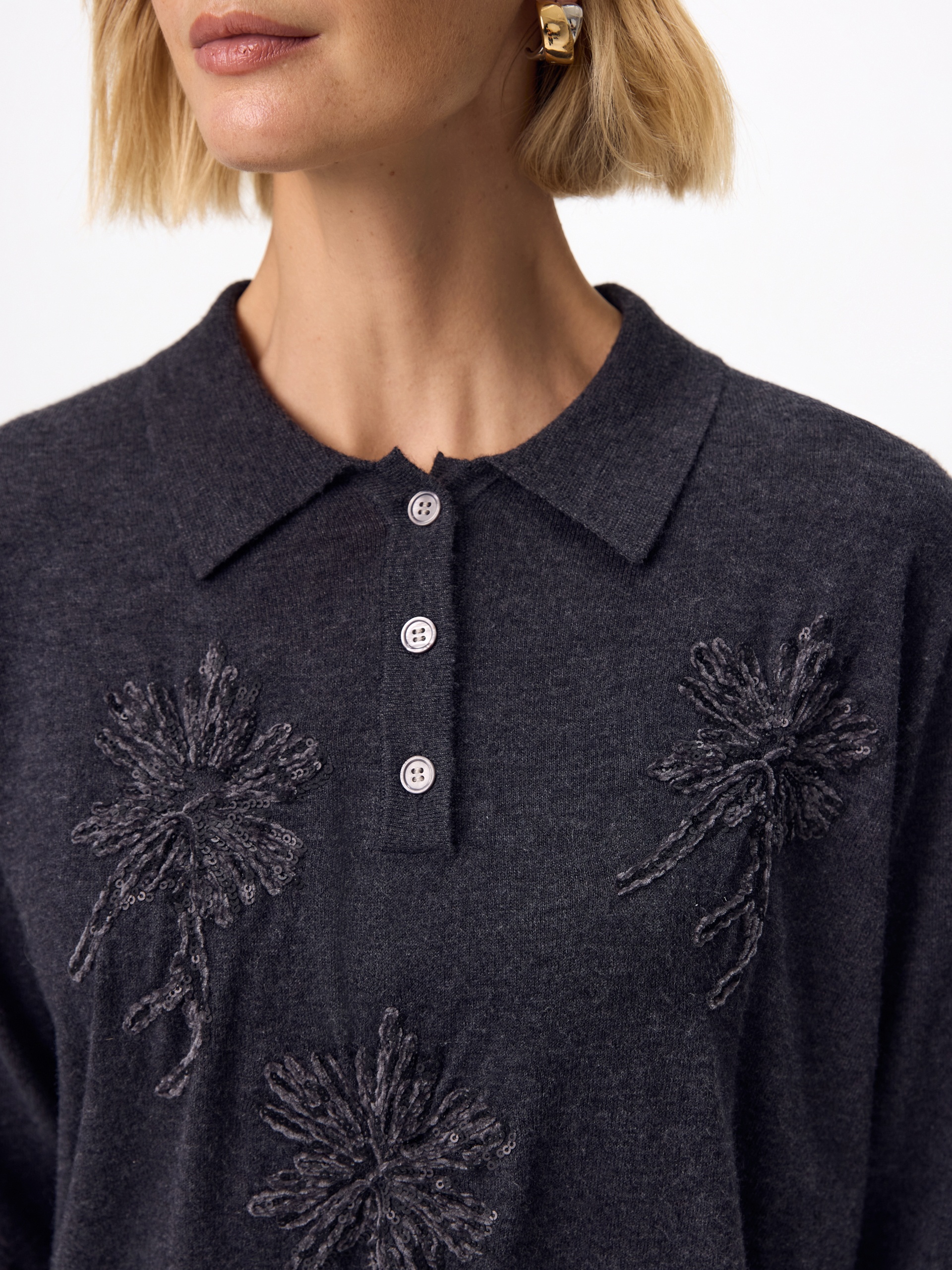 Джемпер-поло из шерсти с вискозой и вышивкой