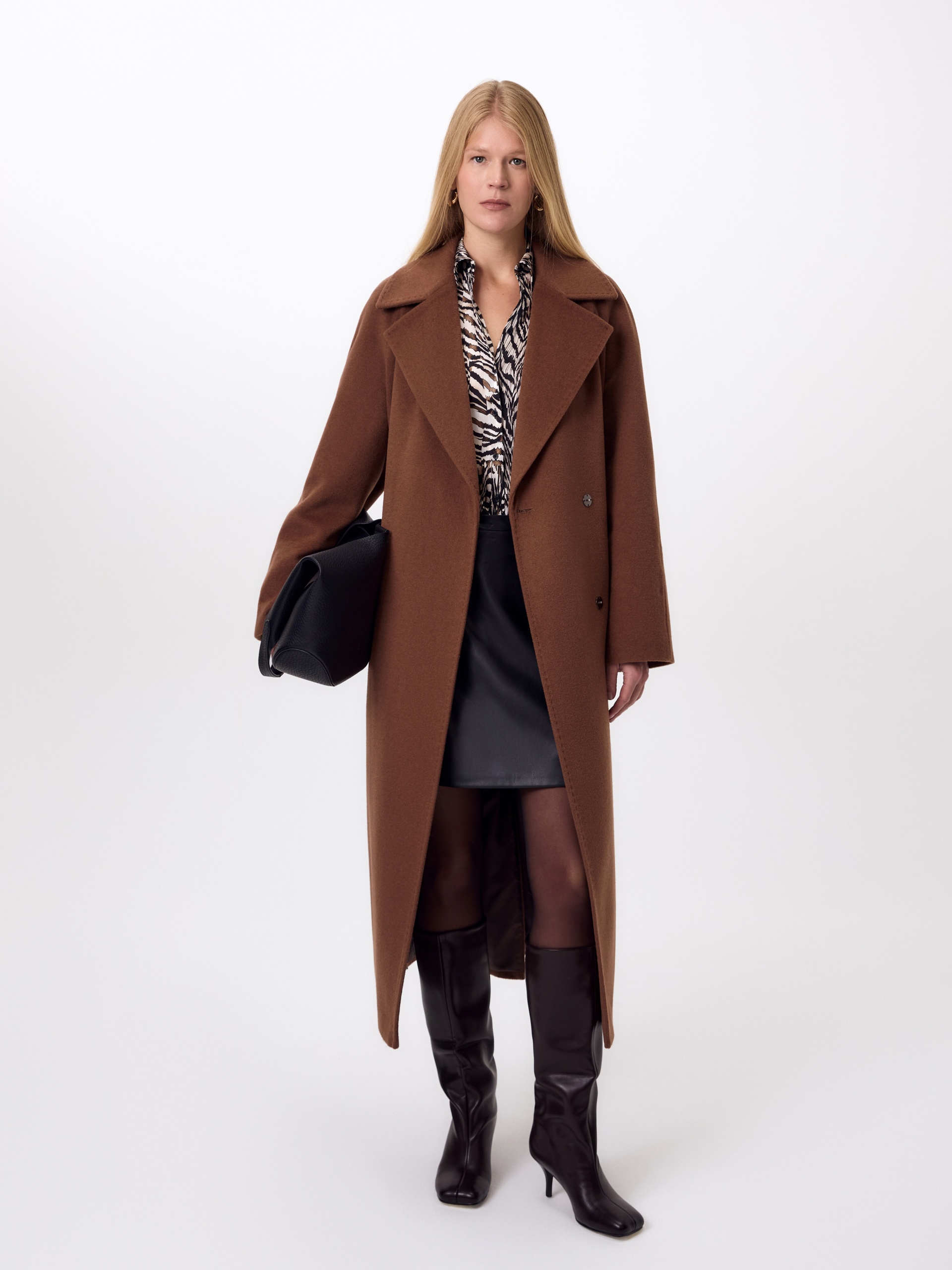 Пальто-халат из шерсти с декоративной ручной отстрочкой