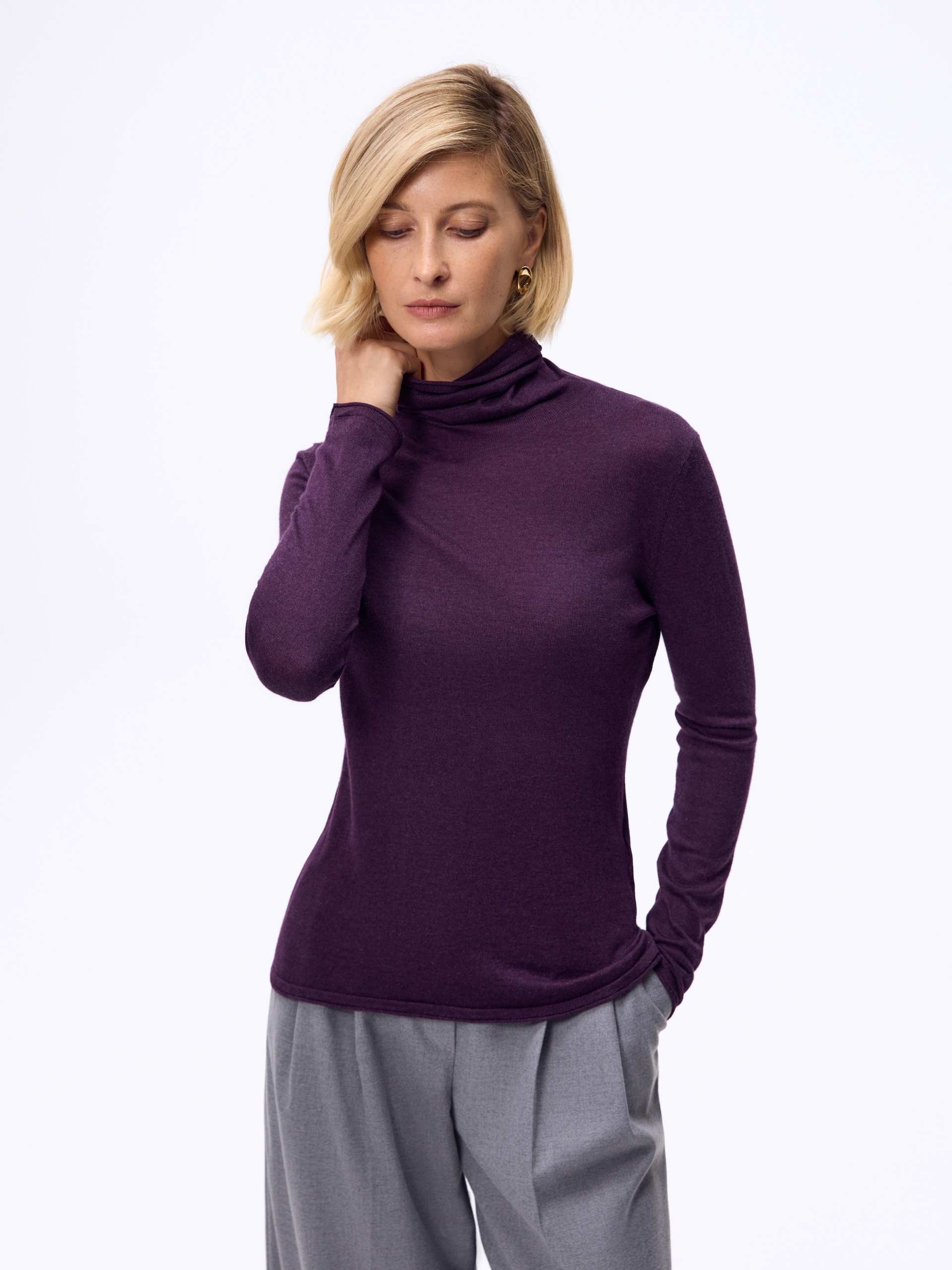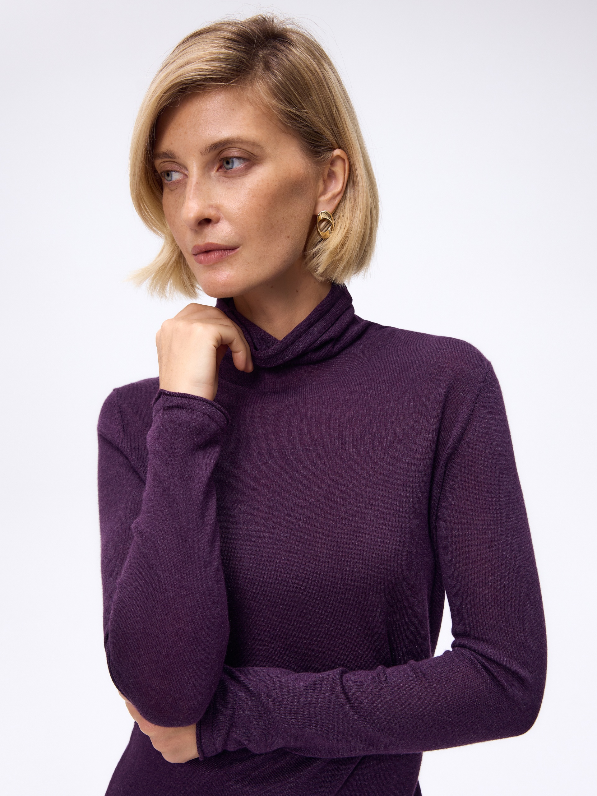 Легкая водолазка полуприлегающего силуэта из невесомого кашемира достаточно тонкая, чтобы носить ее под пиджак или пальто в качестве второго слоя. Невесомая пряжа из вычесанного вручную пуха горных коз согревает лучше овечьей шерсти. Такой трикотаж хорошо держит форму, вязанный в одну нить, он остается плотным и пластичным. Модель с цельновязанной стойкой, втачным рукавом и резинкой по линии низа и низу рукава останется фаворитом в Вашем гардеробе не на один сезон.
