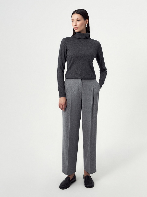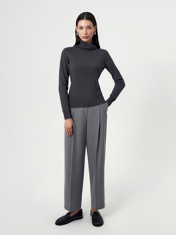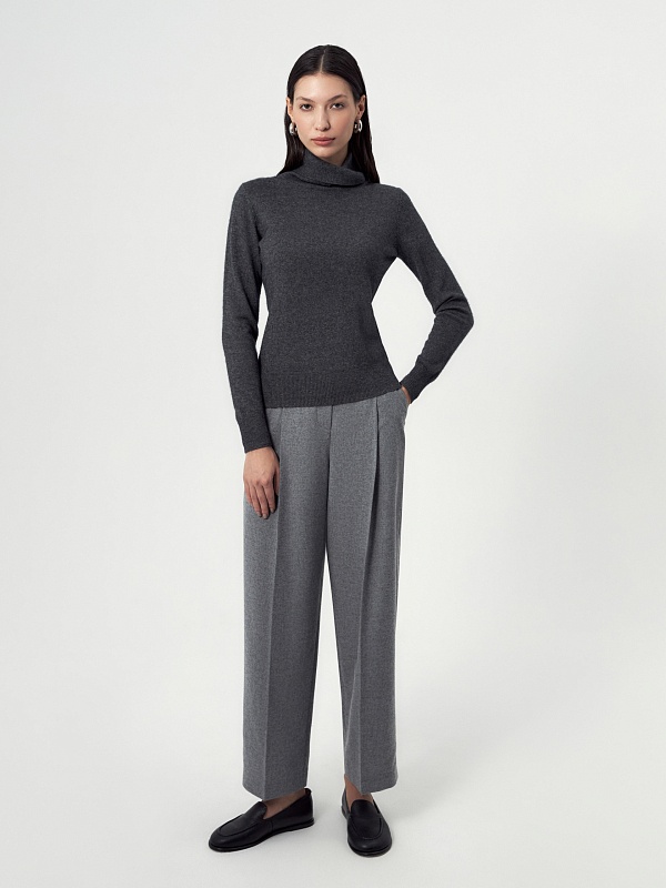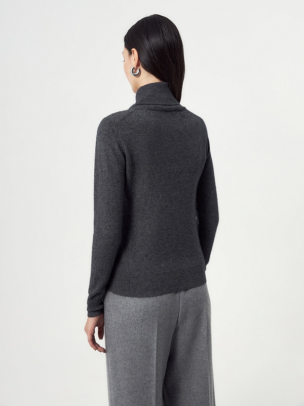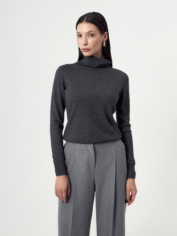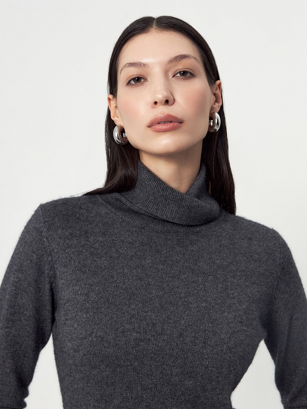 Уютный кашемировый свитер с высоким воротником-стойкой и классическим втачным рукавом.