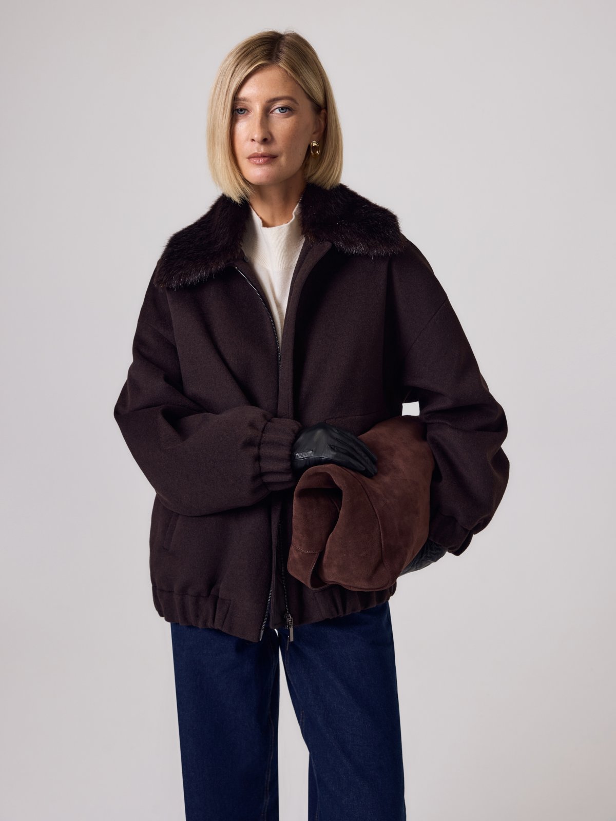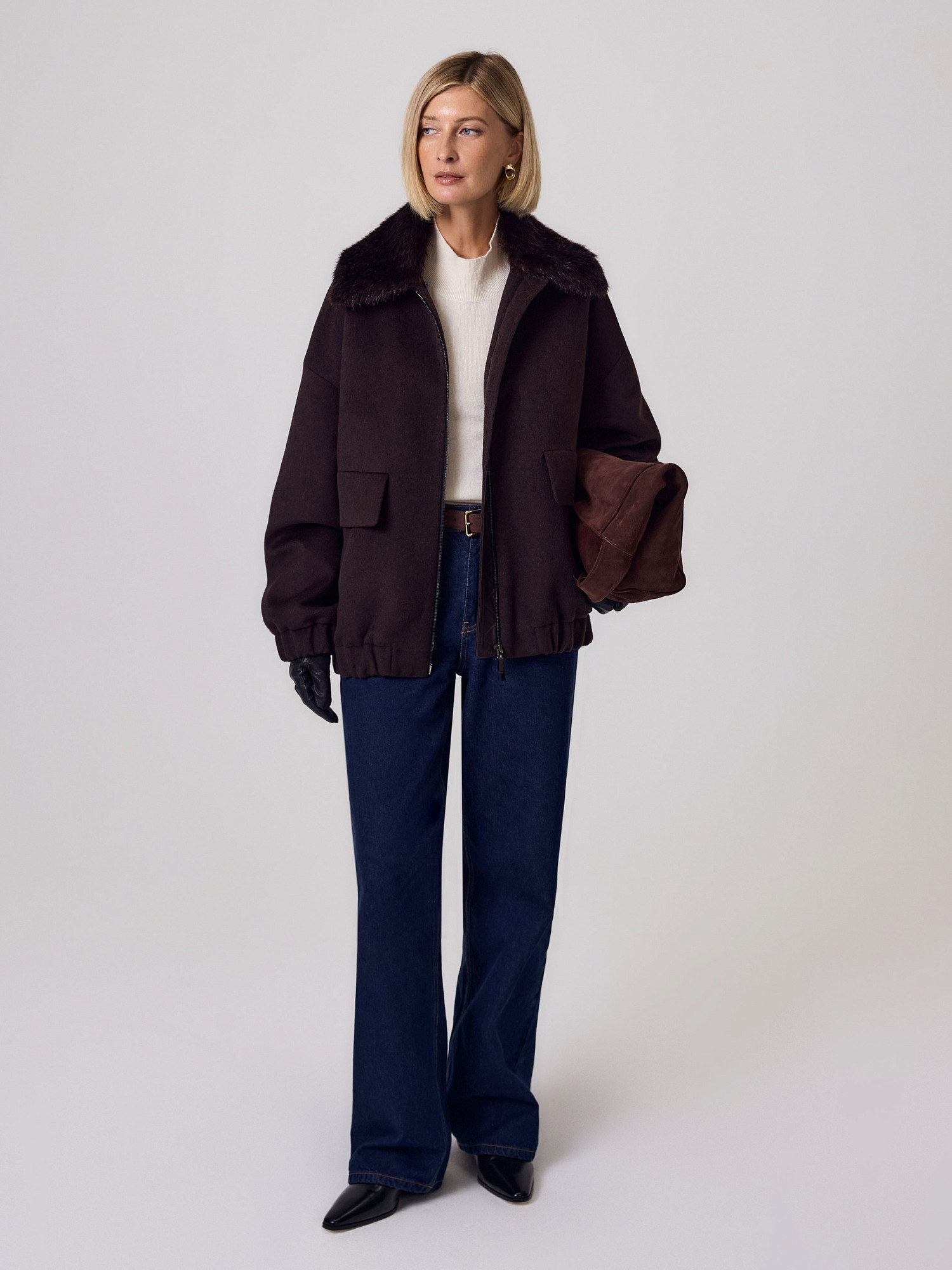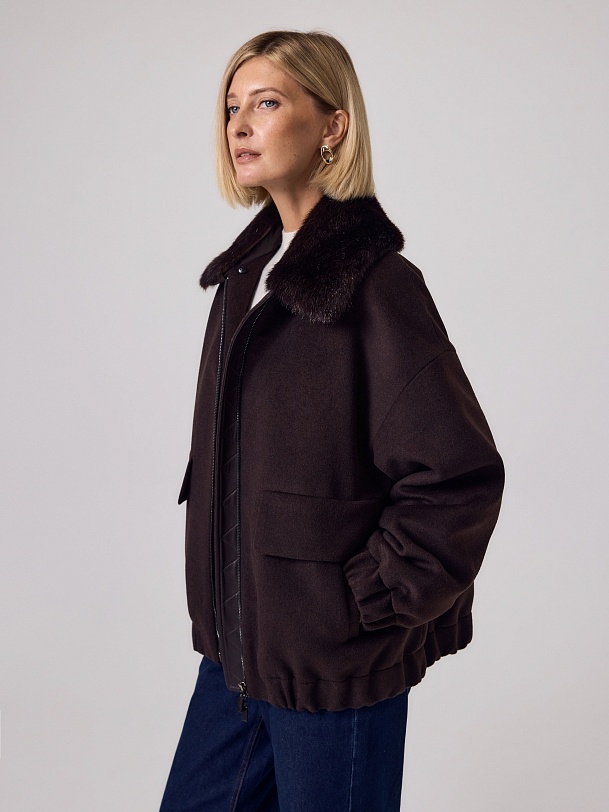 Лаконичная куртка-бомбер из премиальной шерстяной ткани с высоким содержанием натуральной шерсти 80% цвета горький шоколад. Свободный рубашечный рукав не стесняет движений. Низ рукава и низ изделия для наибольшего комфорта собраны на широкую резинку. Куртка имеет аккуратный отложной воротник и вместительные карманы с широкими клапанами. Отражая модные тенденции на эко-мех, мы отделали бомбер съемным воротником из искусственной норки. Застёжка на двухзамковую молнию. А для наилучшей защиты от непогоды изделие выполнено с использованием высокотехнологичной мембраны RaftPro и инновационного утеплителя DuPont Sorona. Произведено в Санкт-Петербурге.