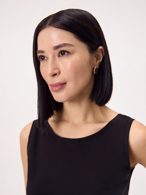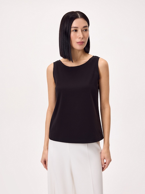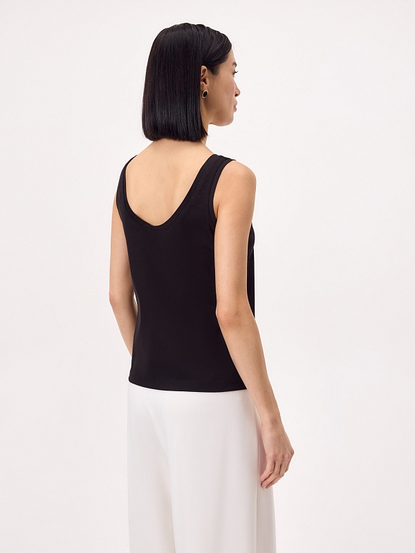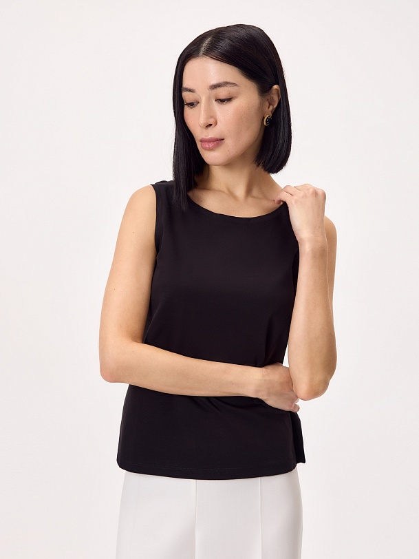 Идеальная черная майка - из тех вещей, без которых не обходится ни один базовый гардероб. Оптимальная длина позволяет носить майку как заправленной, так и на выпуск.