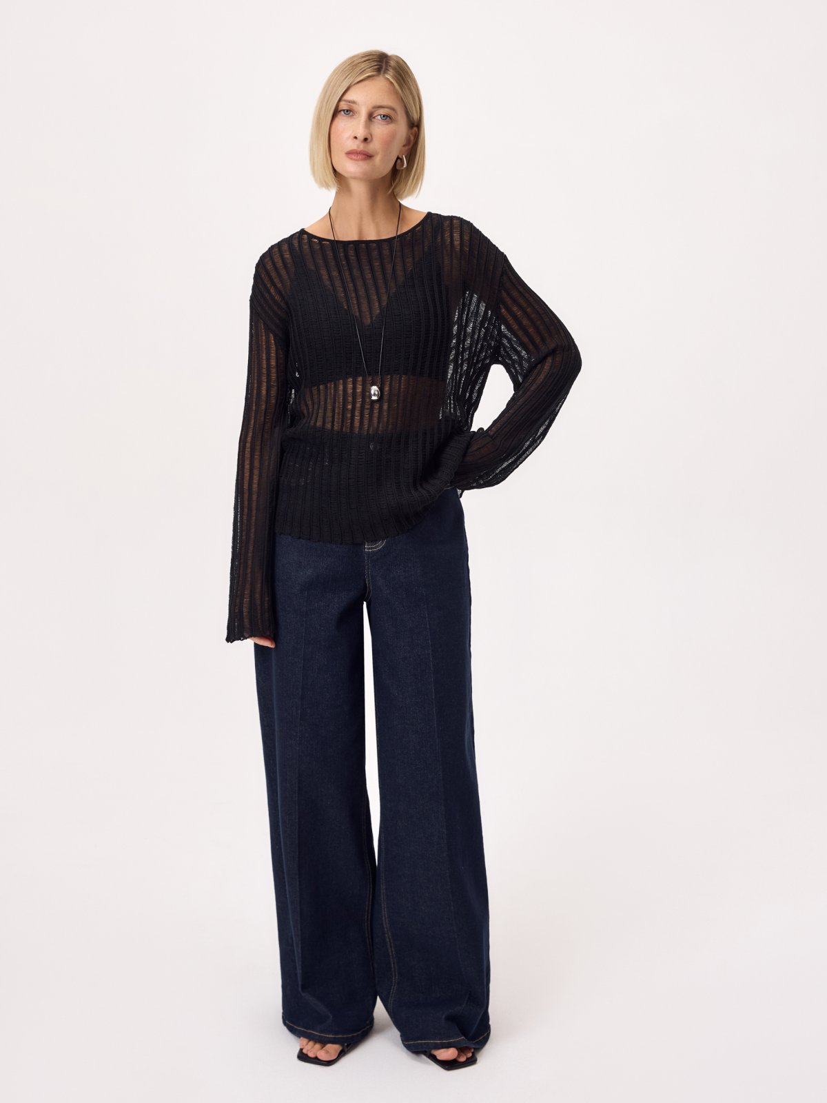 Стильный джемпер из ажурного полотна, с содержанием хлопка 70%, станет ярким акцентом в Вашем гардеробе. Модель имеет прямой силуэт, круглый вырез горловины и втачные рукава полной длинны. Джемпер можно одевать поверх топа так и под жакет, что позволит Вам разнообразить образы на каждый день.