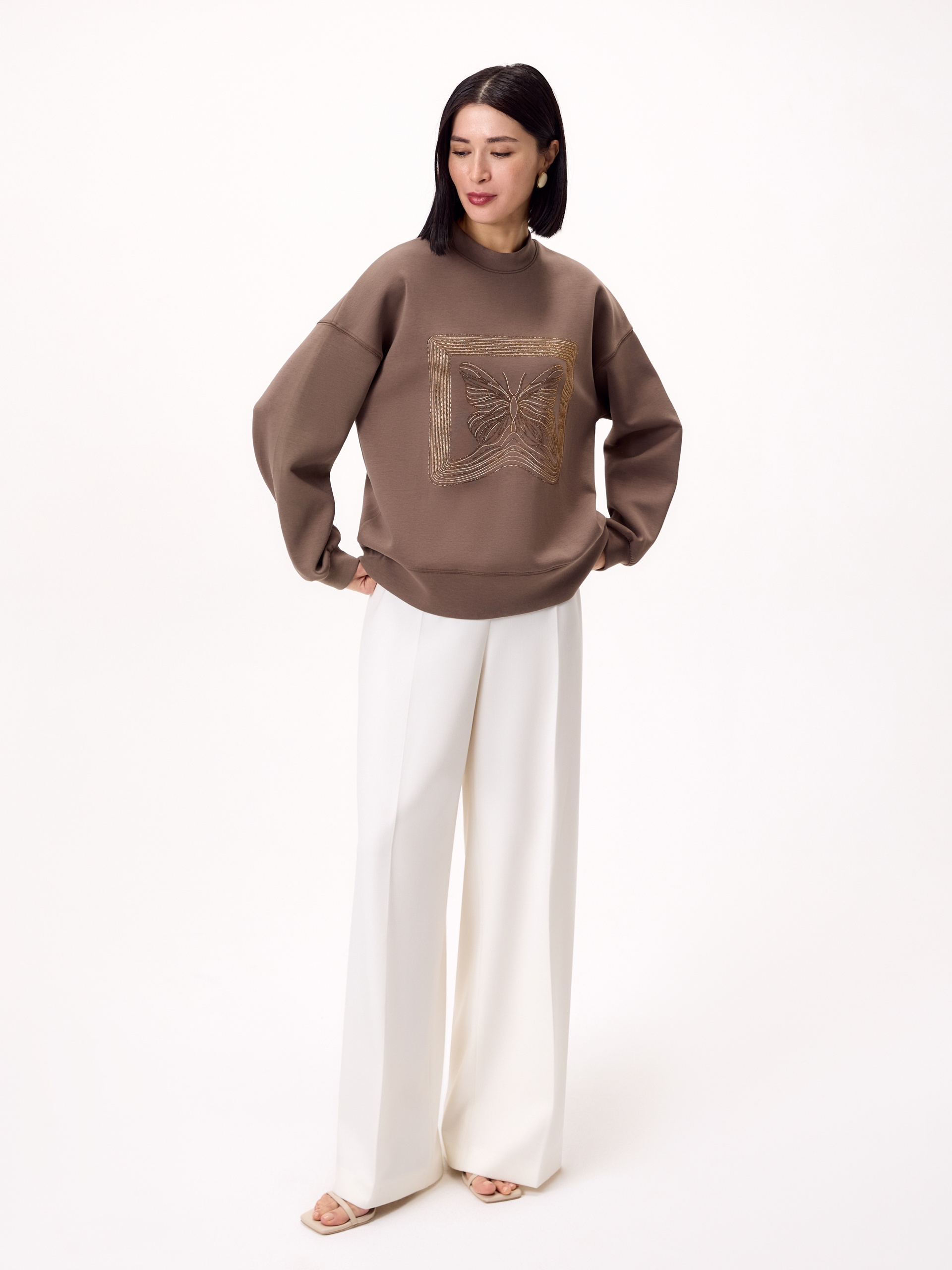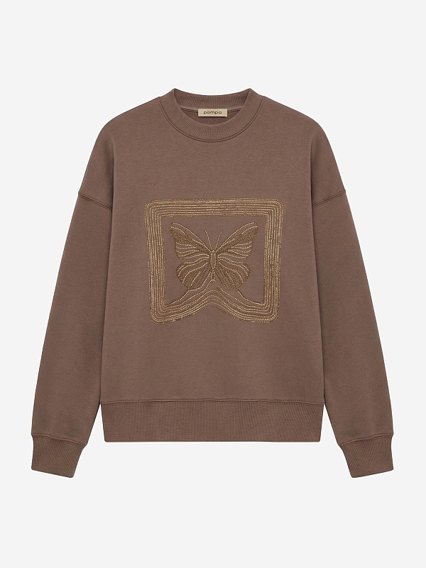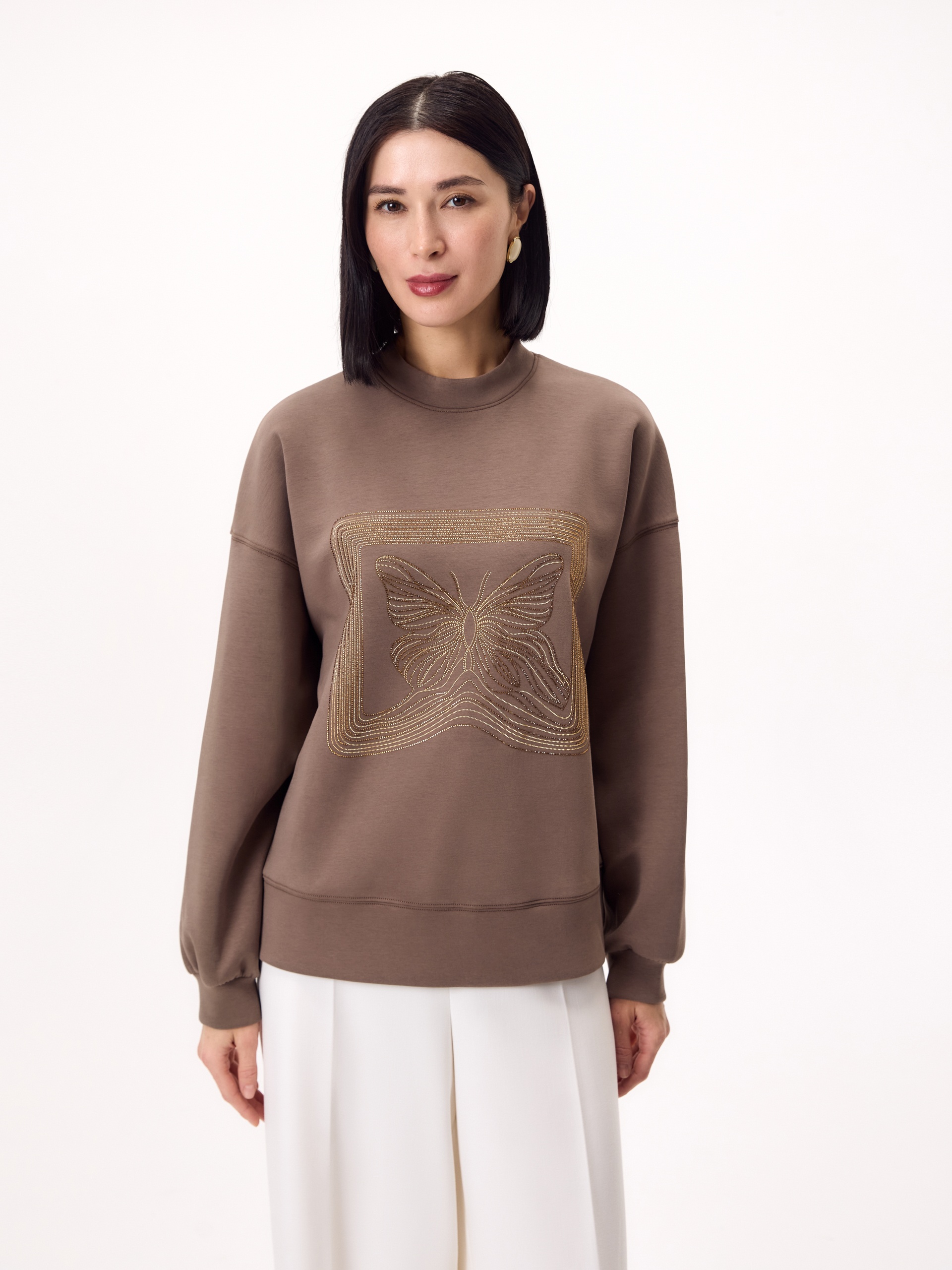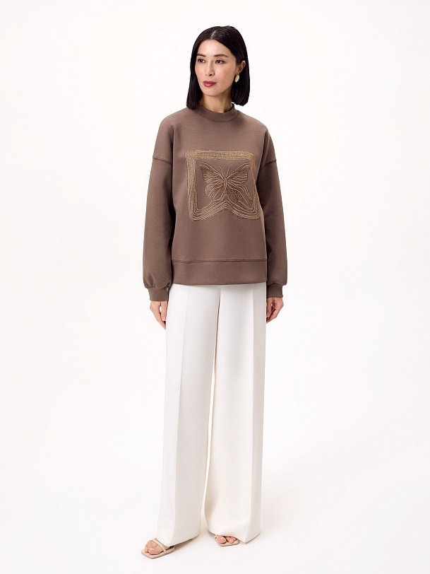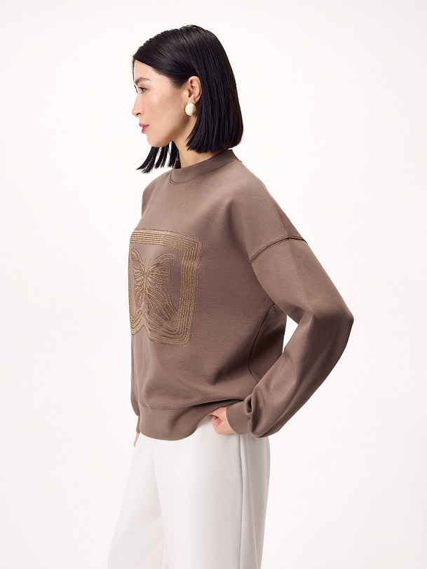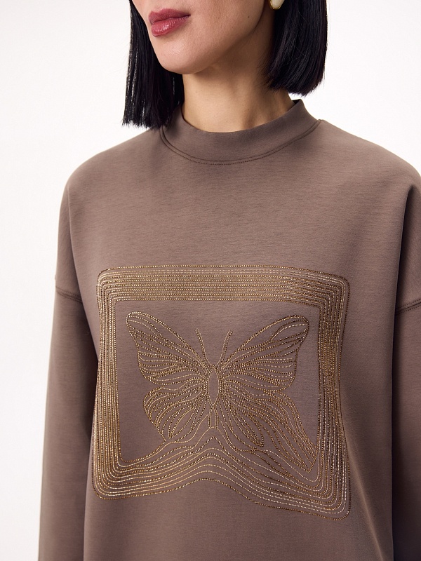 Хлопковый свитшот с аппликацией из страз