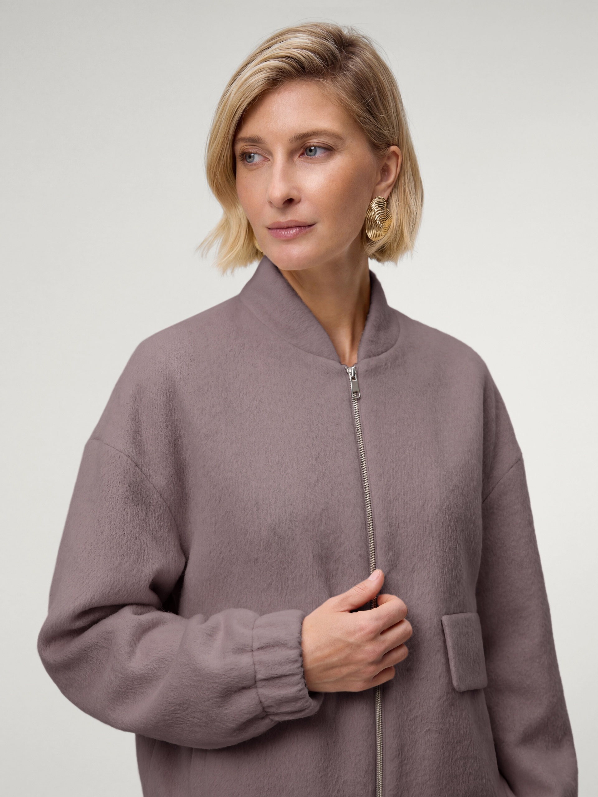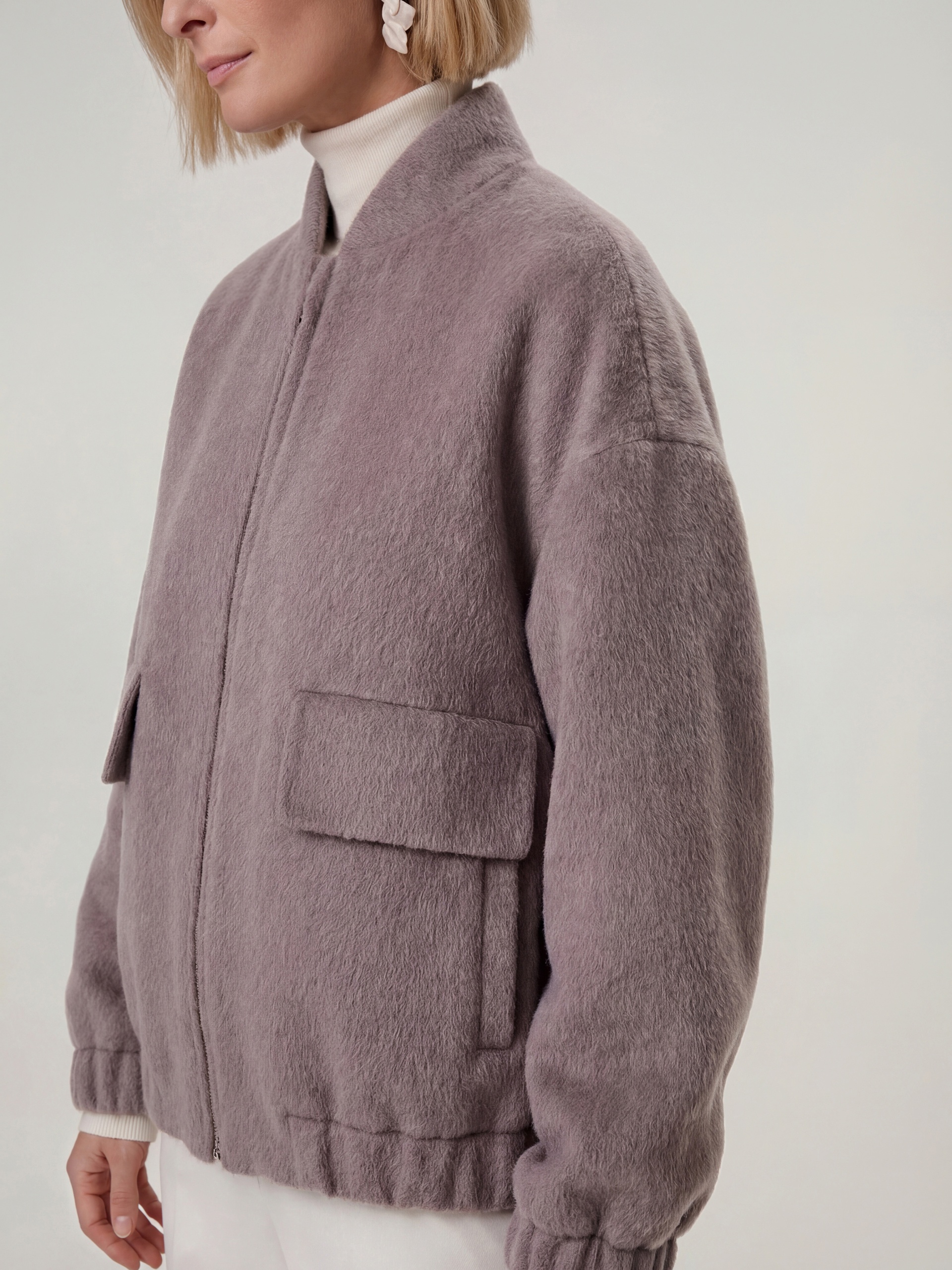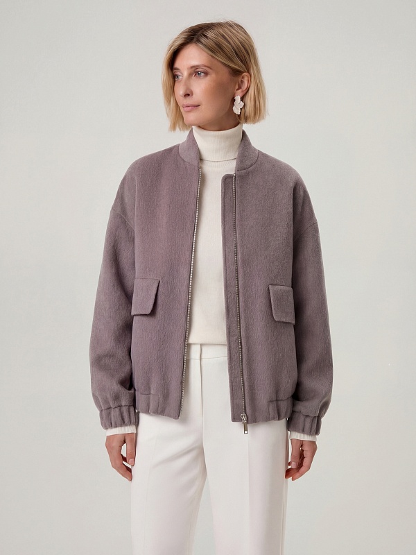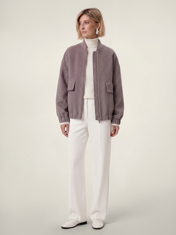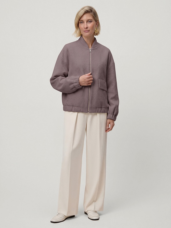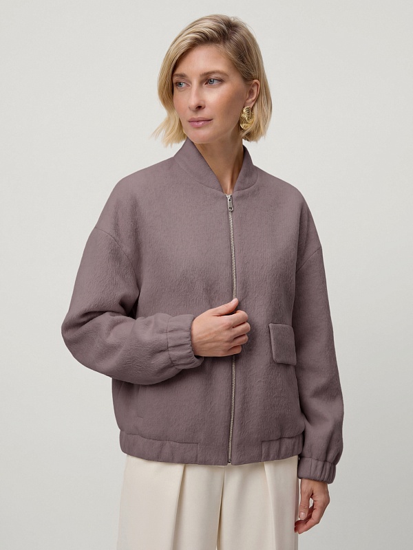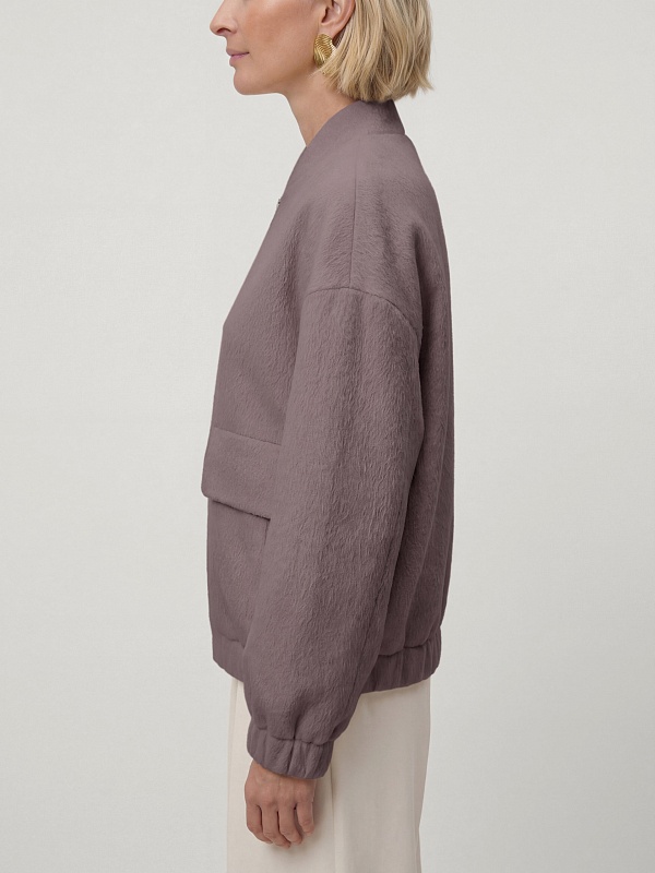 Лаконичная куртка-бомбер нежного лавандового оттенка, выполненная из премиальной шерстяной ткани с добавлением альпаки. Свободный рубашечный рукав не стесняет движений. Низ рукава и низ изделия для наибольшего комфорта собраны на широкую резинку. Куртка имеет аккуратный воротник-стойку и вместительные карманы с широкими клапанами. Застёжка на молнию. Изделие на подкладке. Произведено в Санкт-Петербурге.