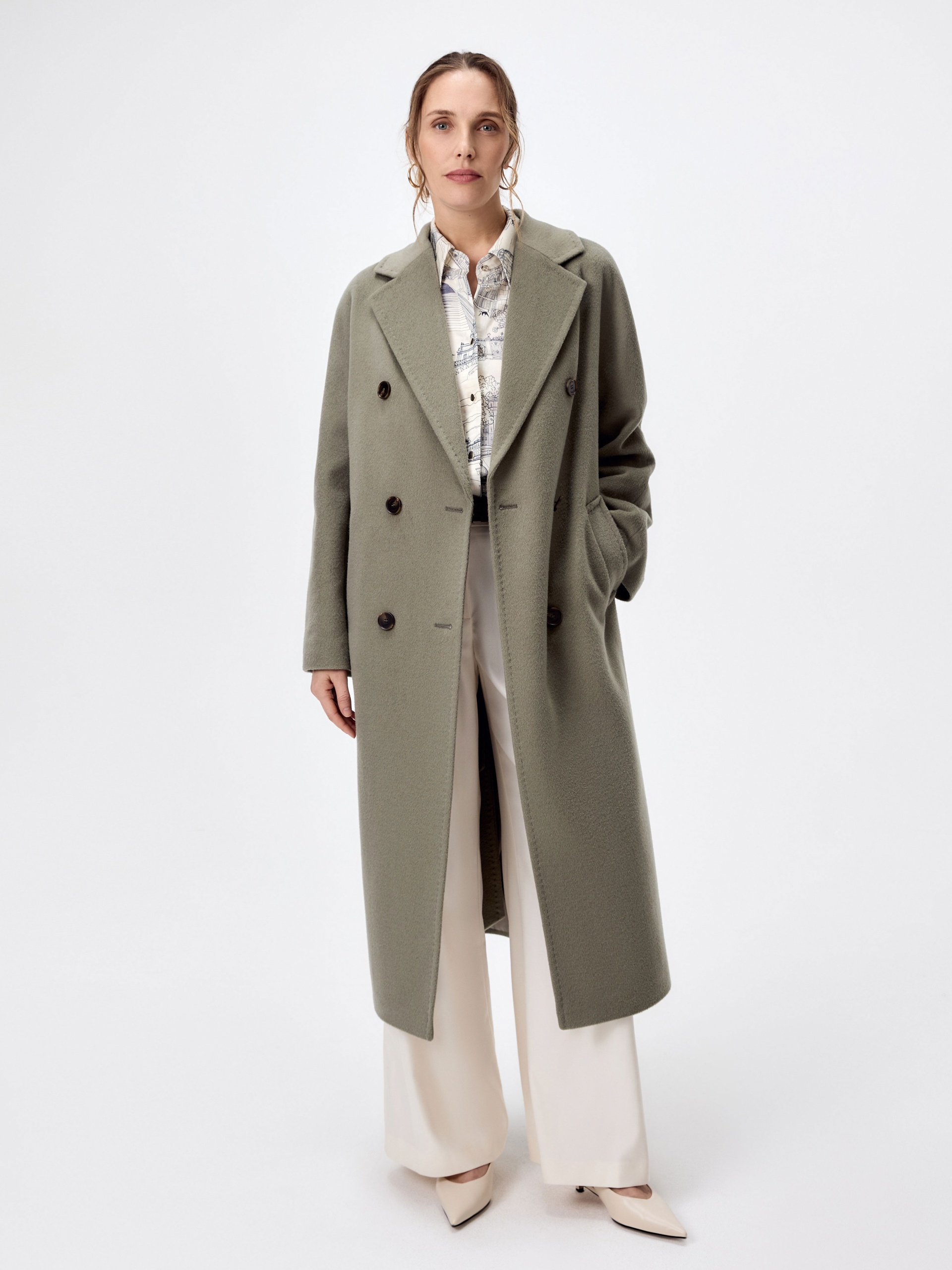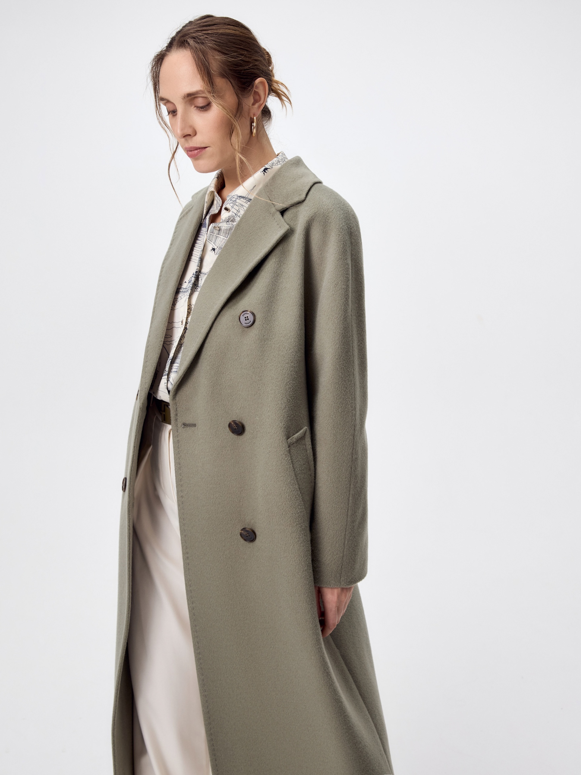 Двубортное пальто силуэта удлиненный кокон - это всем полюбившаяся классика. Для нашего пальто мы выбрали ворсовую ткань с высоким содержанием натуральной шерсти в трендовом нефритовом оттенке. Пальто комфортной длины ниже колена, что расширяет возможности для формирования образов. Уникальный комбинированный рукав создает уютный и расслабленный образ и не стесняет движений. Горловину пальто обрамляет классический широкий английский воротник. Пальто имеет два глубоких кармана с листочками. Застегивается на три ряда стильных крупных пуговиц. Дополняет образ съемный пояс, благодаря которому можно подчеркнуть талию. Пальто изготовлено с использованием запатентованных технологий: высокотехнологичная мембрана RaftPro надежно защищает от ветра, холода и перепада температур. Произведено в Санкт-Петербурге.