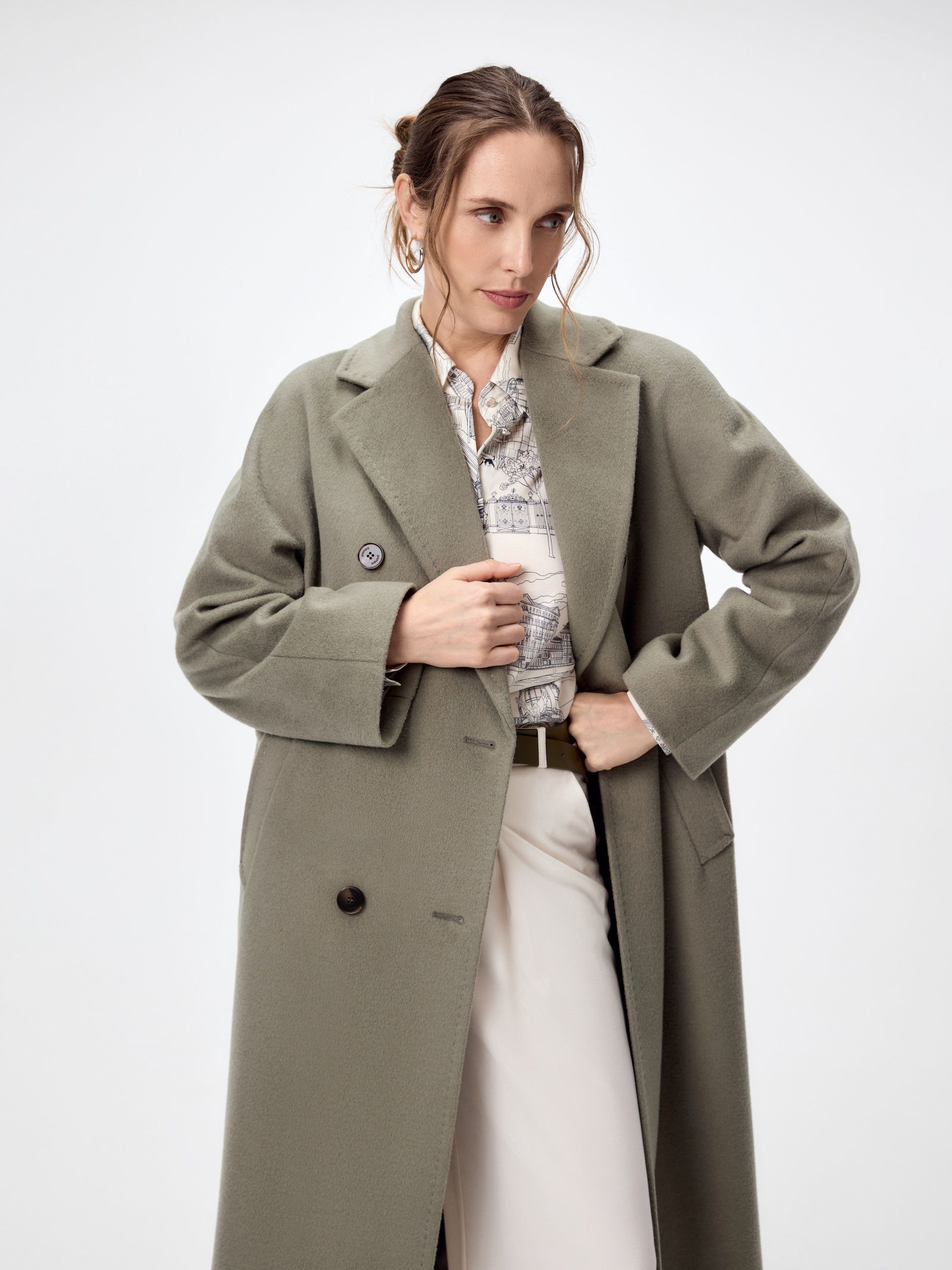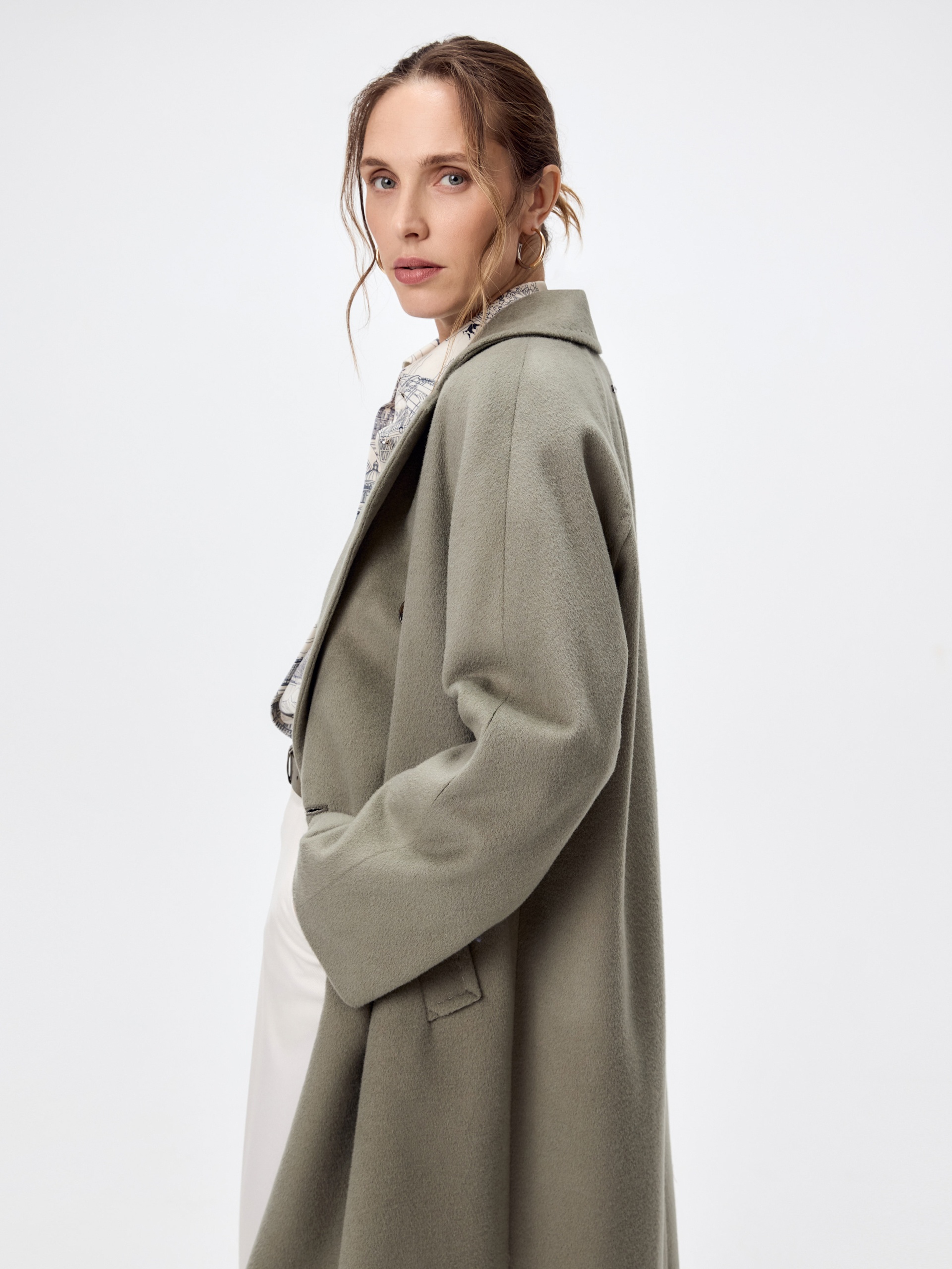 Двубортное пальто силуэта удлиненный кокон - это всем полюбившаяся классика. Для нашего пальто мы выбрали ворсовую ткань с высоким содержанием натуральной шерсти в трендовом нефритовом оттенке. Пальто комфортной длины ниже колена, что расширяет возможности для формирования образов. Уникальный комбинированный рукав создает уютный и расслабленный образ и не стесняет движений. Горловину пальто обрамляет классический широкий английский воротник. Пальто имеет два глубоких кармана с листочками. Застегивается на три ряда стильных крупных пуговиц. Дополняет образ съемный пояс, благодаря которому можно подчеркнуть талию. Пальто изготовлено с использованием запатентованных технологий: высокотехнологичная мембрана RaftPro надежно защищает от ветра, холода и перепада температур. Произведено в Санкт-Петербурге....
