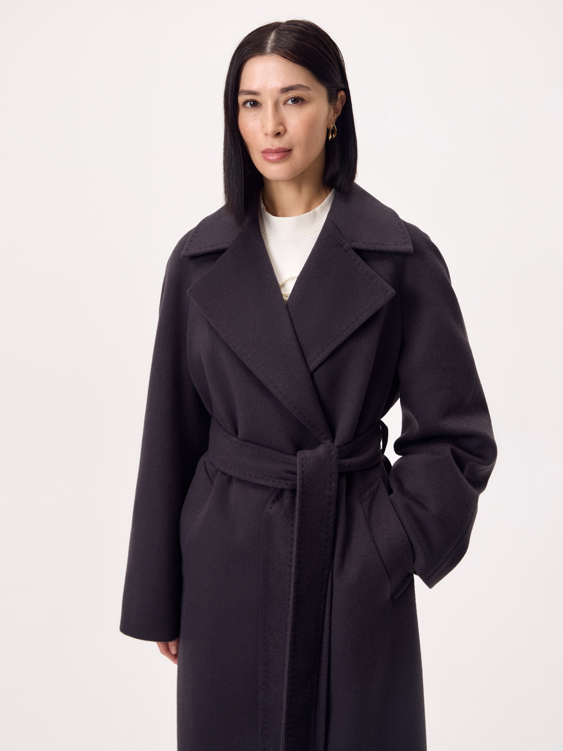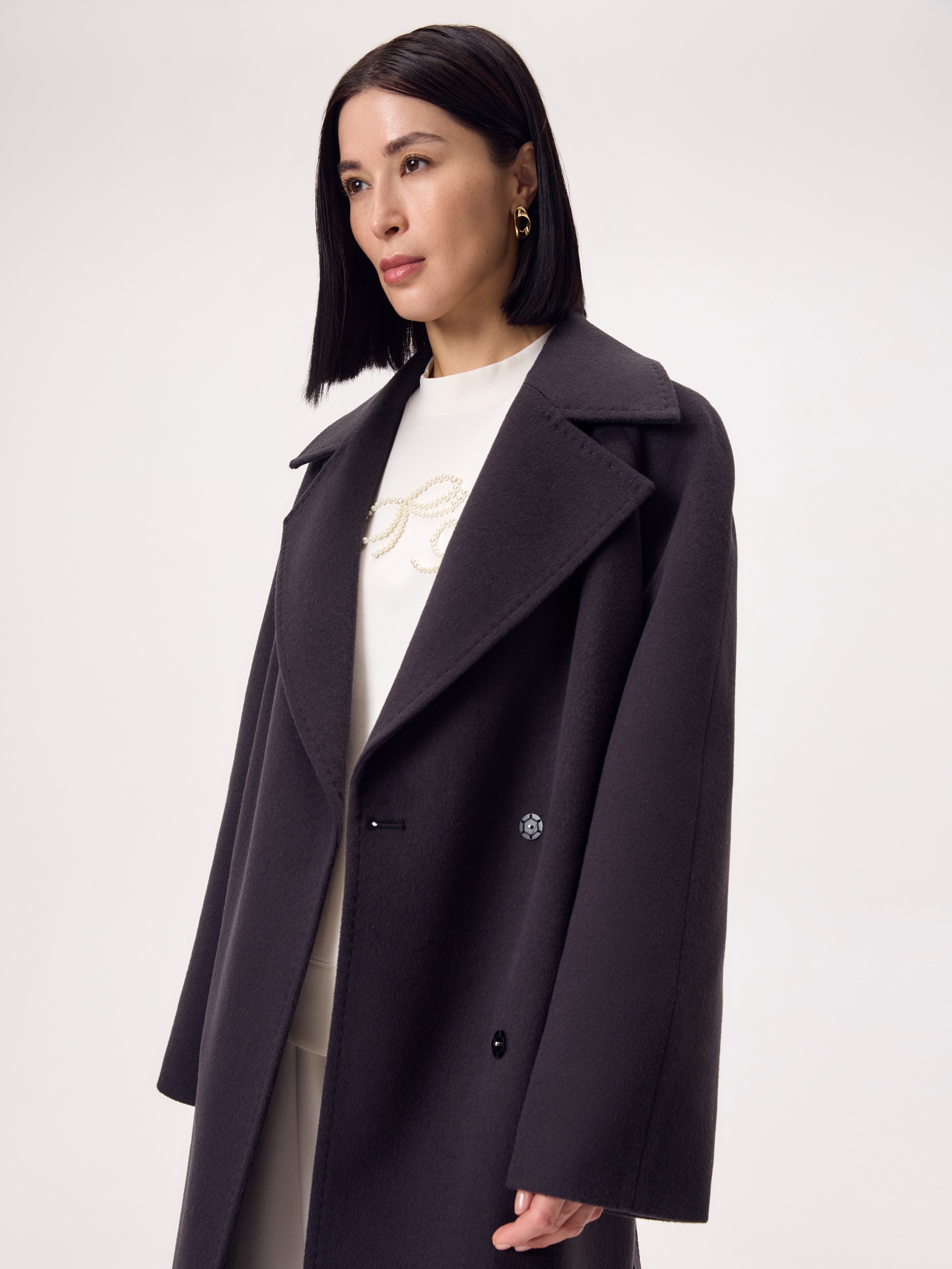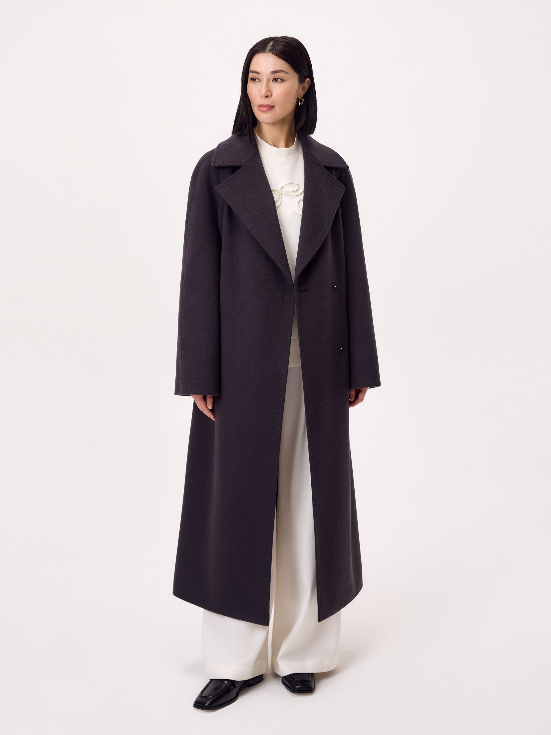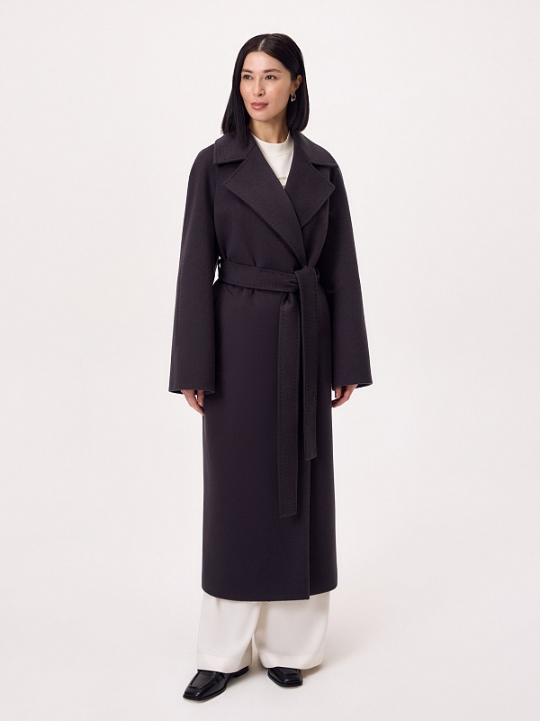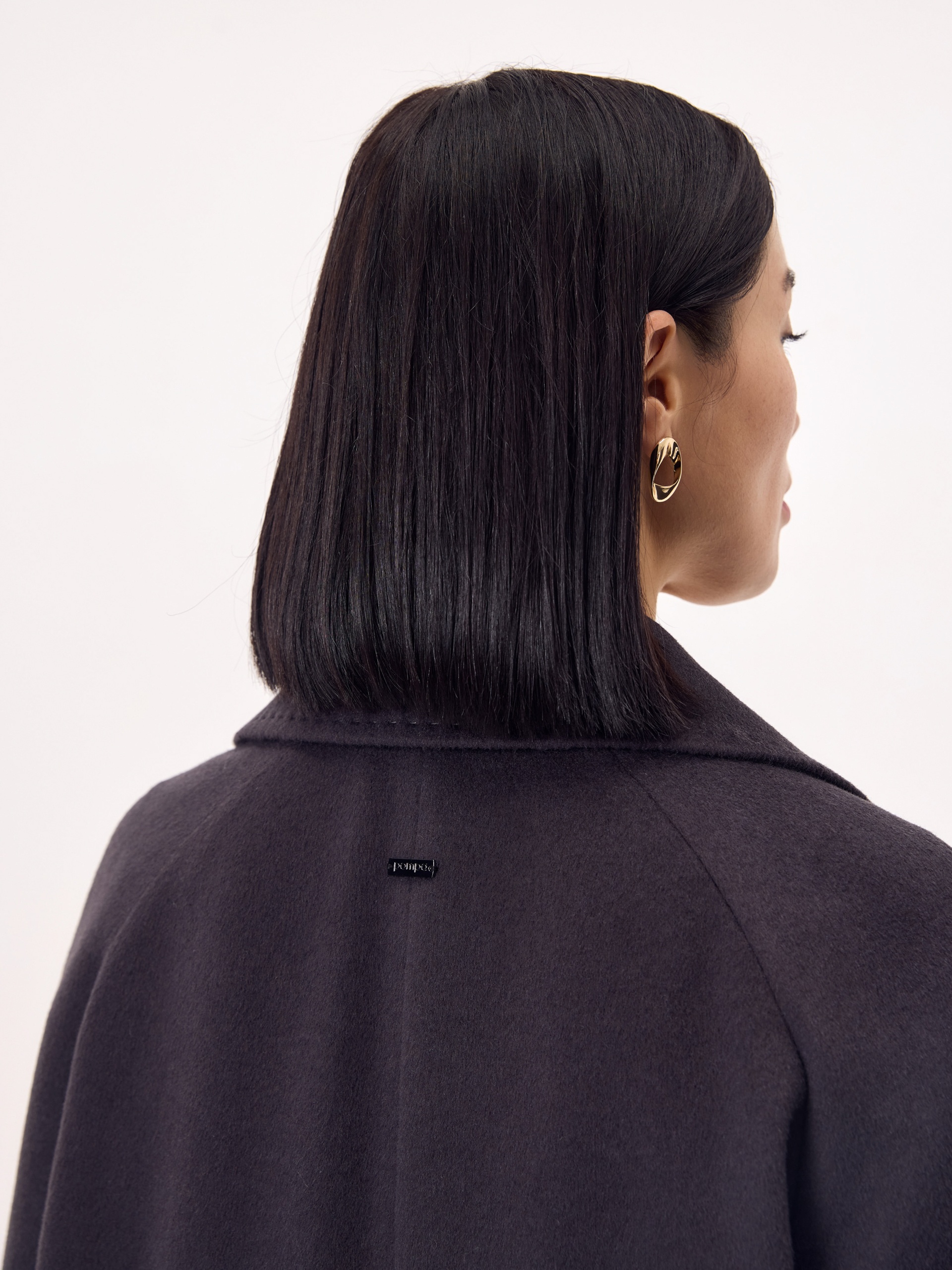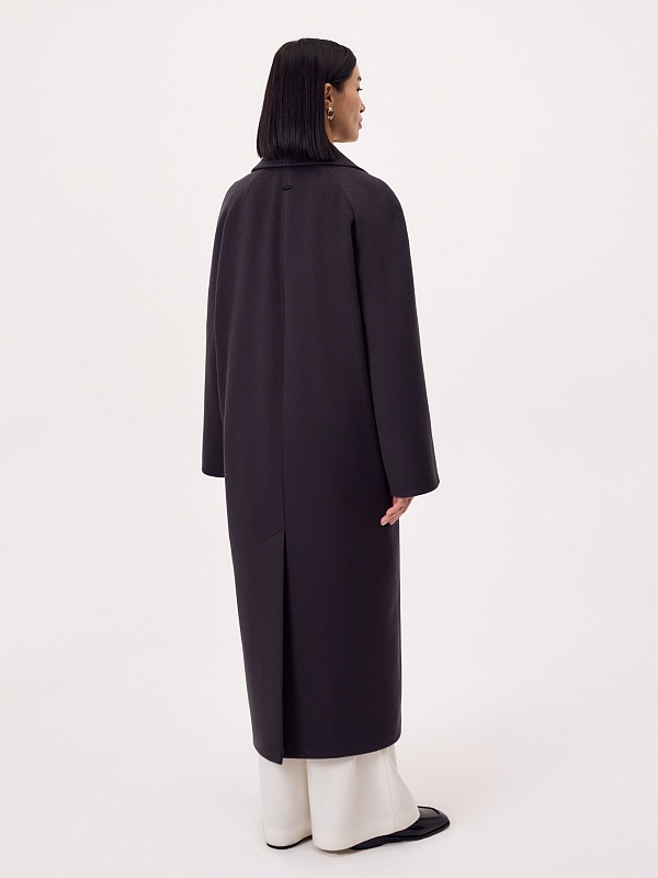 Классическое двубортное пальто силуэта удлиненный кокон в темно-сером оттенке антрацит. Для этого изделия мы выбрали ворсовую ткань с высоким содержанием натуральной шерсти. Пальто имеет новый широкий английский воротник и рукав-реглан. По бокам глубокие карманы с листочками. Застегивается на ряд надежных пришивных кнопок. В комплекте предлагается пояс из основной ткани. А для наилучшей защиты от непогоды пальто выполнено с использованием высокотехнологичной мембраны RaftPro. Произведено в Санкт-Петербурге.