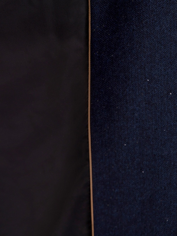 Двубортное классическое пальто прямого силуэта в мужском стиле с расширенной линией плеча. Выполнено из твидовой ткани диагонального переплетения с высоким содержанием натуральной шерсти в универсальном черно-синем цвете. Пальто имеет английский воротник и стильный втачной рукав пиджачного типа с застежкой по низу на ряд пуговиц. Карманы врезные листочки с клапаном. В среднем шве спинки высокая шлица. Застегивается изделие на пуговицы и пришивные кнопки. Для наилучшей защиты от непогоды изделие выполнено с использованием высокотехнологичной мембраны RaftPro. Произведено в Санкт-Петербурге.