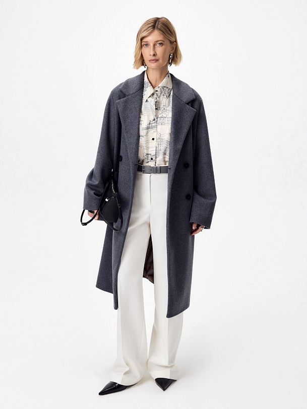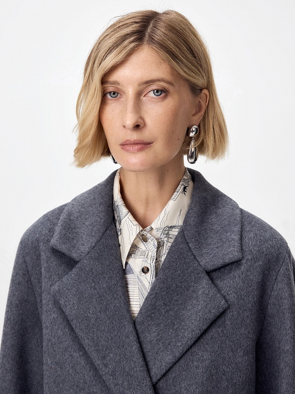 Лаконичное прямое пальто в сером меланжевом цвете, легкое и элегантное, напоминает длинный жакет. Мягкая линия плеча, английский воротник и карманы с листочками. Это пальто можно надеть как с футболкой и джинсами, так и с костюмом, создавая совершенно разные образы. Для этой модели мы выбрали тонкую плотную и пластичную шерстяную ткань, которая хорошо держит форму, при этом не требует дополнительного проклеивания материала, за счет чего создается мягкая форма силуэта. Застежка на два ряда крупных пуговиц. Для наилучшей защиты от непогоды изделие выполнено с использованием высокотехнологичной мембраны RaftPro. Произведено в Санкт-Петербурге.