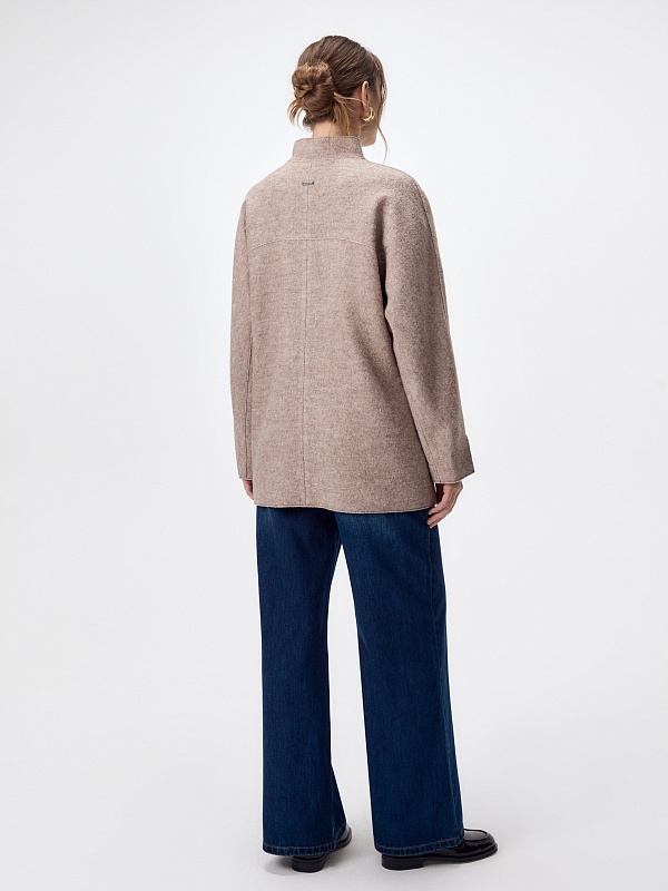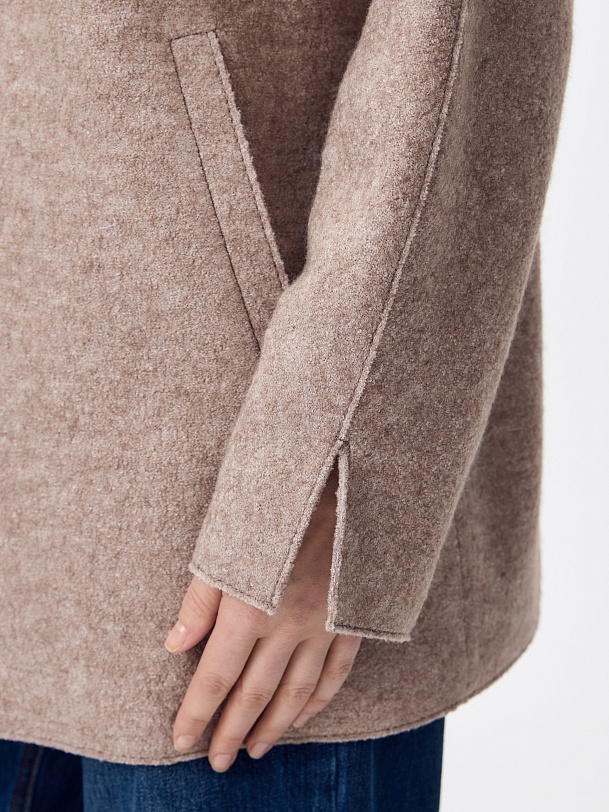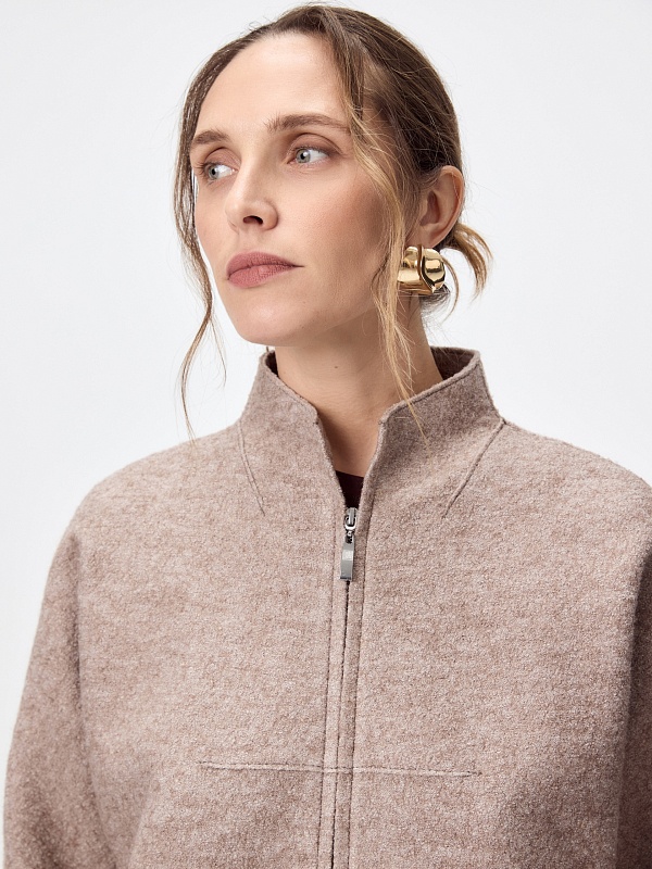 Легкое лаконичное и современное полупальто из ткани "вареная шерсть" в оттенке какао - must have весеннего сезона. Уникальный крой рукава притягивает взгляд, а универсальная длина позволяет сочетать наше пальто с любыми образами. Воротник-стойка, карманы с листочками и застежка на тесьму-молнию делают пальто функциональным и удобным. Декоративным элементом являются открытые срезы и тонкие отделочные строчки, которые смотрятся особенно эффектно благодаря фактуре ткани. Пальто изготовлено с использованием запатентованных технологий: высокотехнологичная мембрана RaftPro надежно защищает от ветра, холода и перепада температур. Произведено в Санкт-Петербурге.