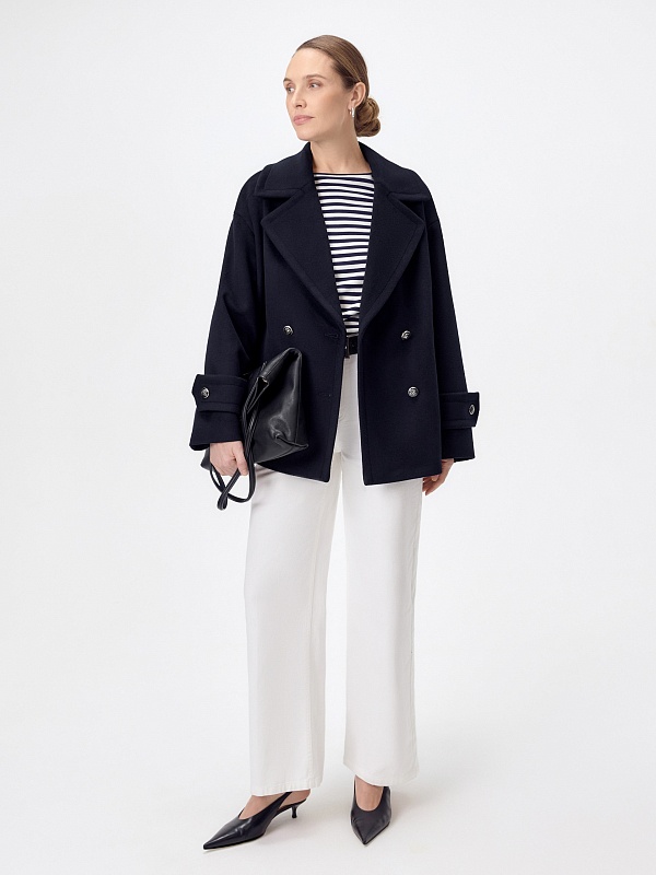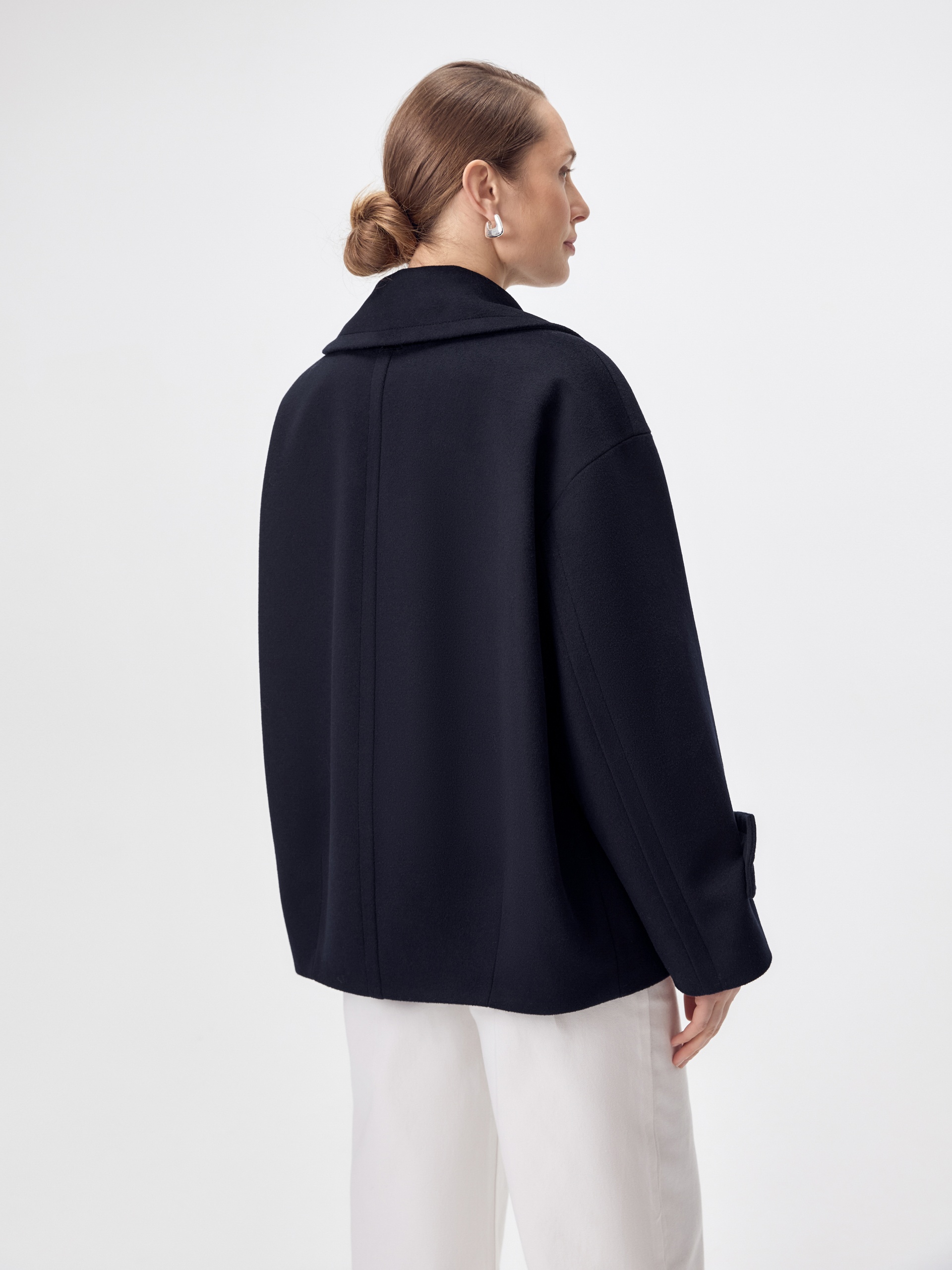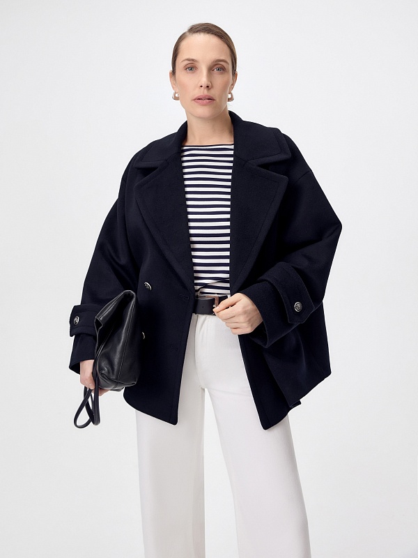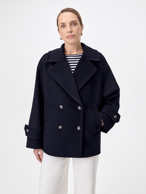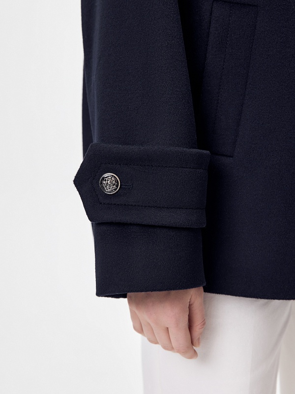 Короткое полупальто в классическом черно-синем цвете. Для этого изделия мы выбрали премиальную шерстяную ворсовую ткани с содержанием нежных волокон кашемира. Пальто с широким английским воротником и мягким рубашечным рукавом. Низ рукава декорирован патой. Такая куртка станет незаменимым спутником в прохладные весенние дни и идеально подойдет для автоледи. А для наилучшей защиты от непогоды изделие выполнено с использованием высокотехнологичной мембраны RaftPro. Произведено в Санкт-Петербурге.